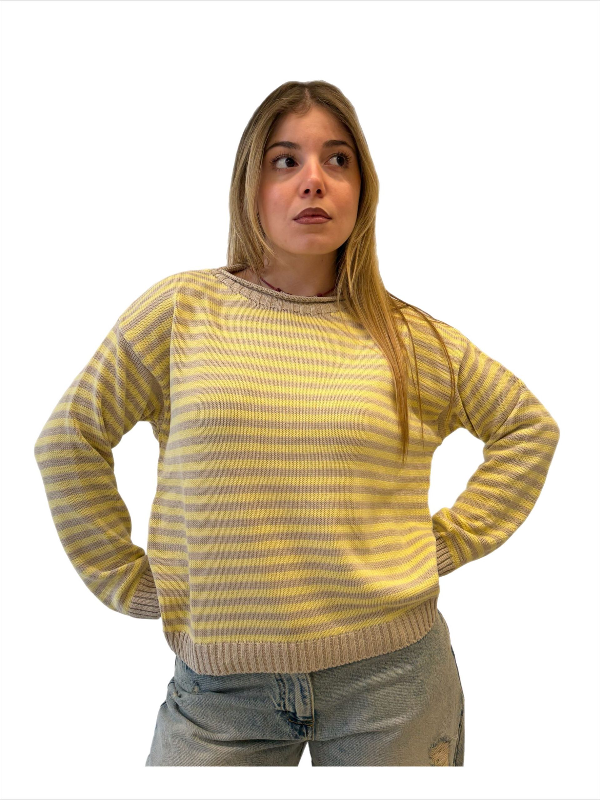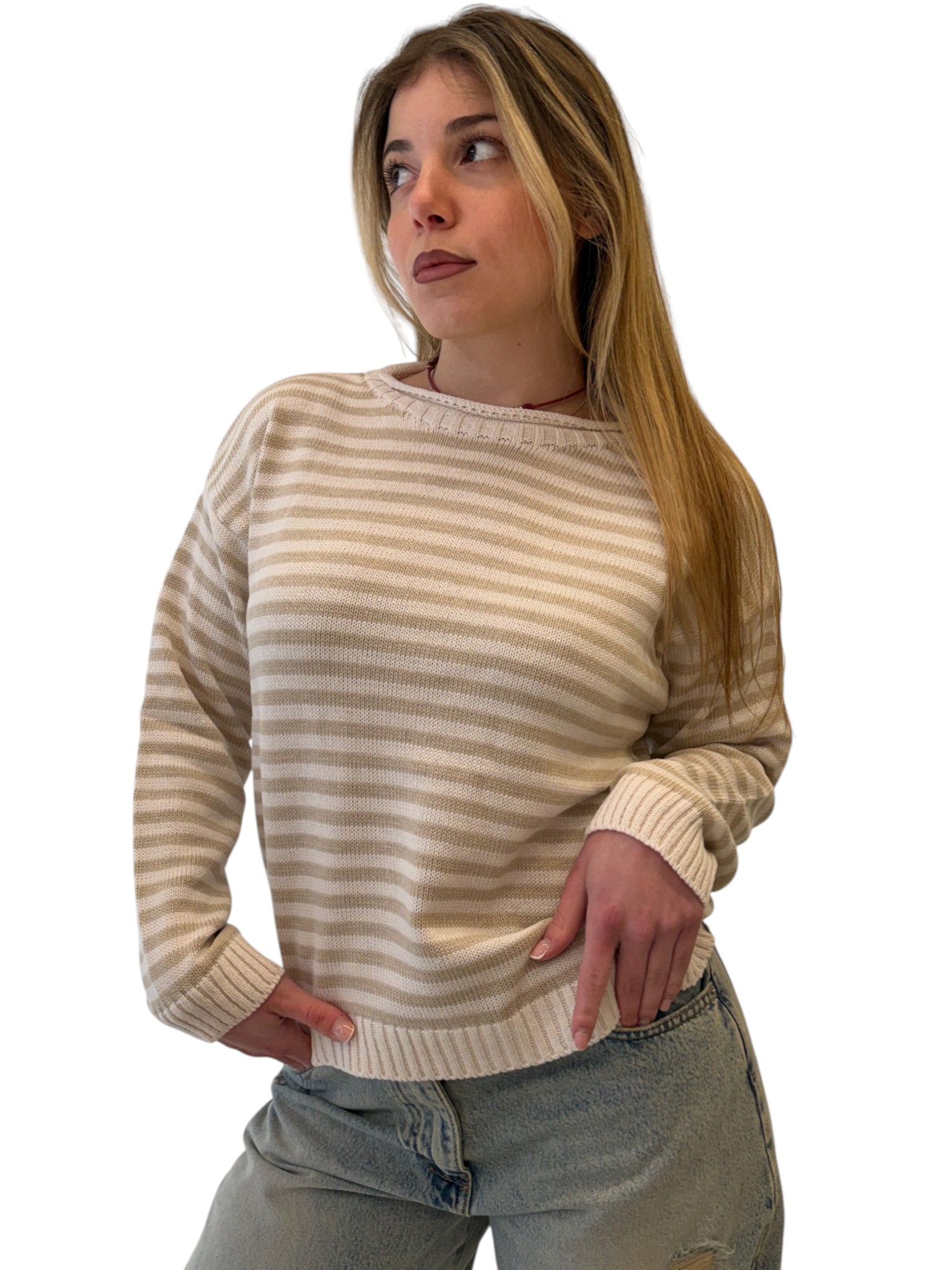 Modello: Maglia girocollo a righe con maniche lunghe.