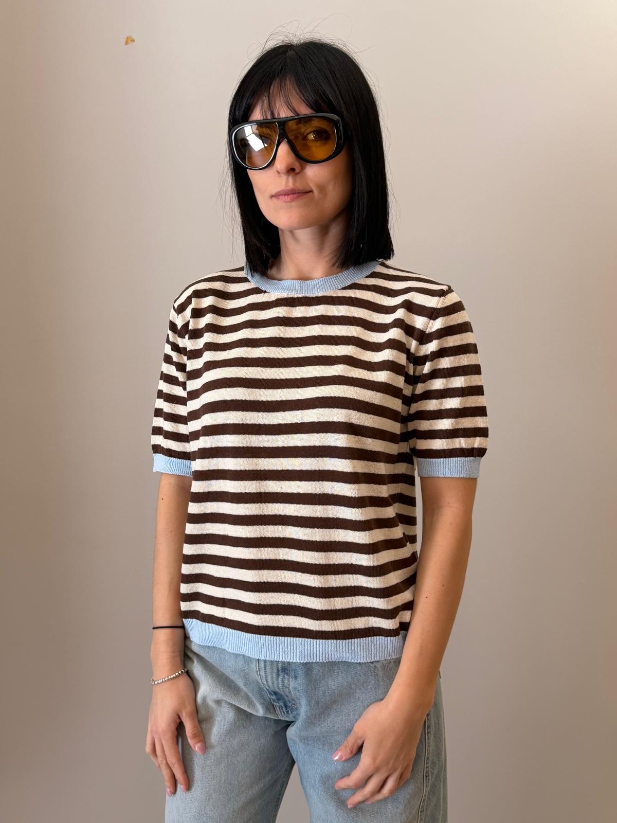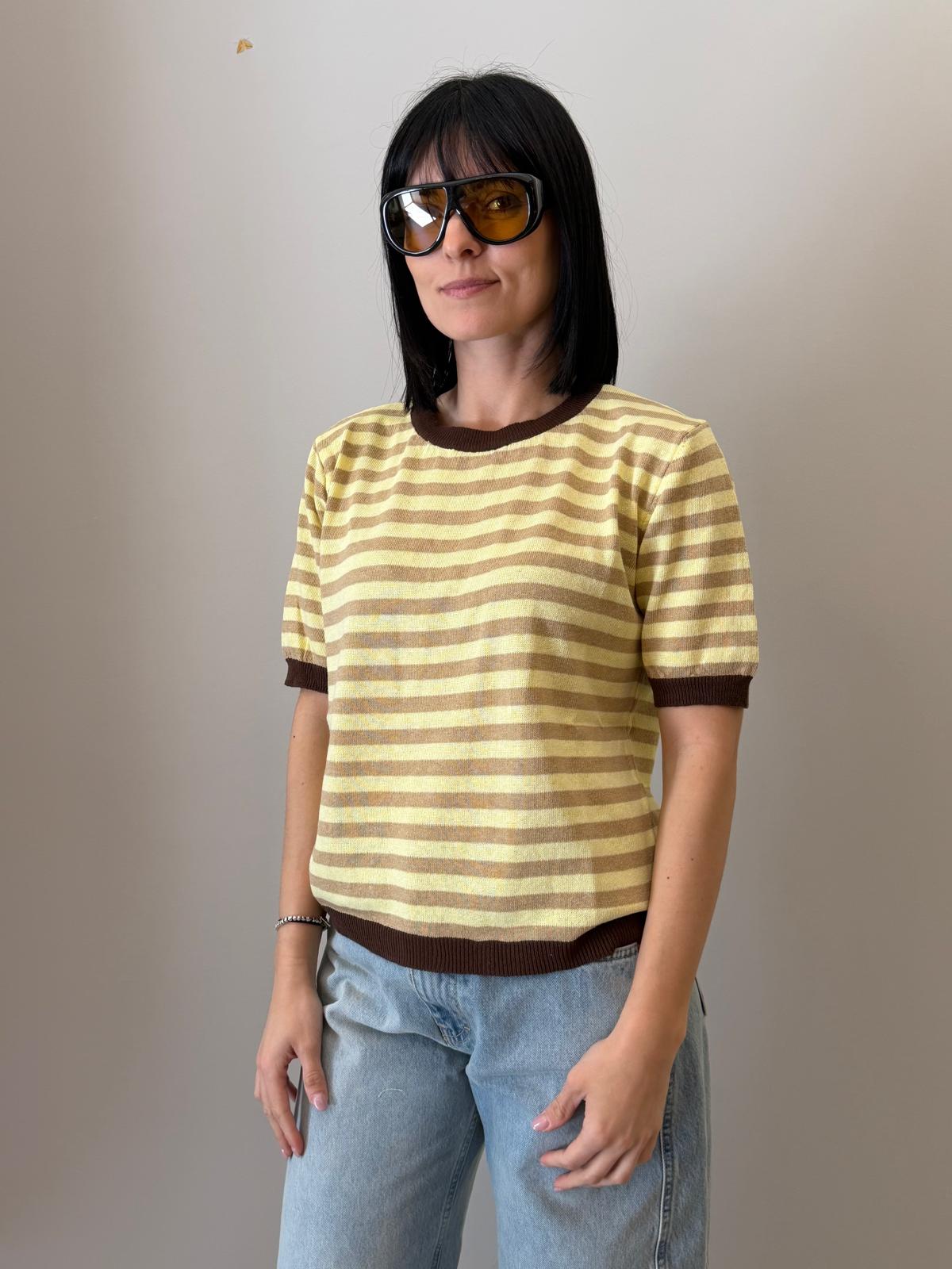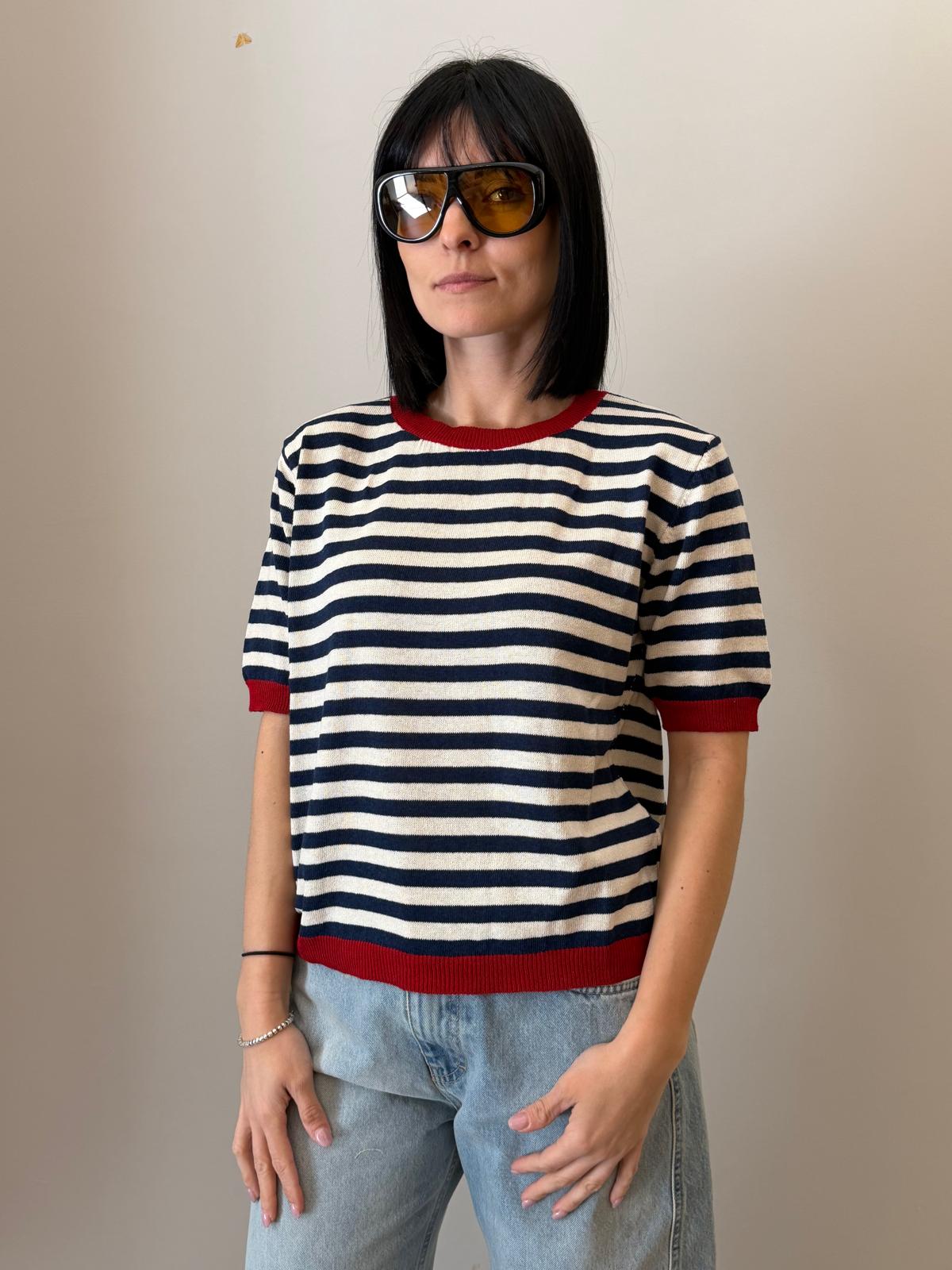 Tensione In La t-shirt da donna Tensione In si distingue per il suo design a righe dal gusto contemporaneo, perfetto per creare look casual e versatili. Il taglio semplice e la vestibilità regular la rendono un capo ideale per l’utilizzo quotidiano.