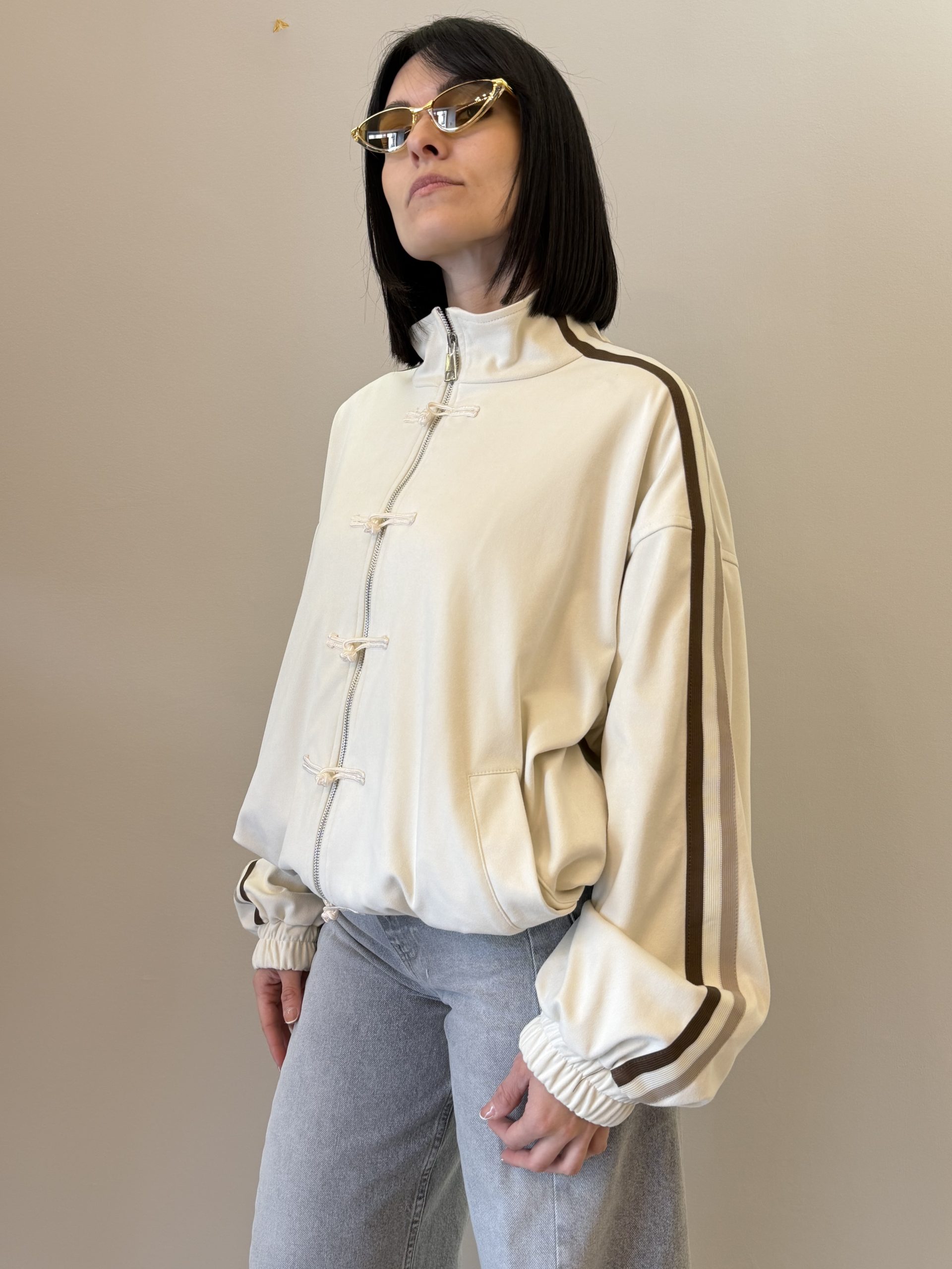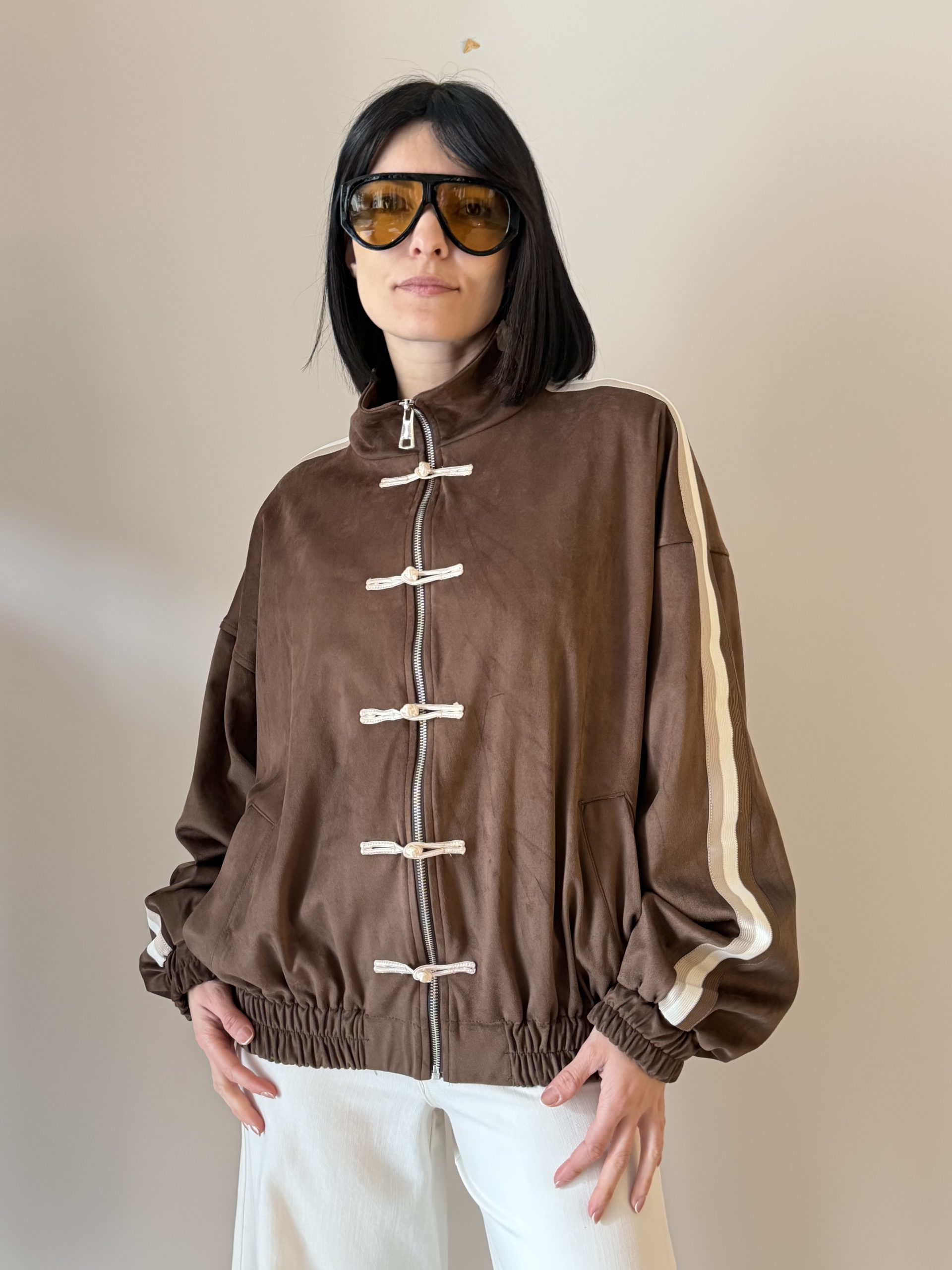 Motel Giacca dal design sportivo e contemporaneo caratterizzata da una linea morbida e dettagli a contrasto che donano dinamismo al capo. La chiusura frontale con alamari aggiunge un tocco originale, rendendola ideale per completare look casual e moderni.