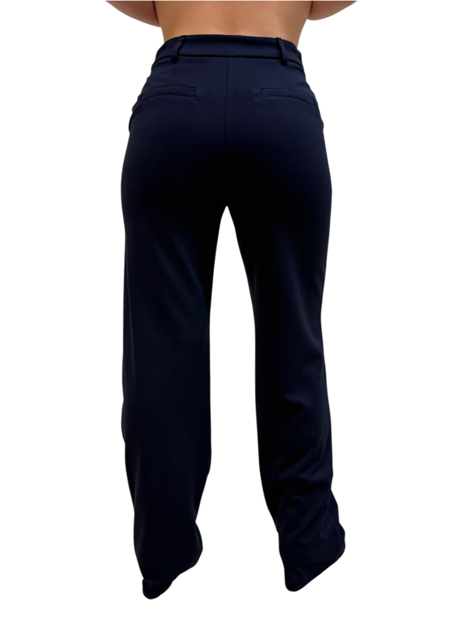 Motel Pantalone palazzo dal design elegante e contemporaneo, realizzato in punto Roma che garantisce comfort e struttura. La linea fluida e il taglio sartoriale slanciano la figura, rendendolo perfetto per look raffinati sia da giorno che da sera.