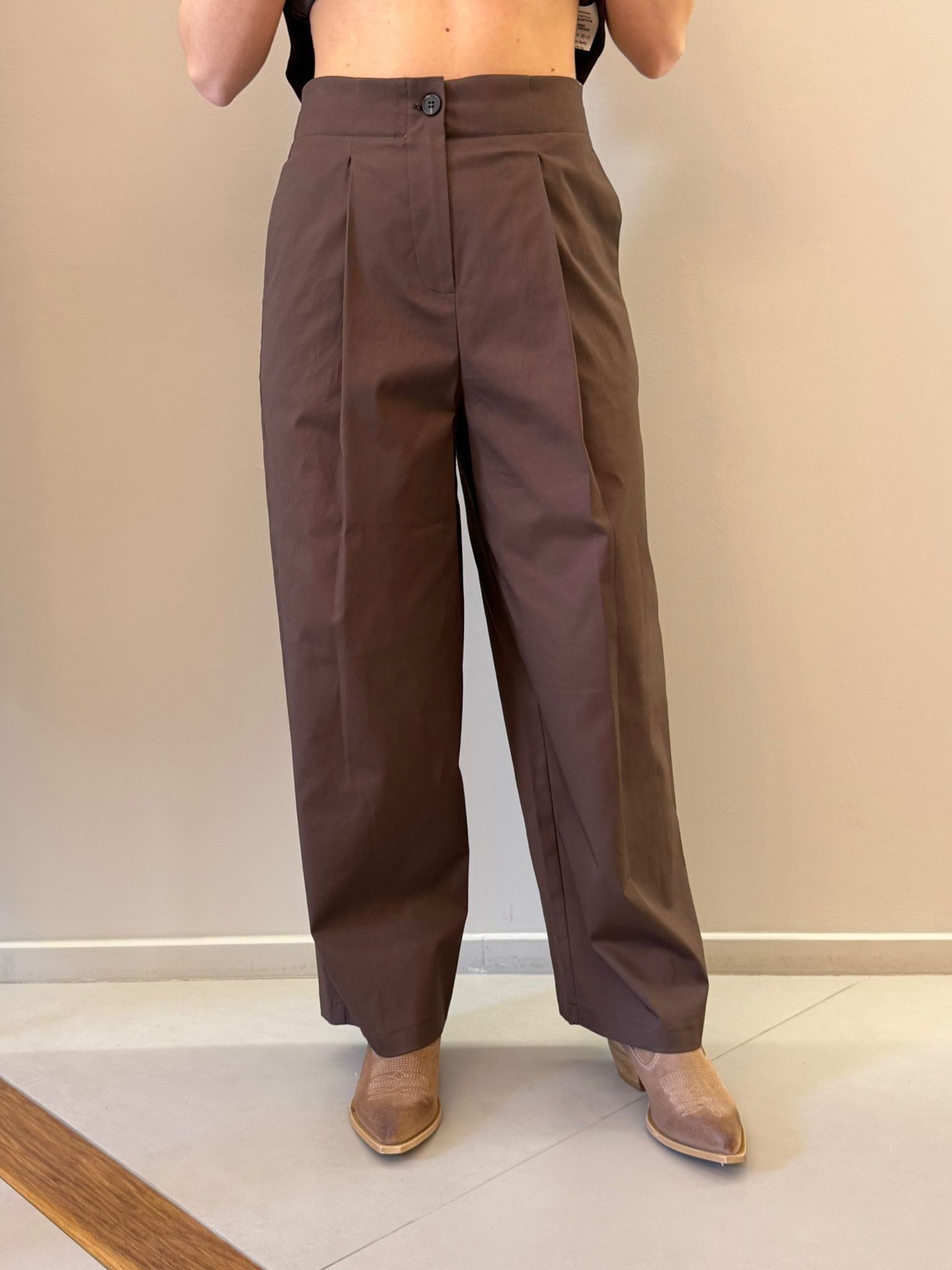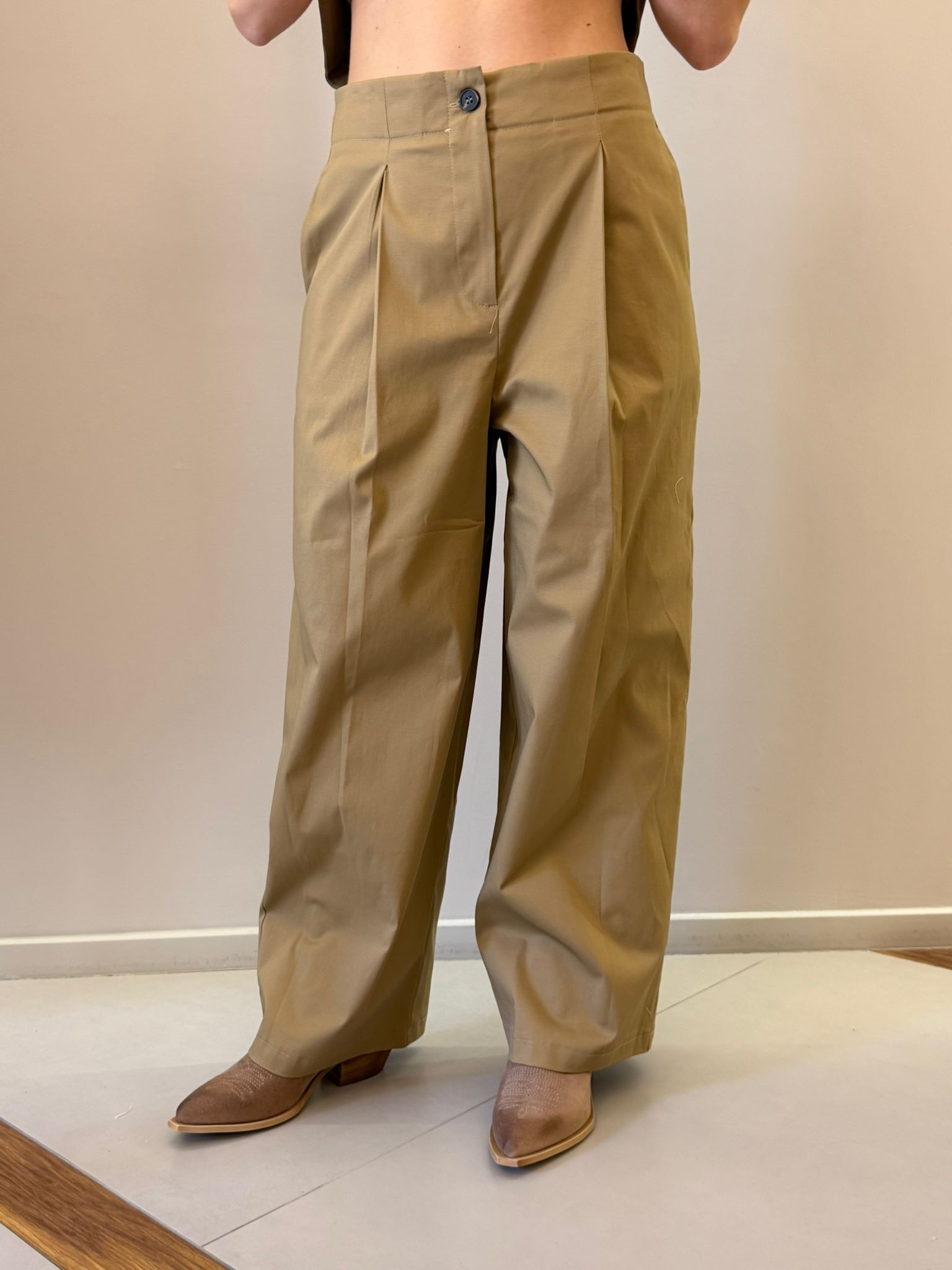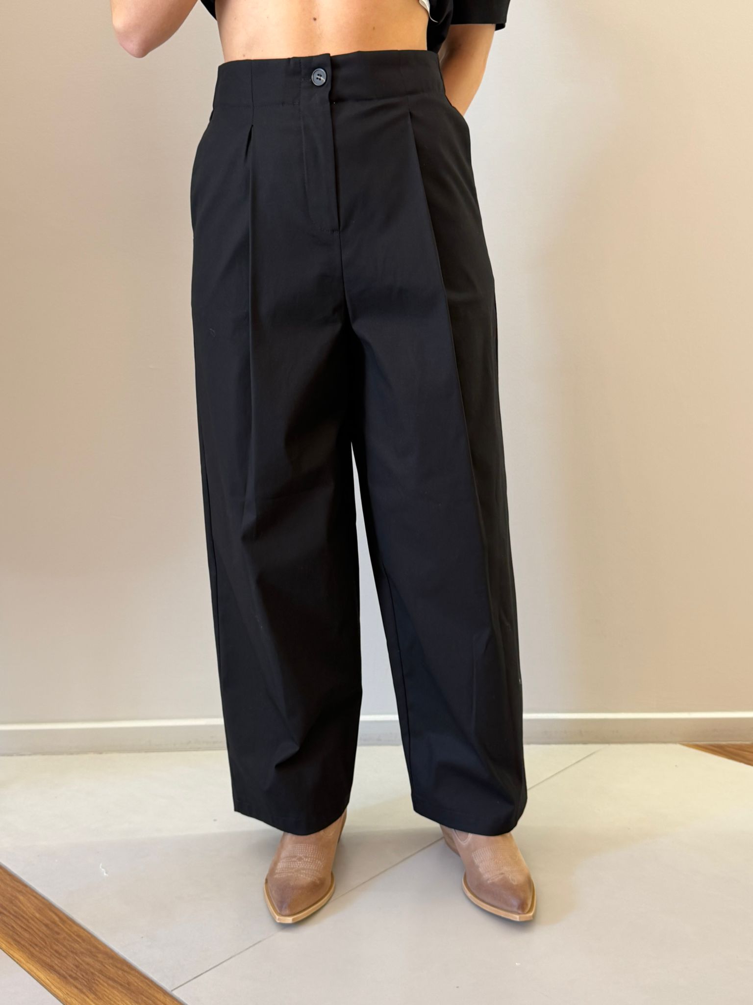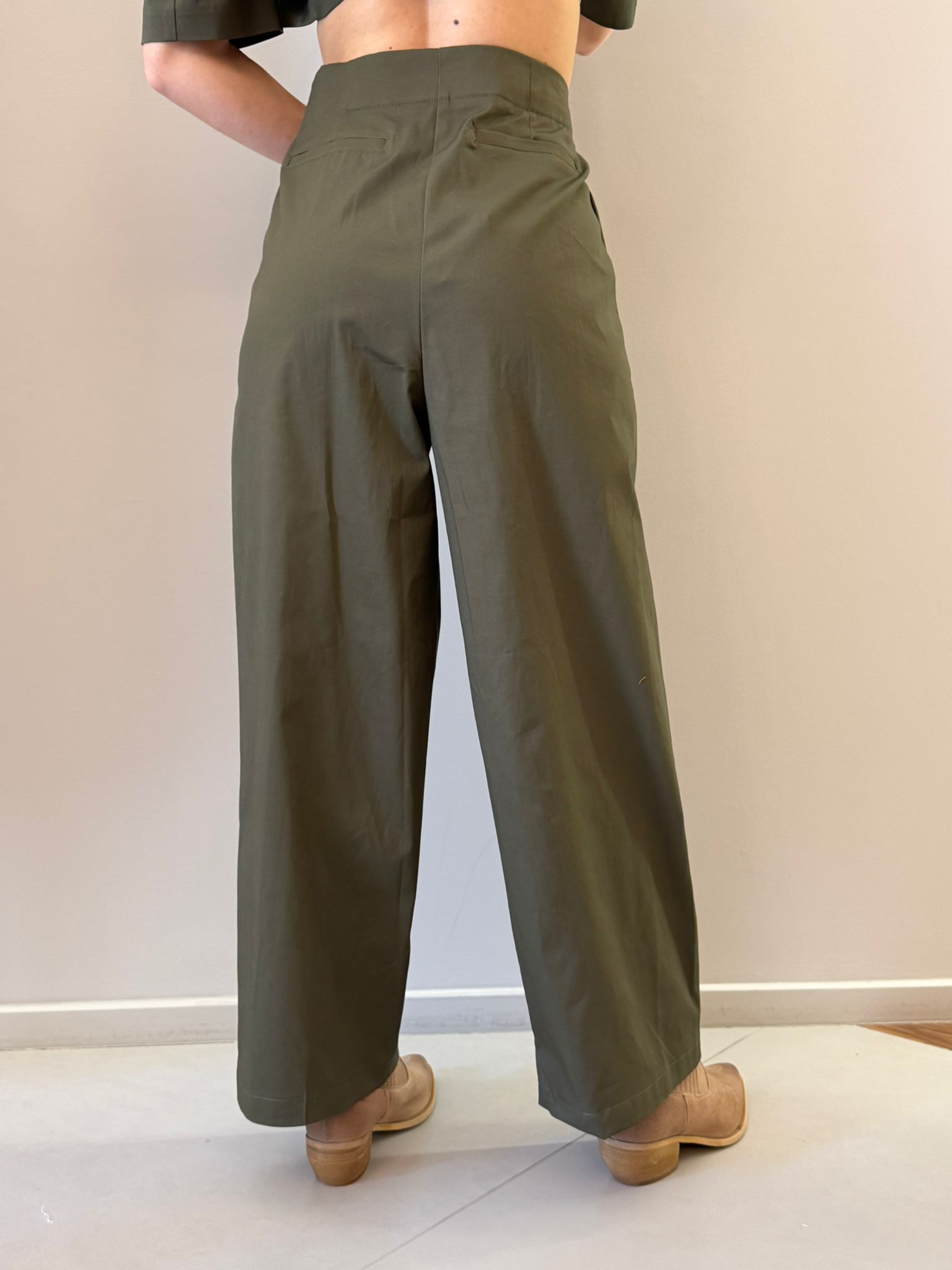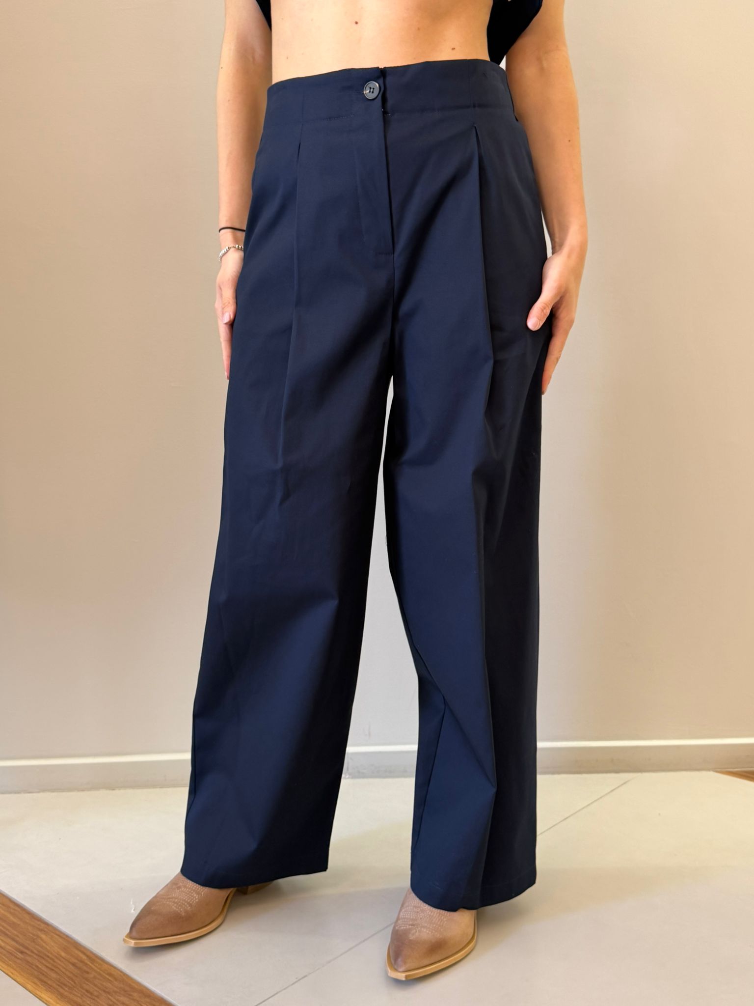 La linea ampia e fluida, arricchita dalle pinces frontali, dona movimento e struttura al capo, creando un equilibrio perfetto tra comfort e stile. La vita pulita e la costruzione sartoriale garantiscono una vestibilità impeccabile.