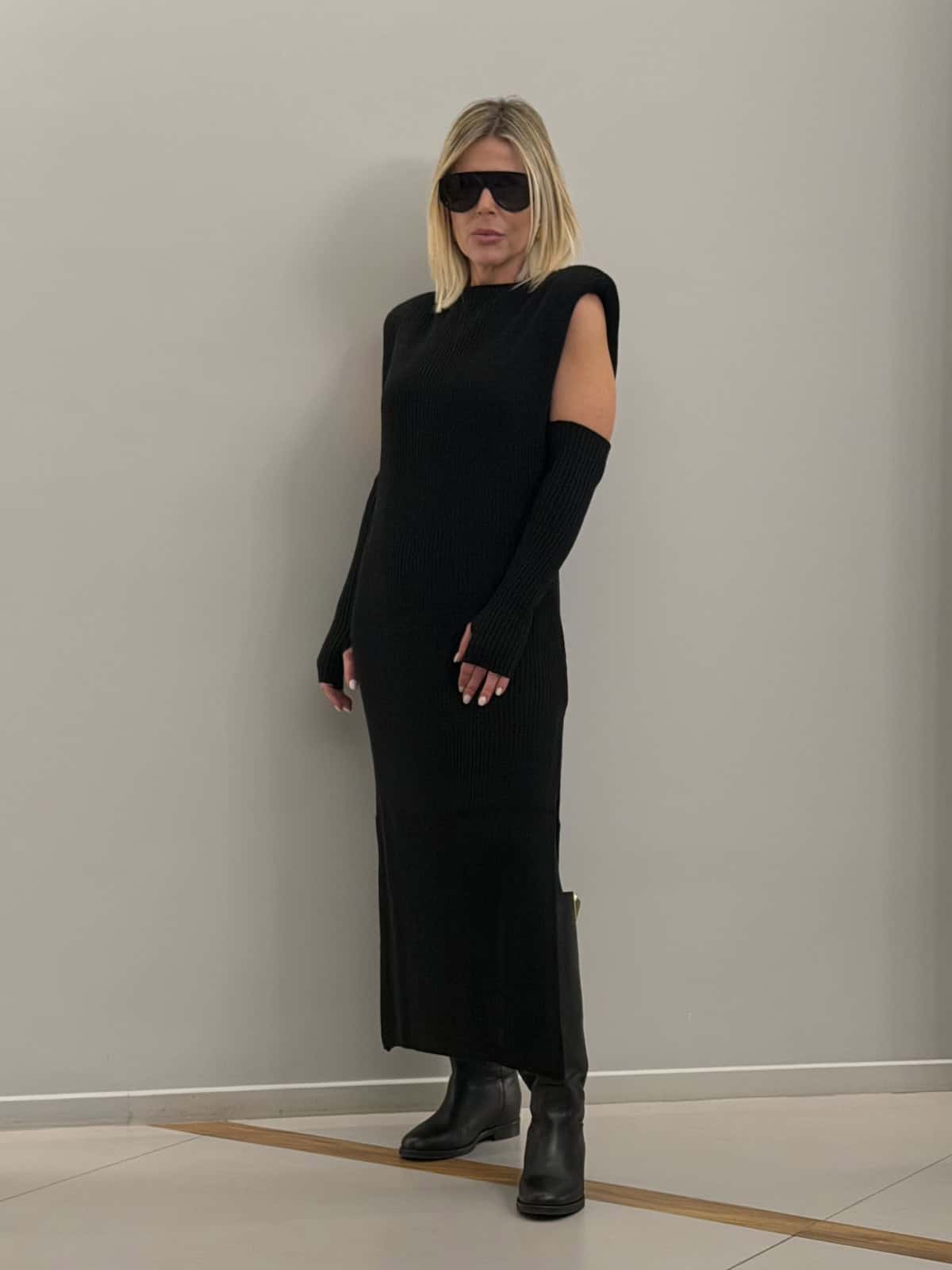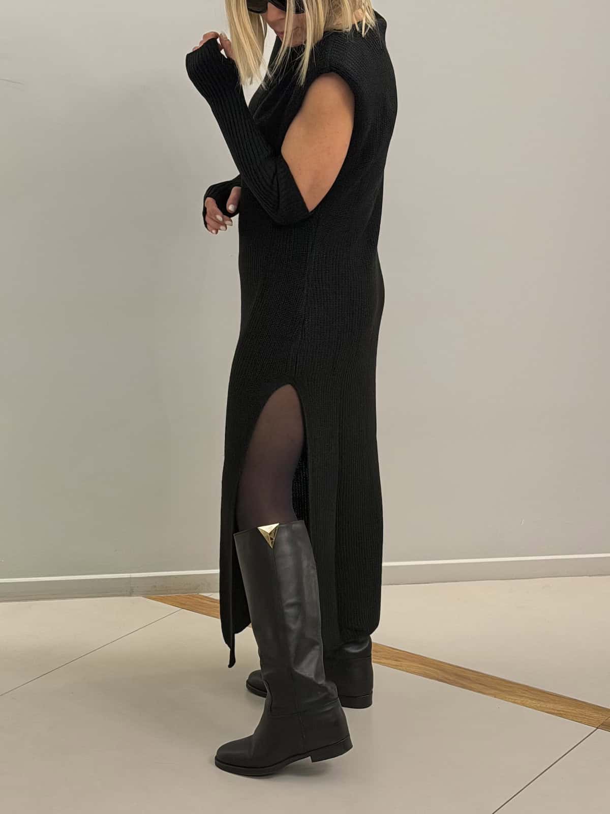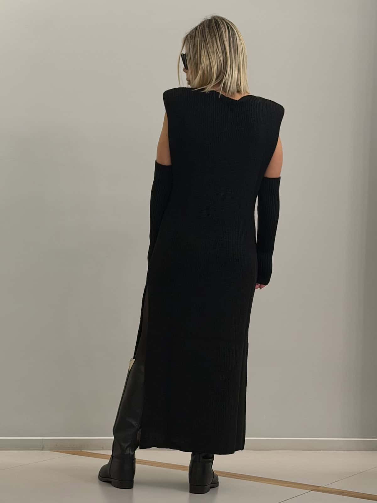 Abito lungo in maglia • Senza maniche • Spacchi laterali • Manicotti coordinati inclusi