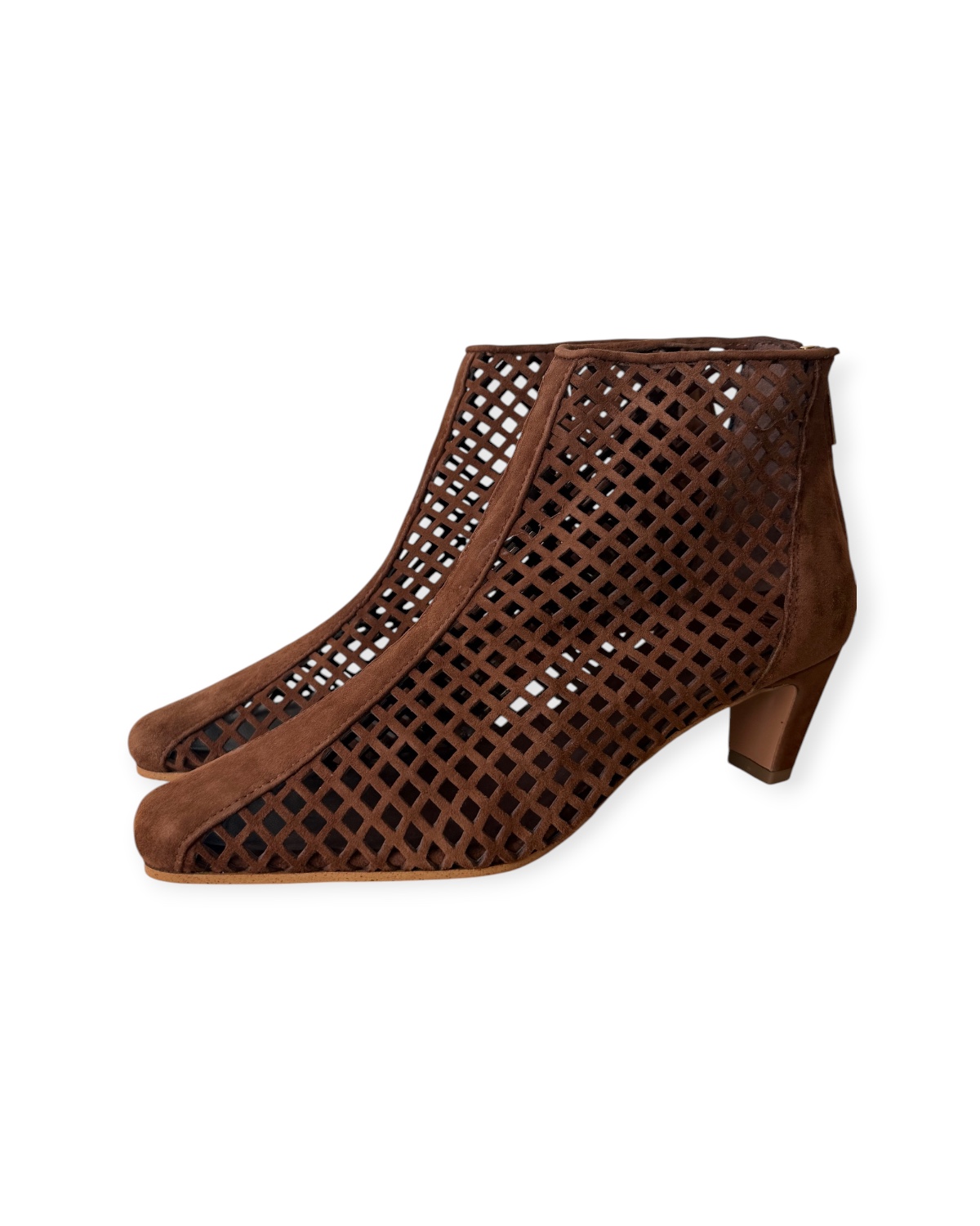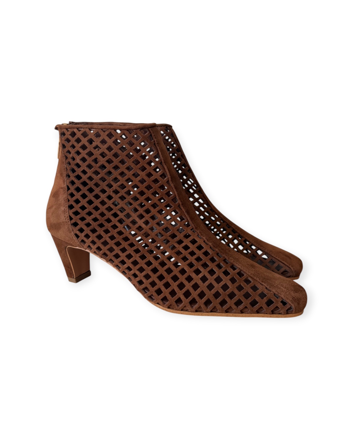 Tronchetto con punta affusolata, tomaia traforata e tacco di media altezza.