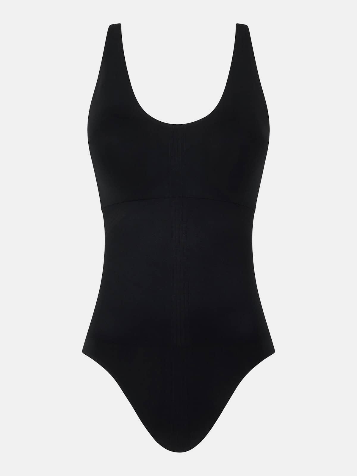 Body scultoreo. Zona di rinforzo alla vita. Invisibile sotto i vestiti Materiale lisciante e morbido senza cuciture. Apertura grazie a 3 bottoni automatici Signature Chantelle lavorata a maglia a contrasto.