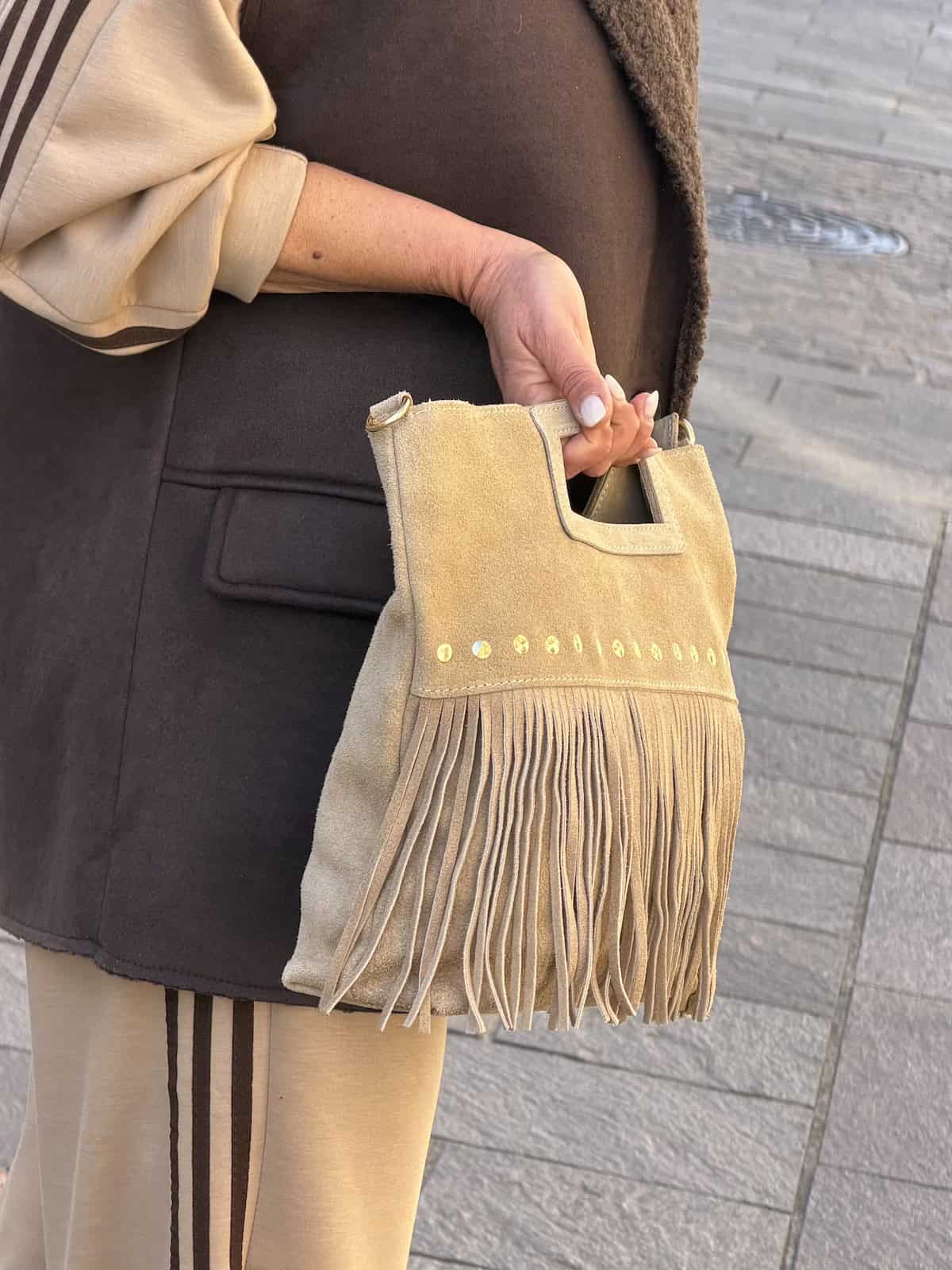 Borsa in pelle scamosciata con frange Dress17 – 6068