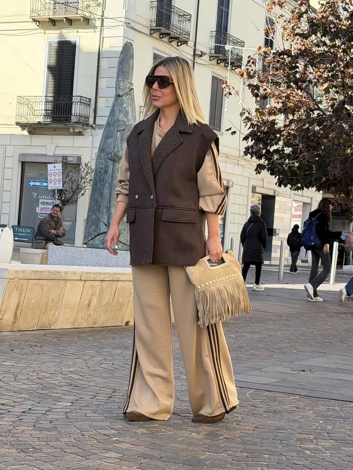 Un accessorio dal carattere deciso e glamour, che unisce lo stile boho delle frange alla luminosità delle borchie dorate. Perfetta per dare un tocco distintivo e ricercato a qualsiasi look, dal giorno alla sera.