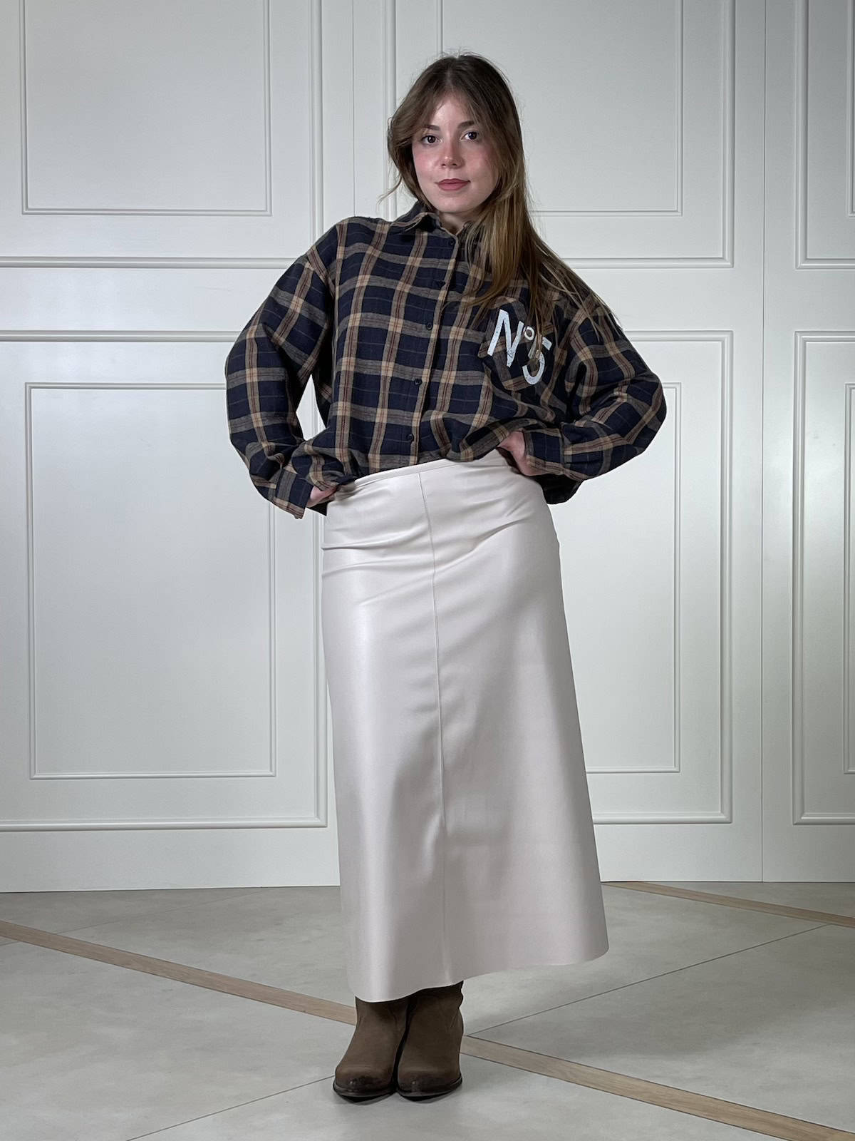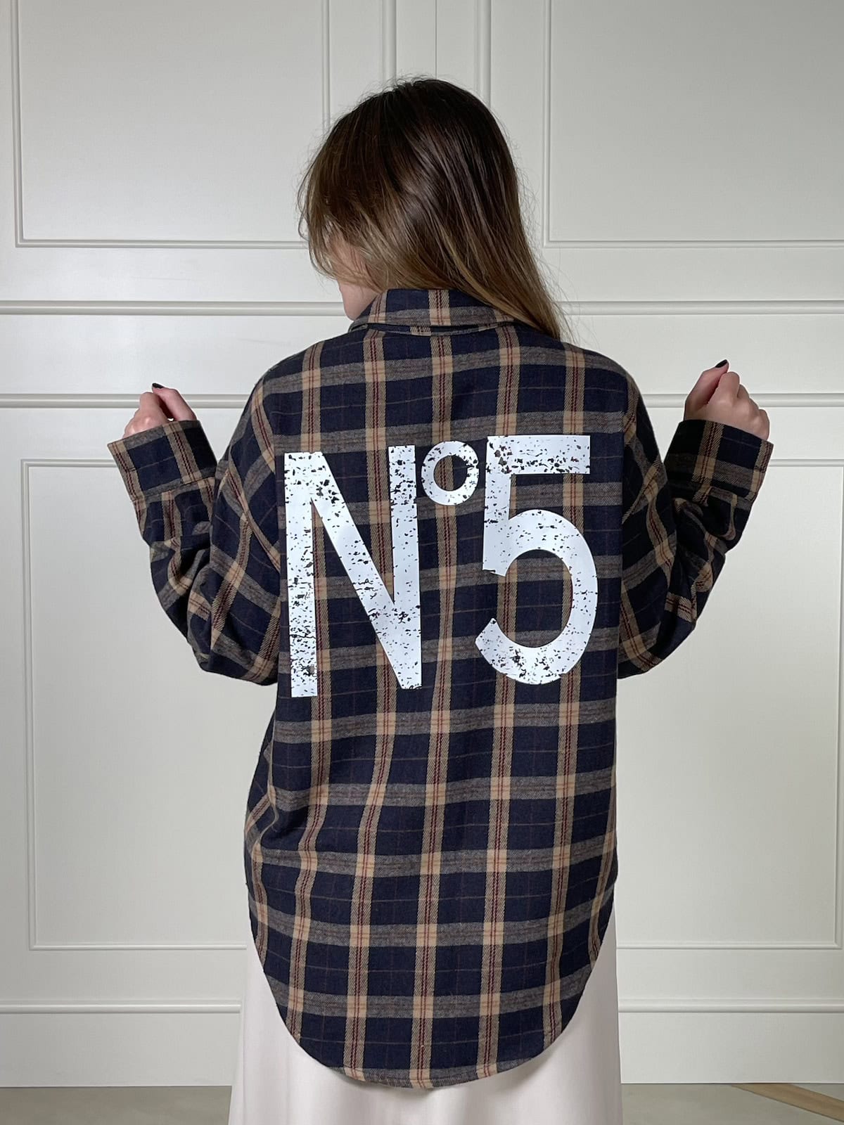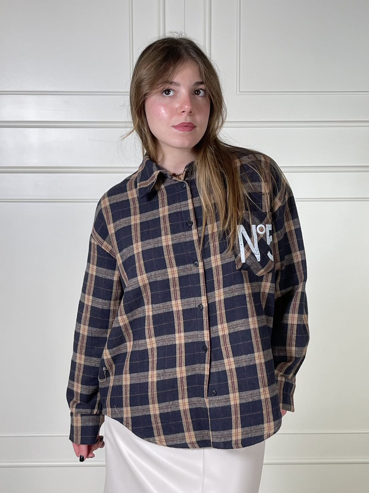 Tensione In camicia dal gusto casual-chic, perfetta per aggiungere un tocco grintoso e contemporaneo ai look di stagione. Il motivo check e il dettaglio grafico “N°5” la rendono un capo distintivo e versatile.