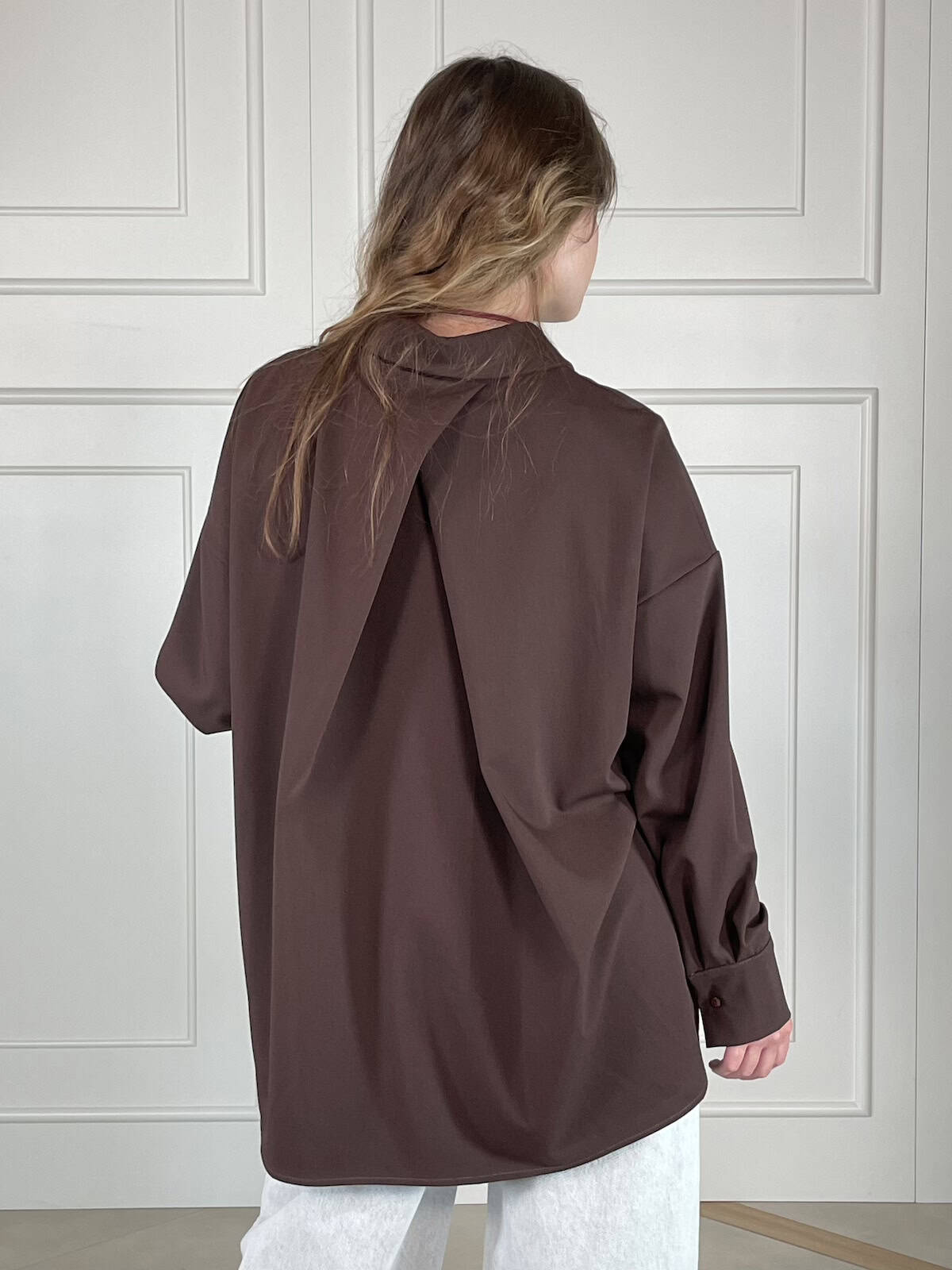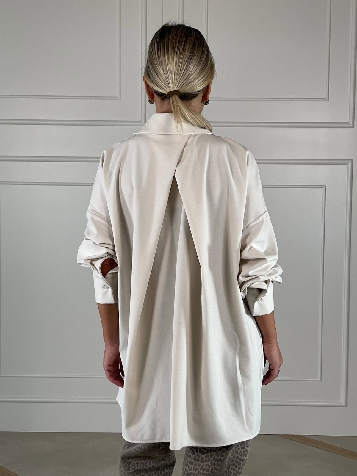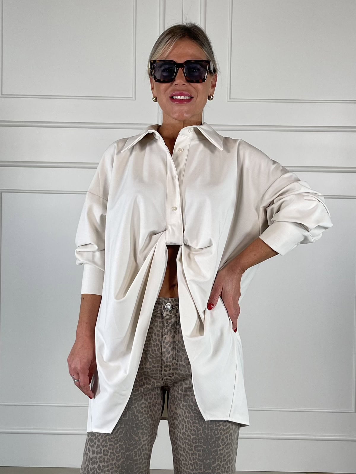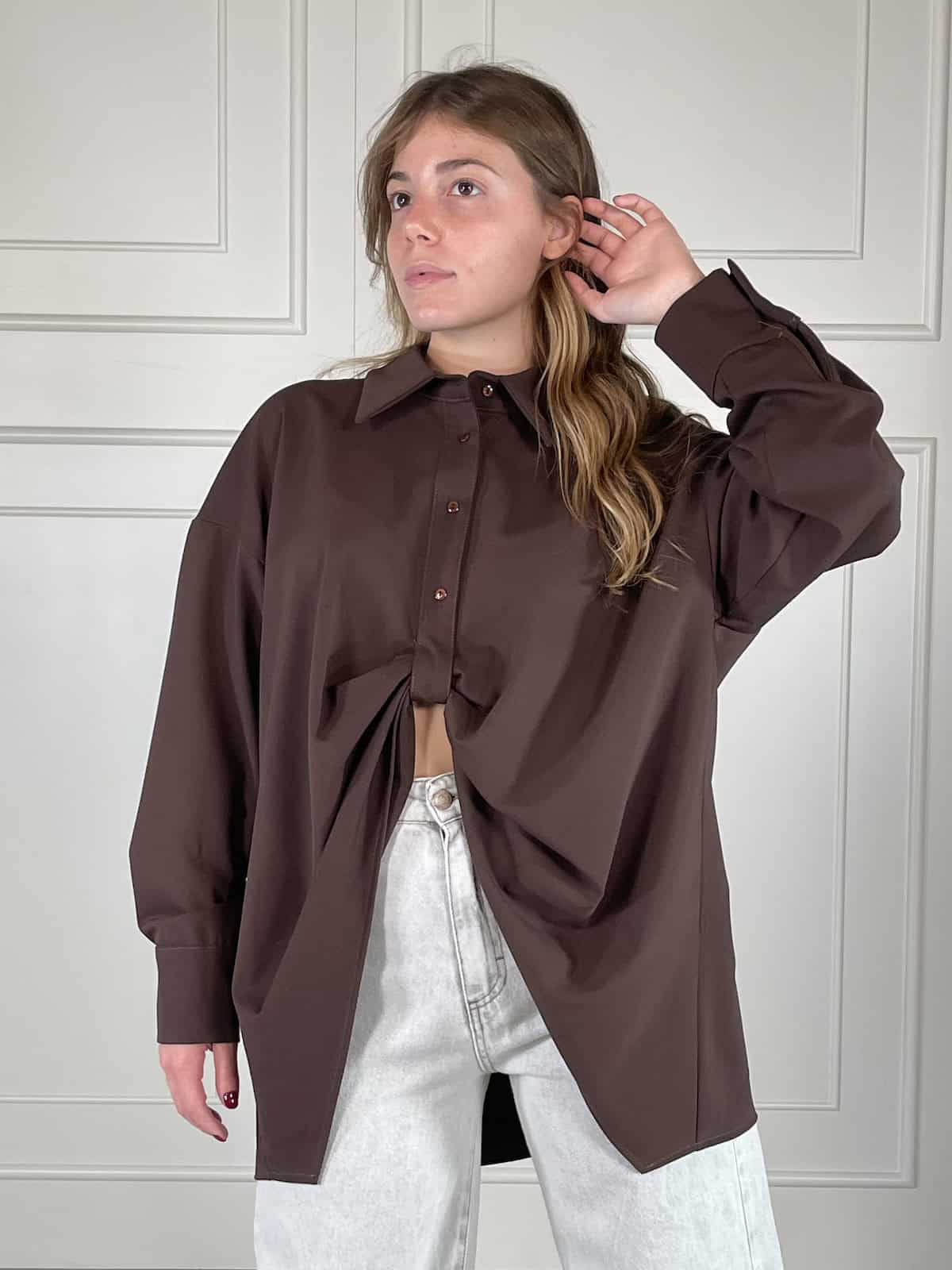 Vicolo camicia over in tessuto con collo classico, abbottonatura frontale e dettaglio nodo che crea un effetto drappeggio