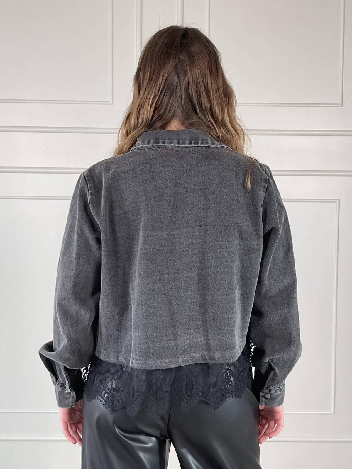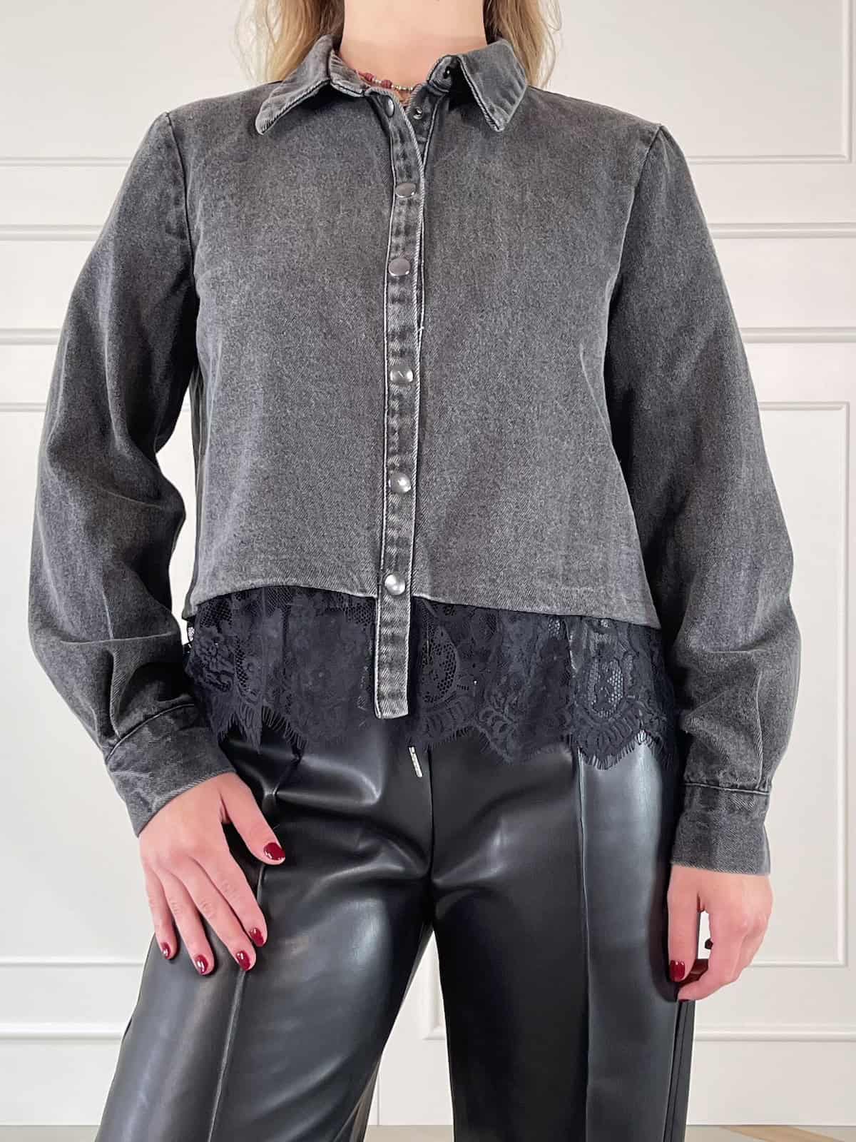 Tensione in camicia Jeans crop pizzo nero sul fondo