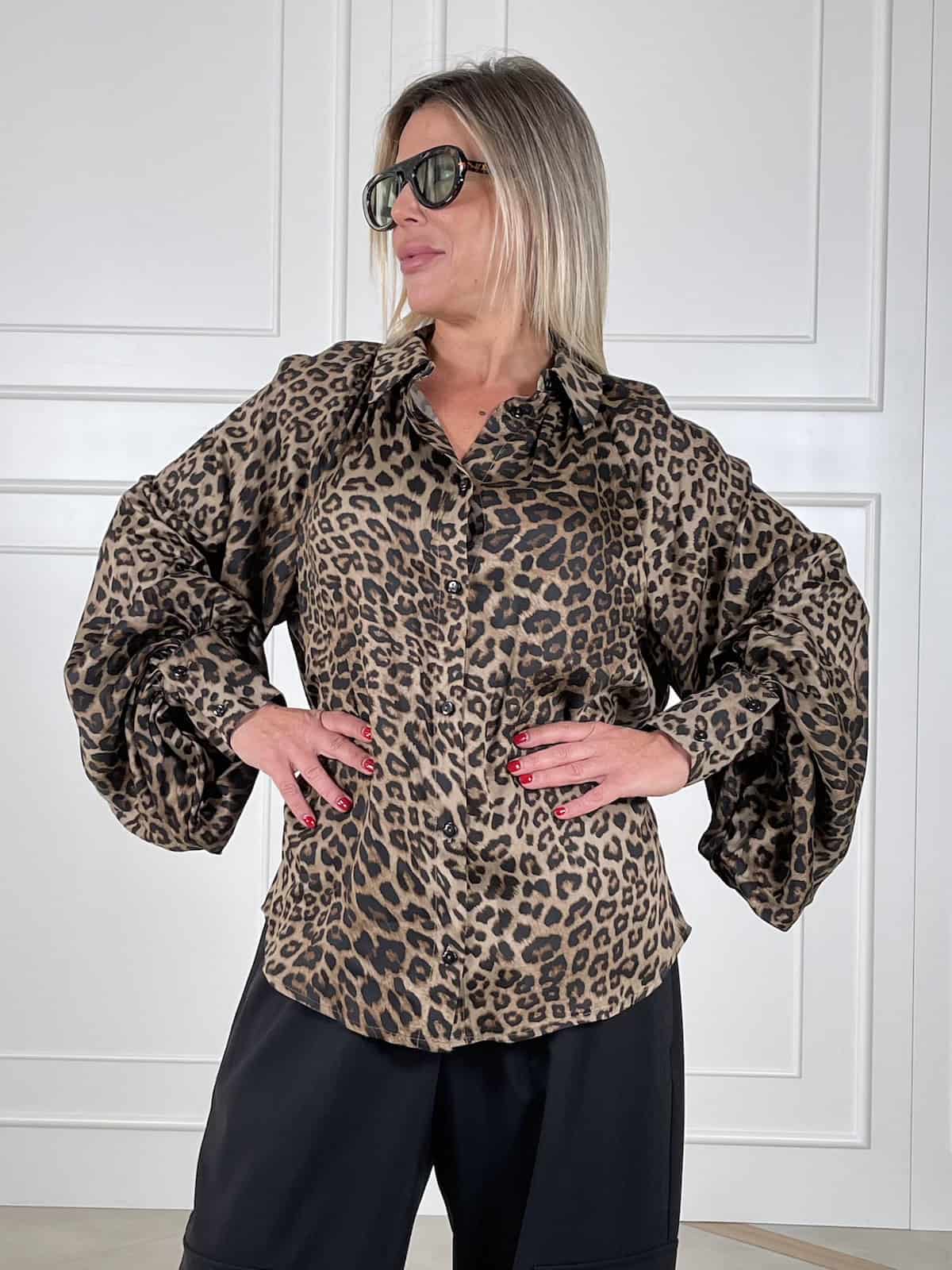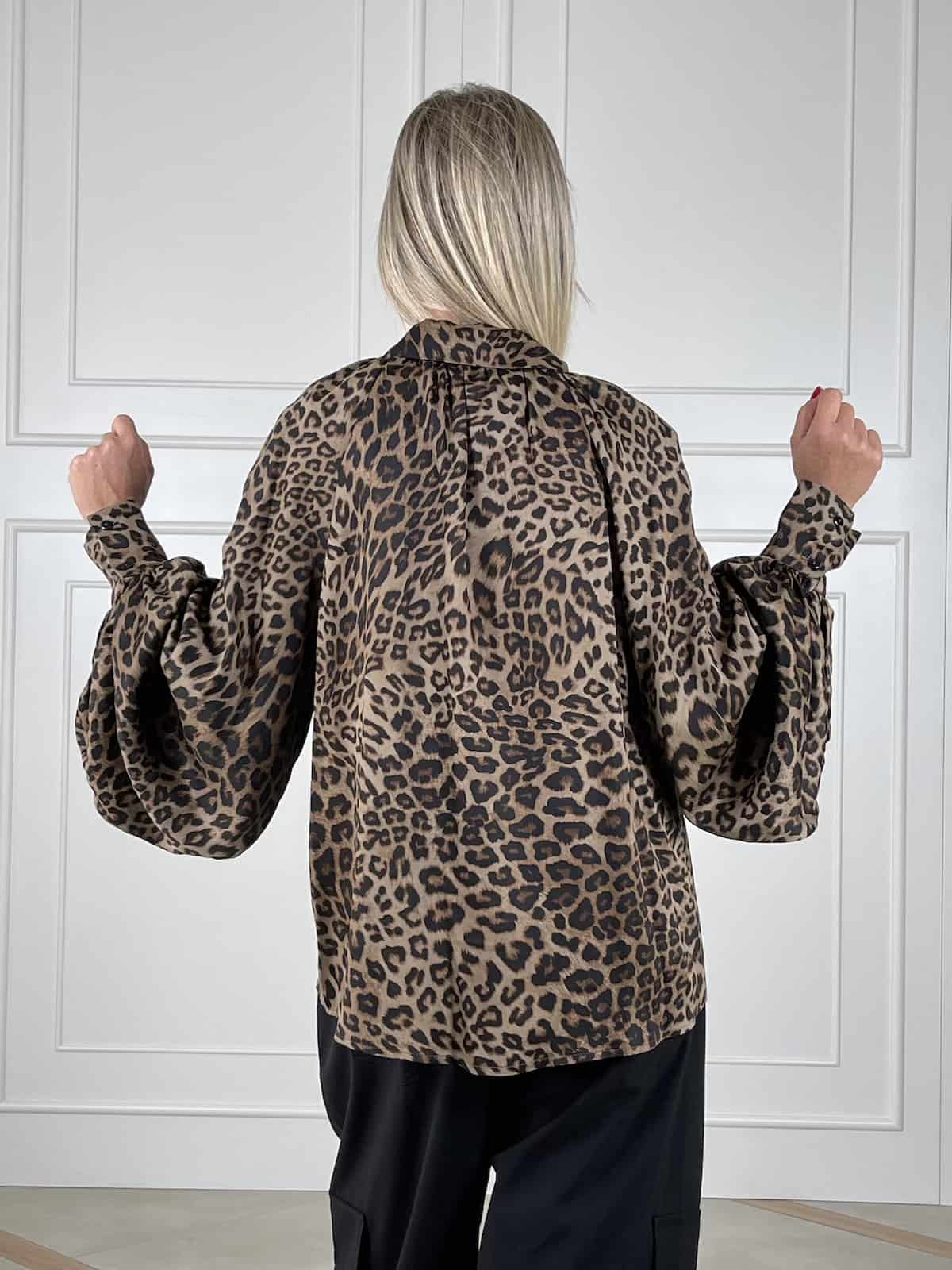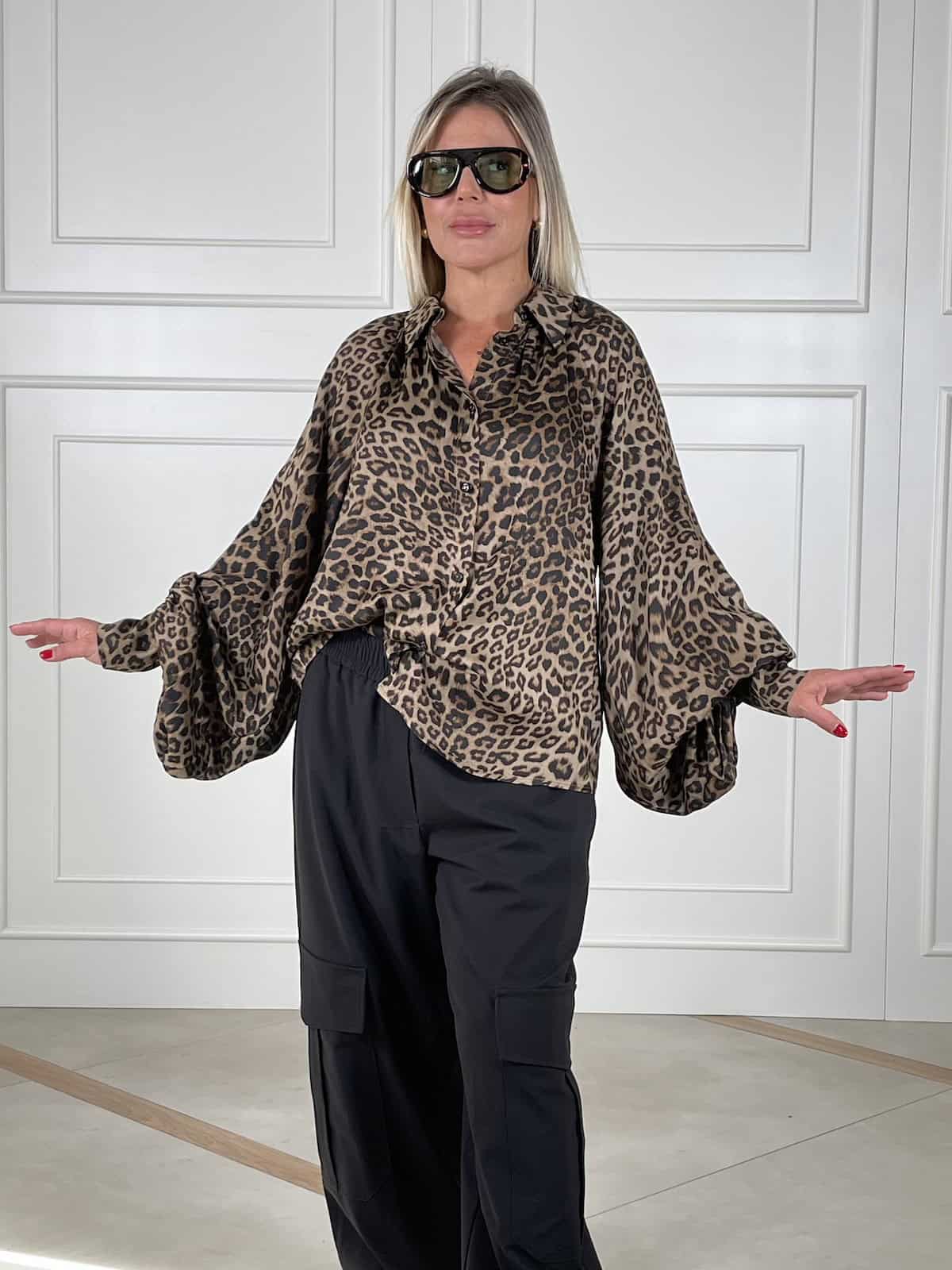 Un capo iconico che esprime personalità e stile deciso. Questa camicia Tensione In in morbido tessuto satinato gioca con il fascino intramontabile della stampa animalier, rendendo ogni outfit unico e contemporaneo. Perfetta da abbinare a pantaloni eleganti o denim per un contrasto di carattere.