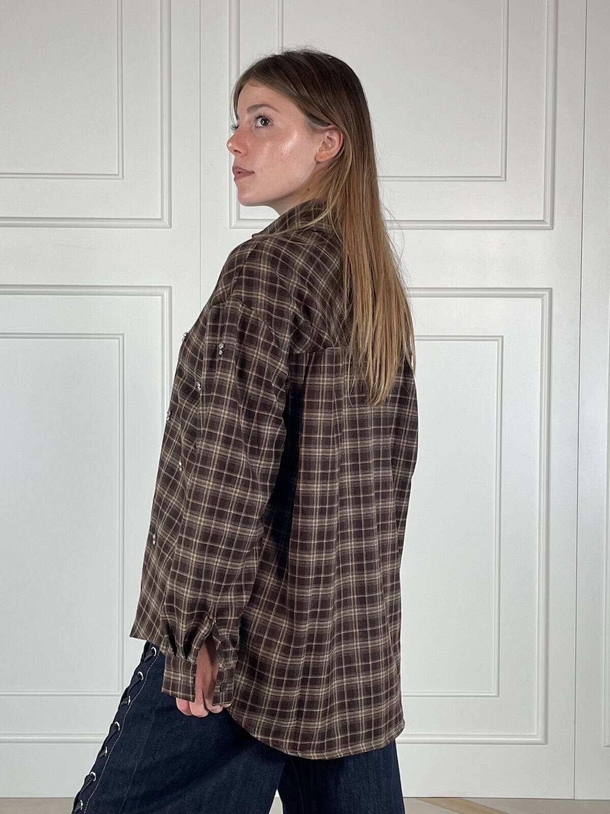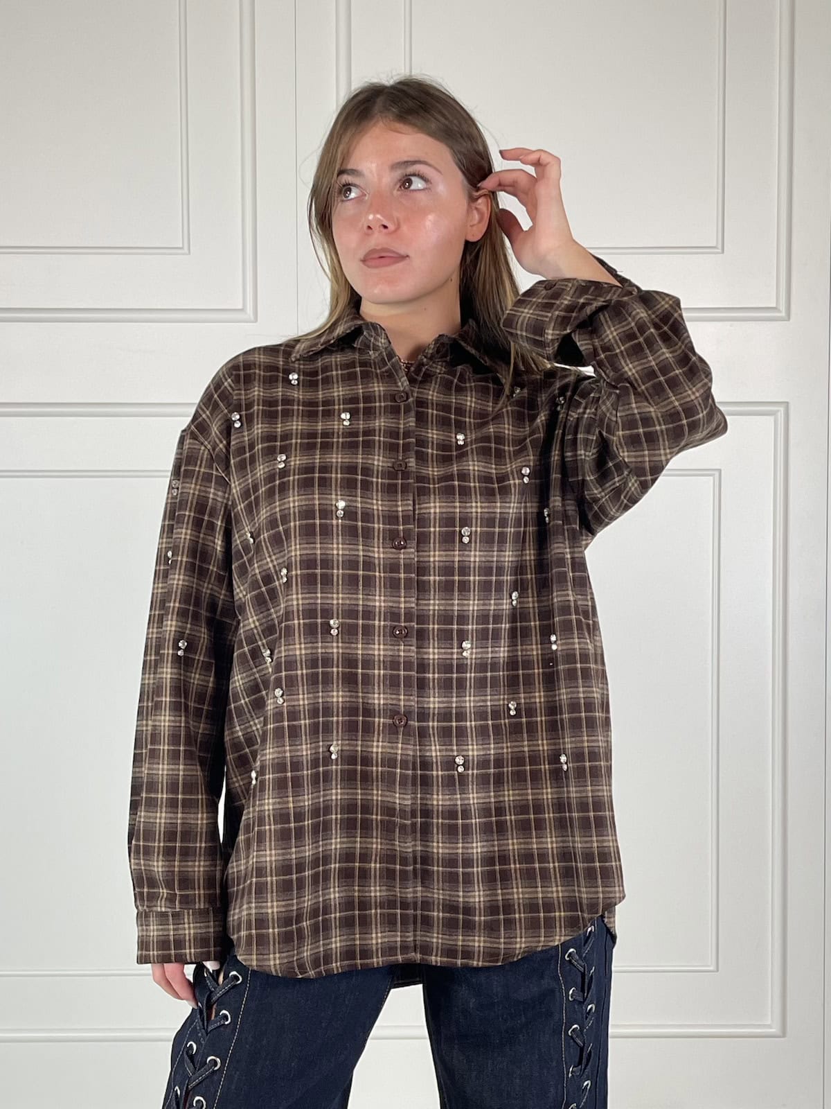 FitByDele camicia a quadri in morbida flanella con pietre in risalto.