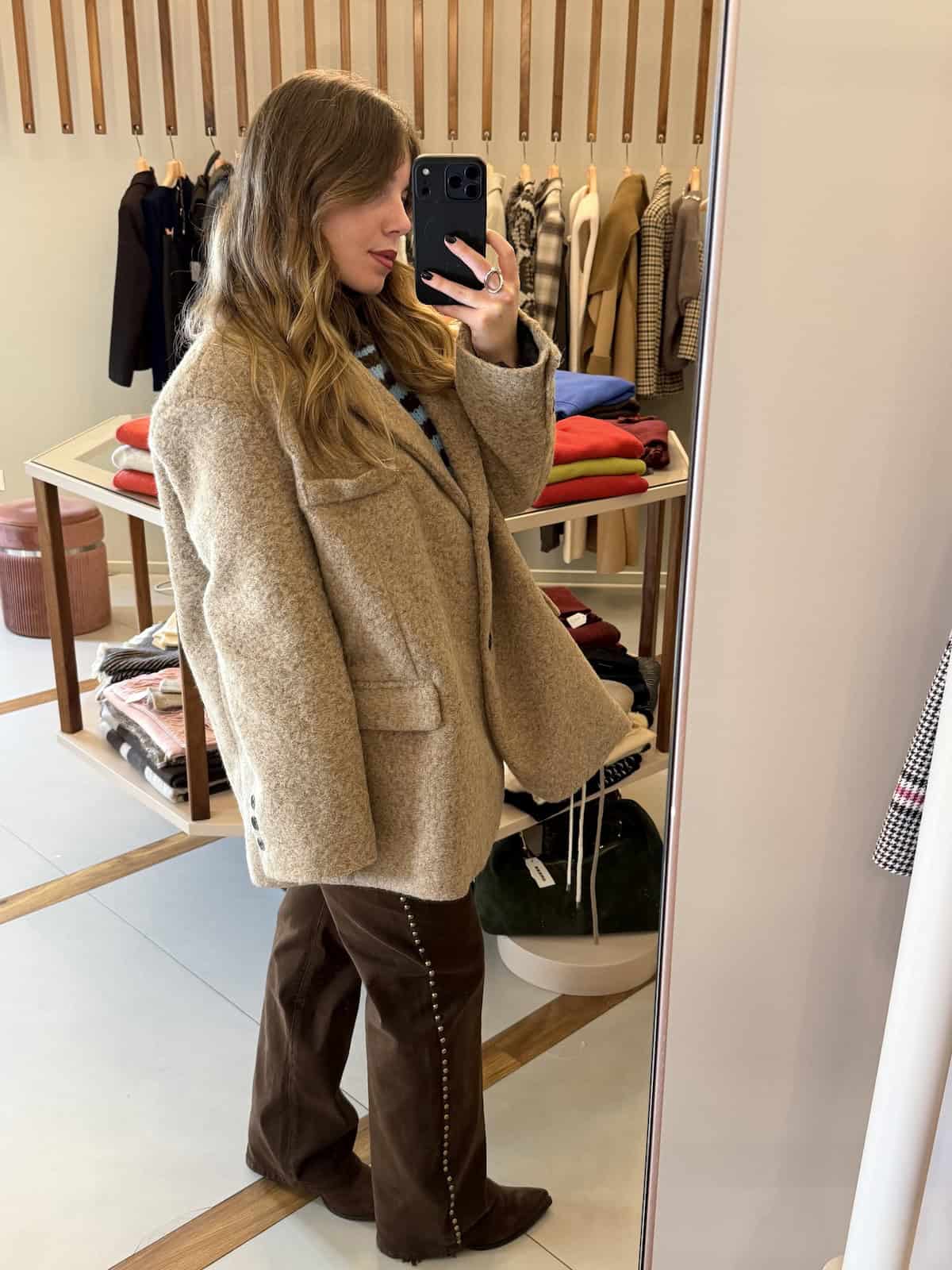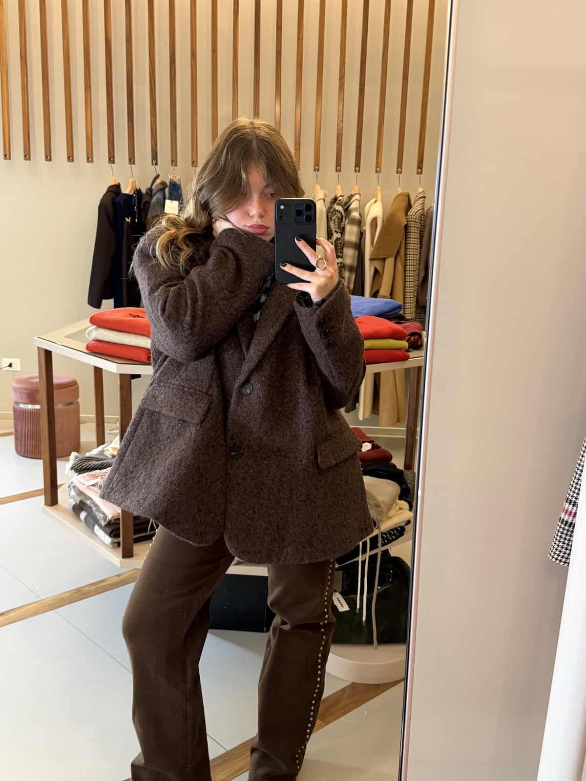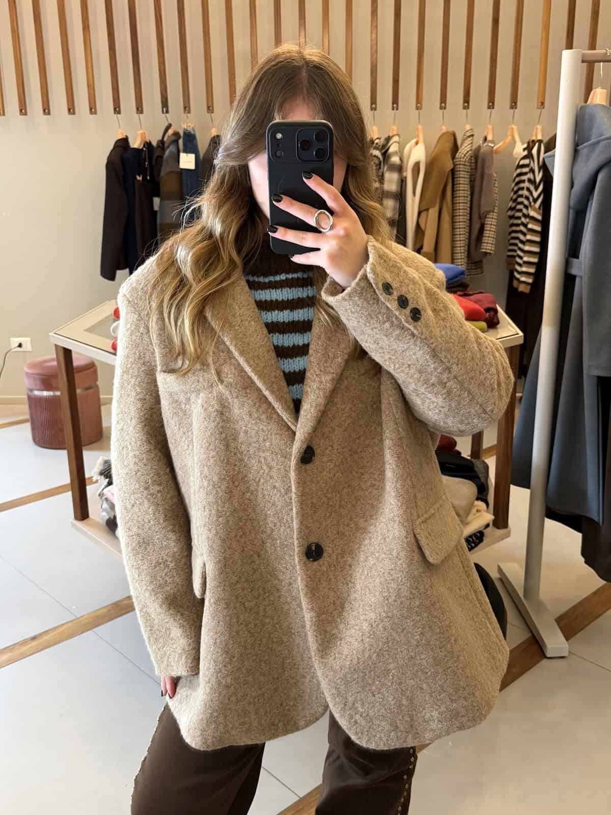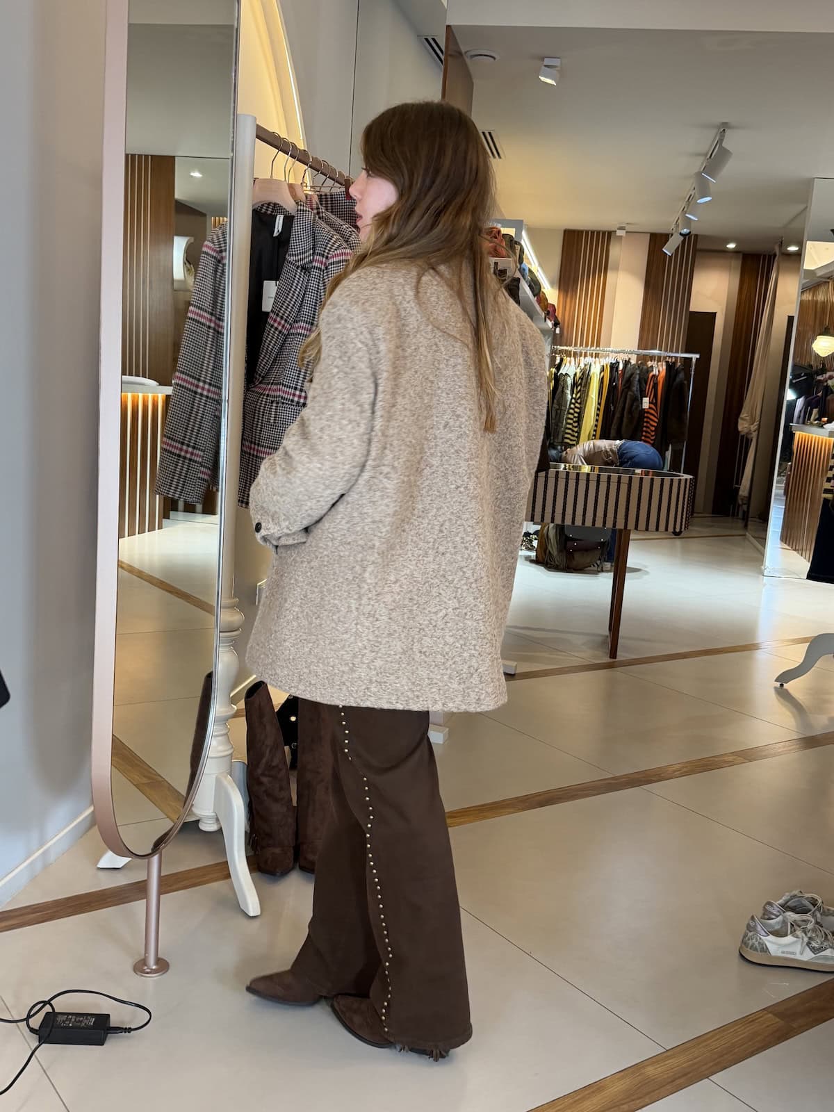 Cappotto corto effetto giacca – linea morbida – chiusura a due bottoni.