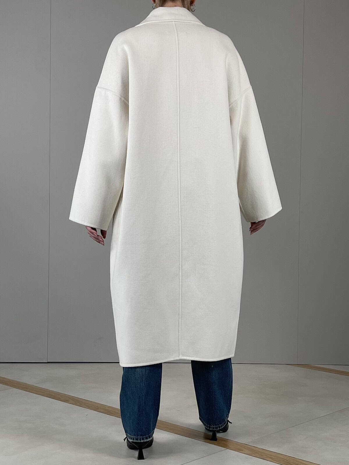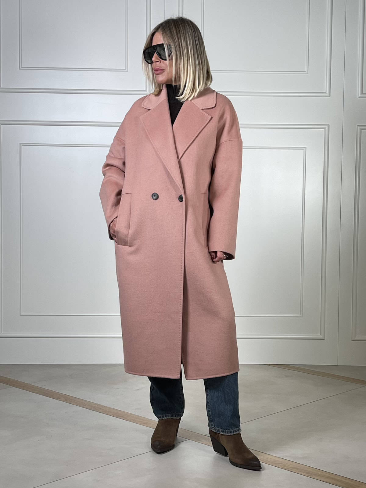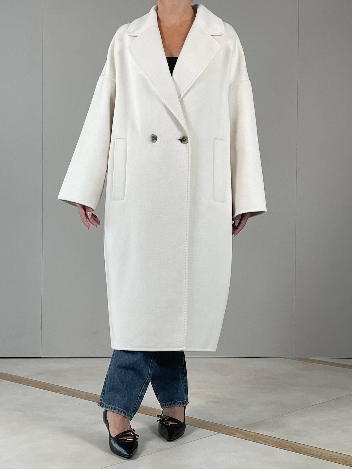 Cappotto lungo dal taglio elegante e dalla linea morbida, caratterizzato da chiusura doppiopetto con bottoni. Un modello sofisticato e senza tempo, perfetto per completare outfit quotidiani e look più formali con stile e raffinatezza.