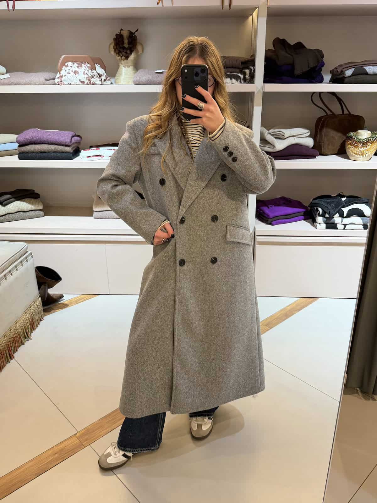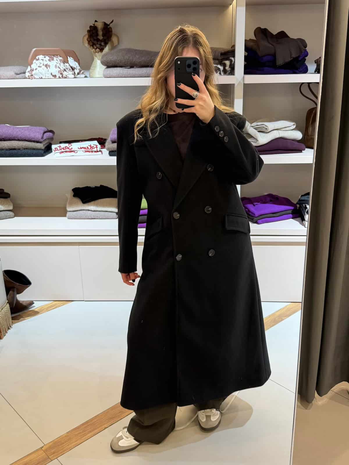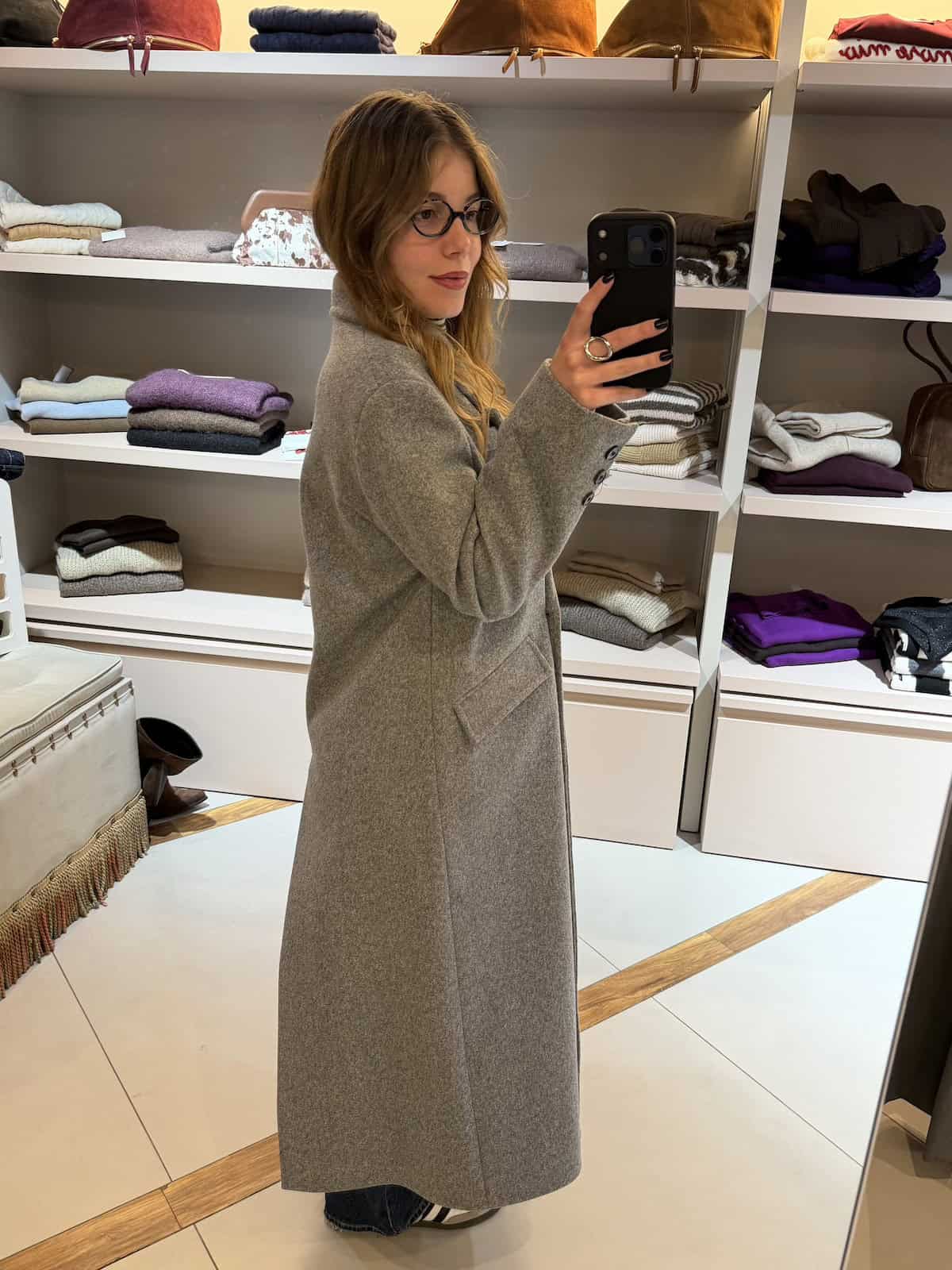 FitByDele cappotto lungo dallo stile elegante e minimal, caratterizzato da una linea pulita e dalla chiusura doppiopetto che dona struttura e raffinatezza. Un modello versatile, perfetto per completare look quotidiani o più formali.