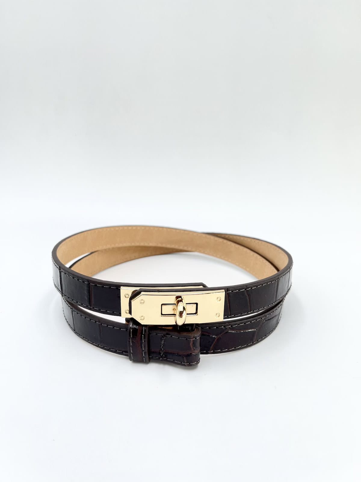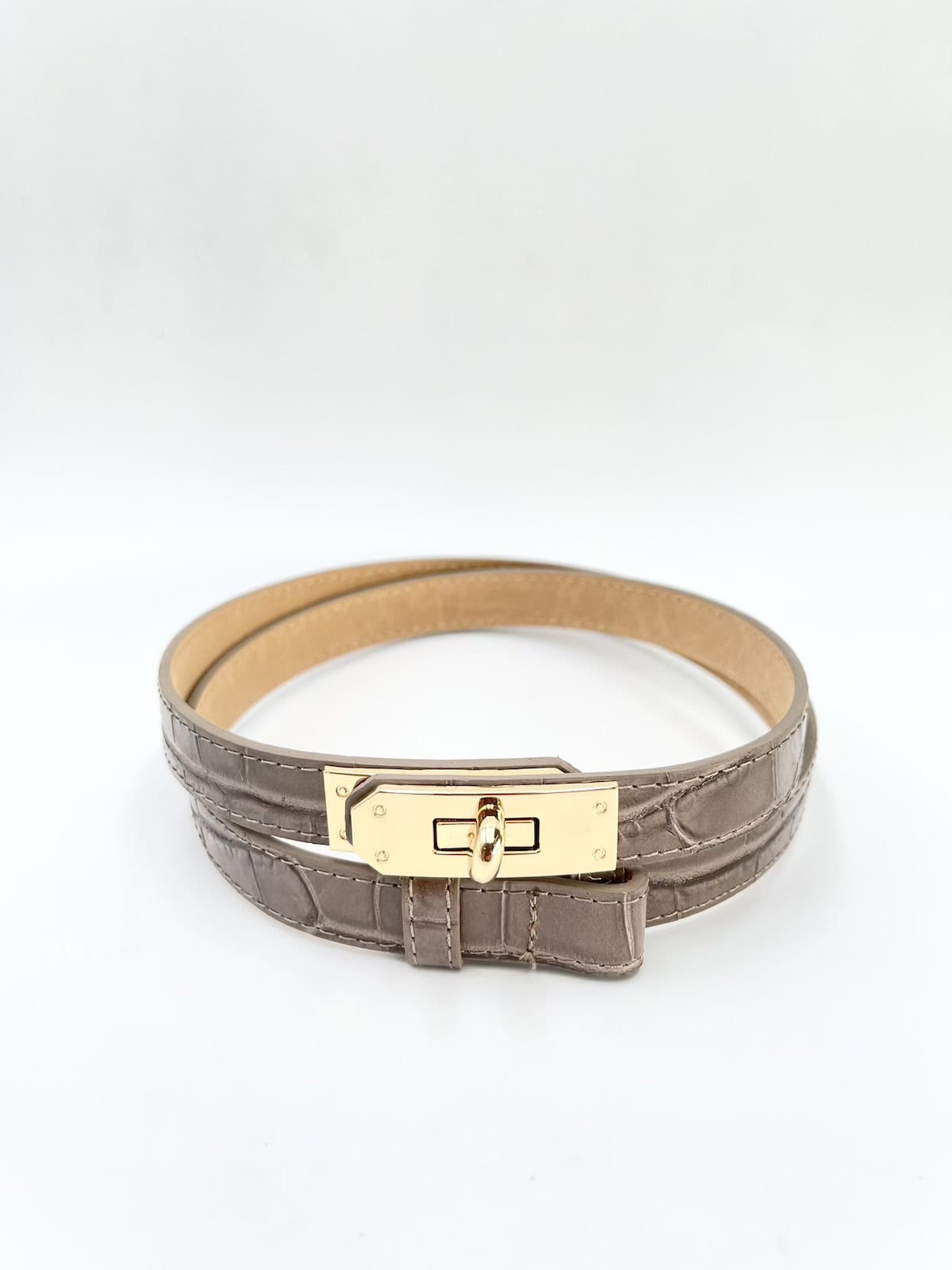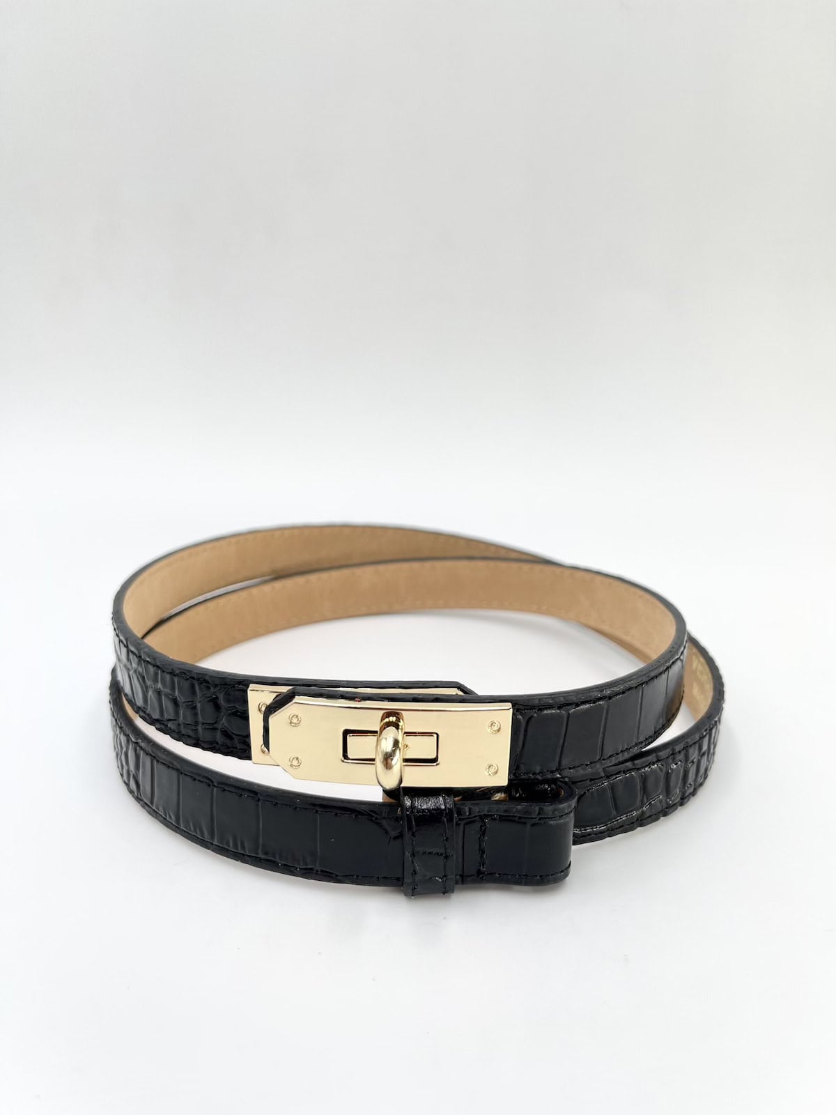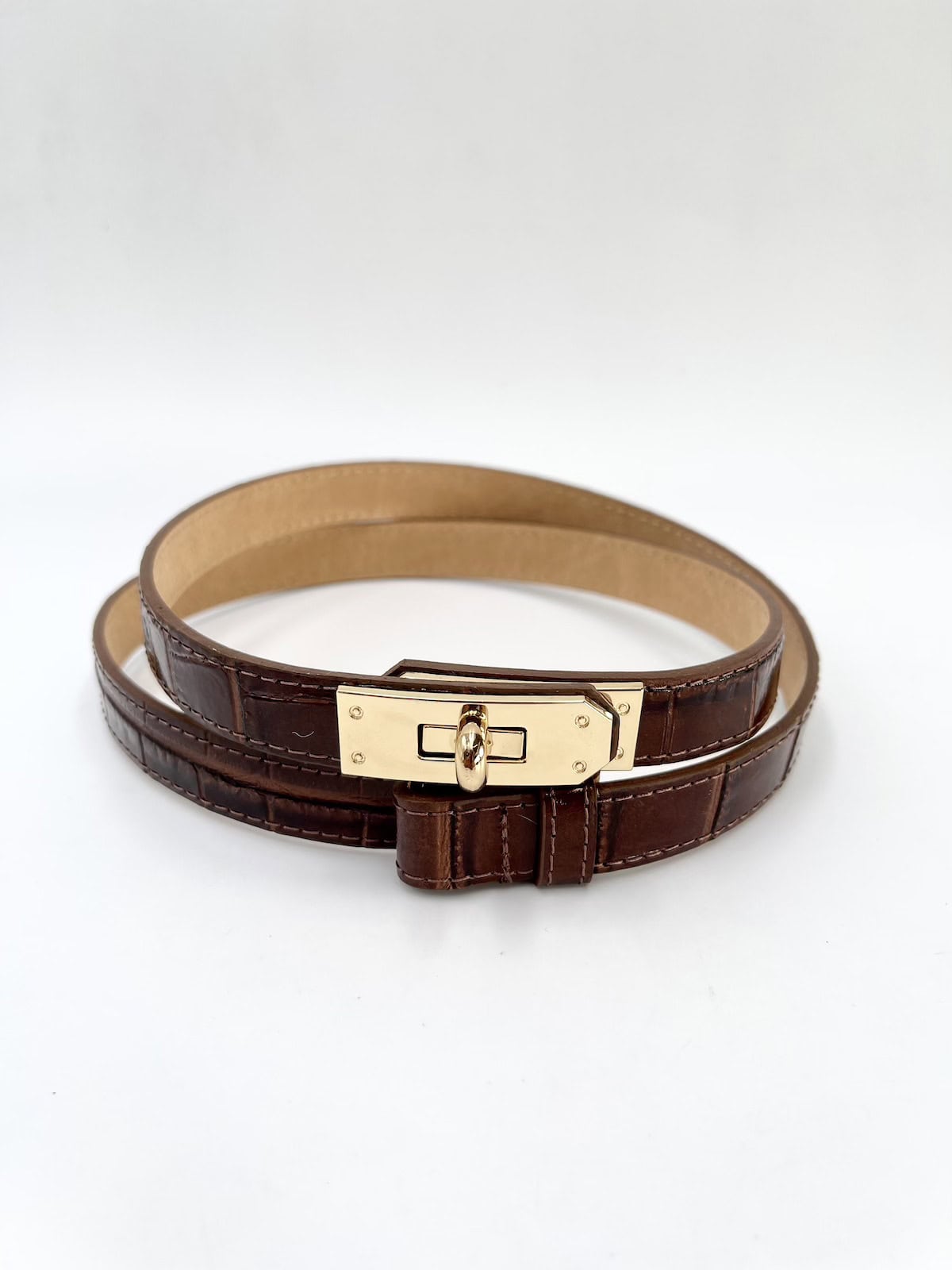 Dress17 cintura in pelle con chiusura gioiello. Un accessorio di classe e dallo spirito contemporaneo, realizzato in pelle per un tocco di pregio. Il dettaglio in metallo dorato con chiusura gioiello aggiunge una nota luminosa e sofisticata, rendendo la cintura un elemento iconico per rifinire con eleganza qualsiasi outfit. Perfetta per accentuare la silhouette con un tocco luxury e senza tempo.