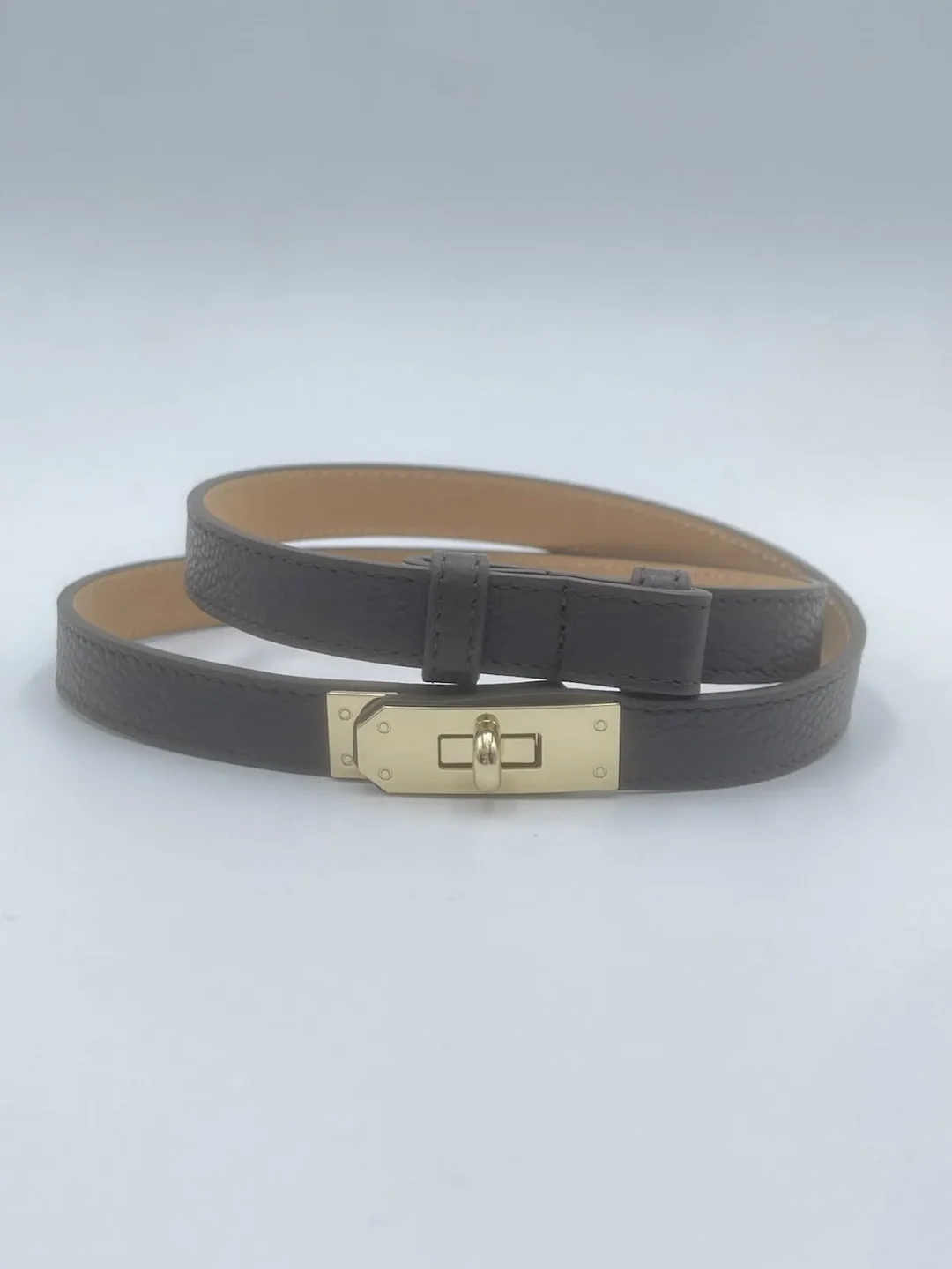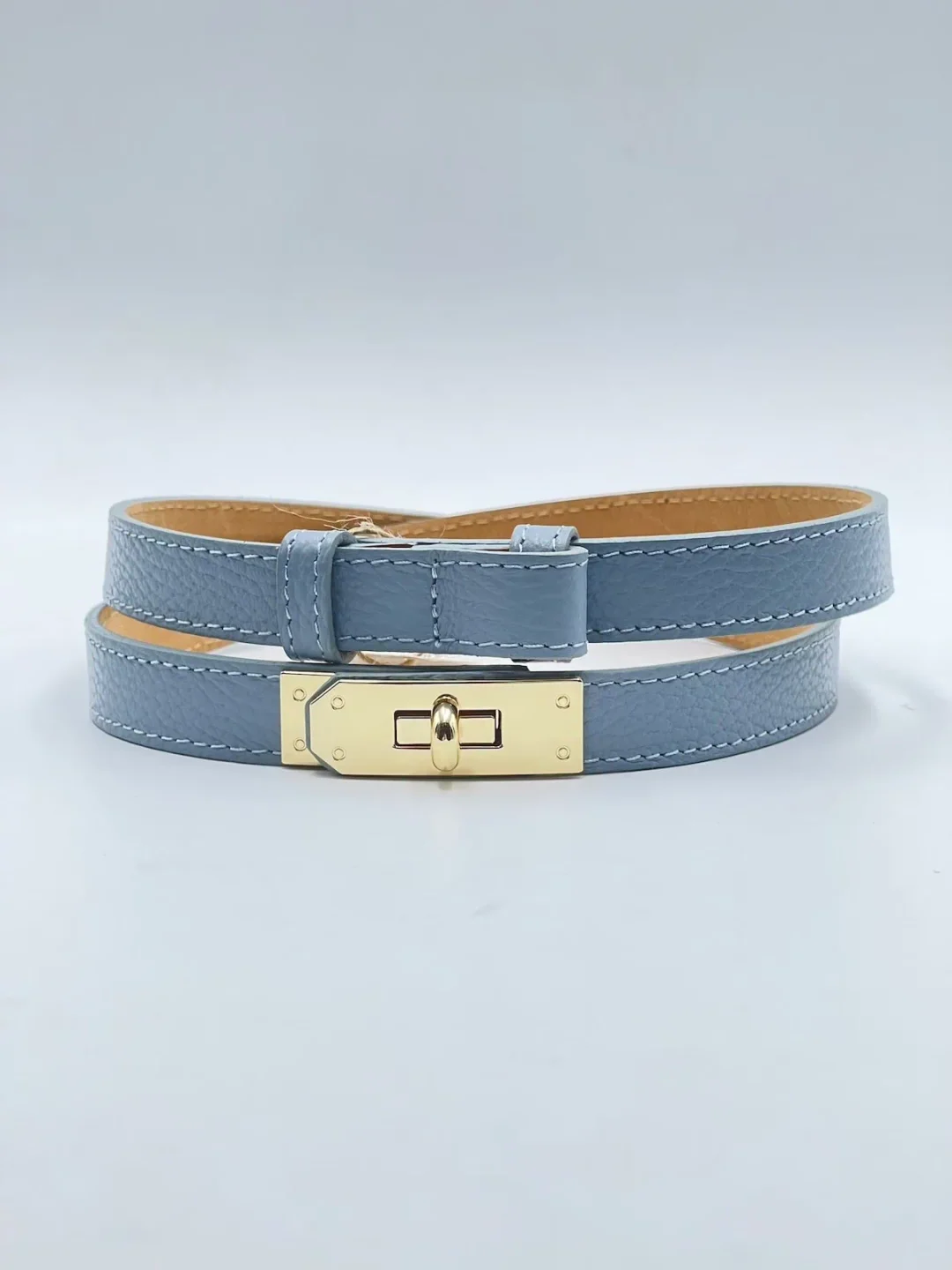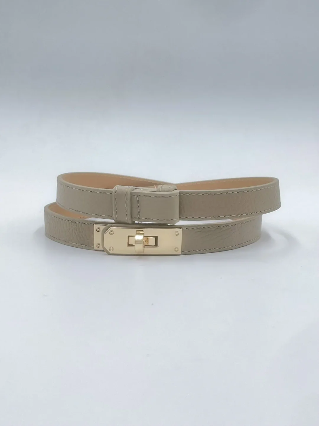 Il dettaglio in metallo dorato con chiusura gioiello aggiunge una nota luminosa e sofisticata, rendendo la cintura un elemento iconico per rifinire con eleganza qualsiasi outfit. Perfetta per accentuare la silhouette con un tocco luxury e senza tempo.