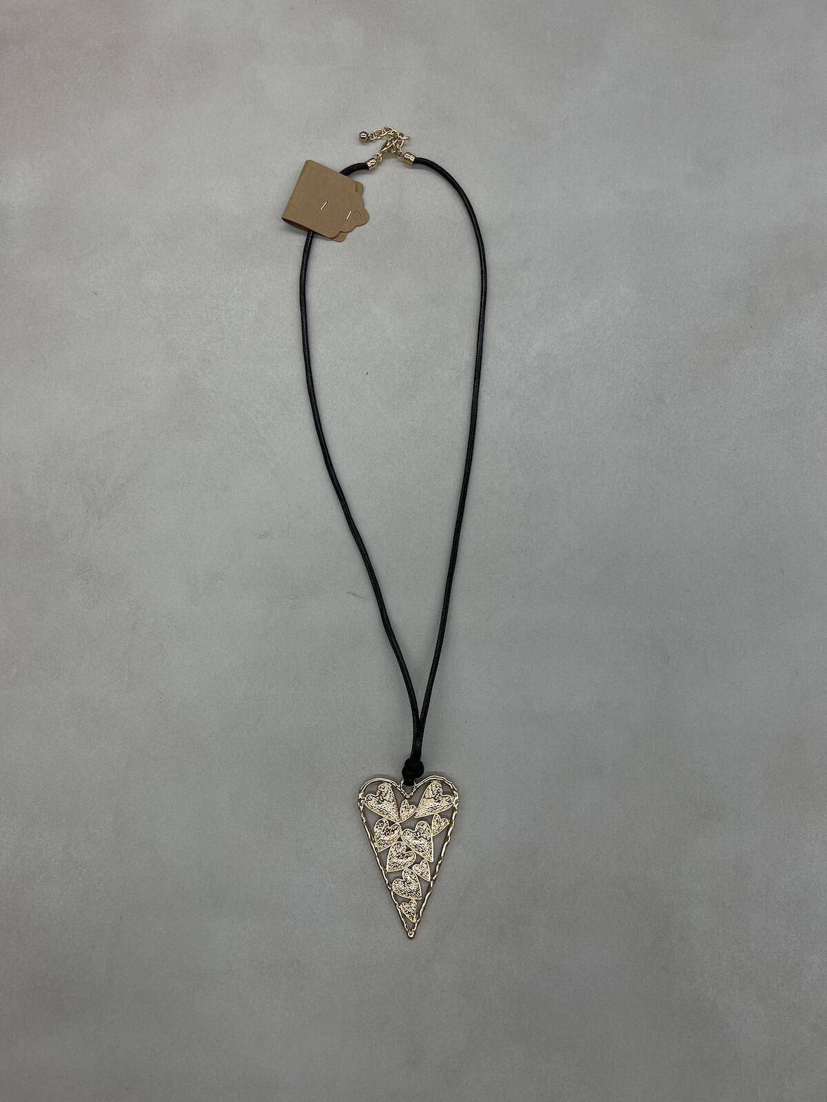 FitByDele collana lunga con cordoncino liscio in materiale tecnico, regolabile tramite nodo che dona un tocco contemporaneo al pendente cuore in metallo.