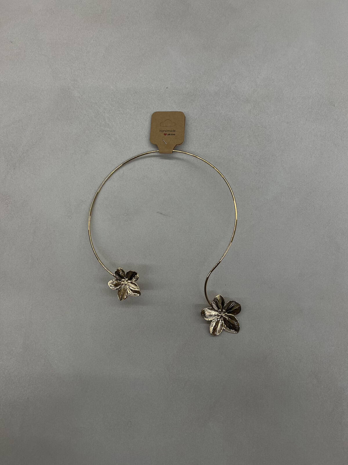 FitByDele collana girocollo semi rigida in metallo oro con fiori a chiusura regolabile.