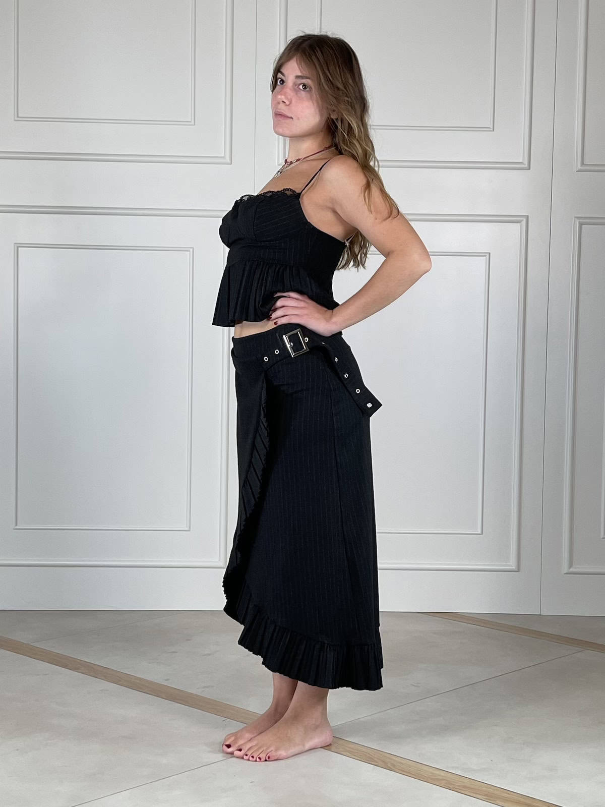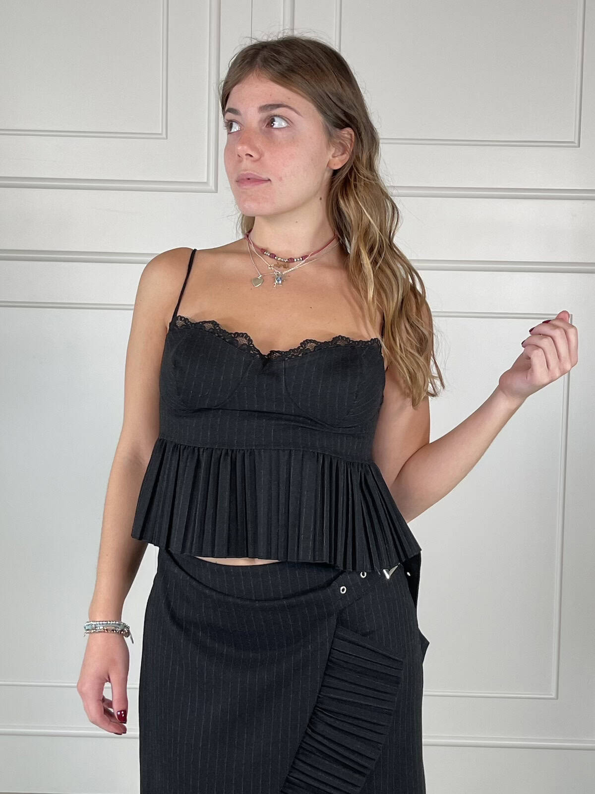 Tensione In corpetto in tessuto gessato fondo plissettato