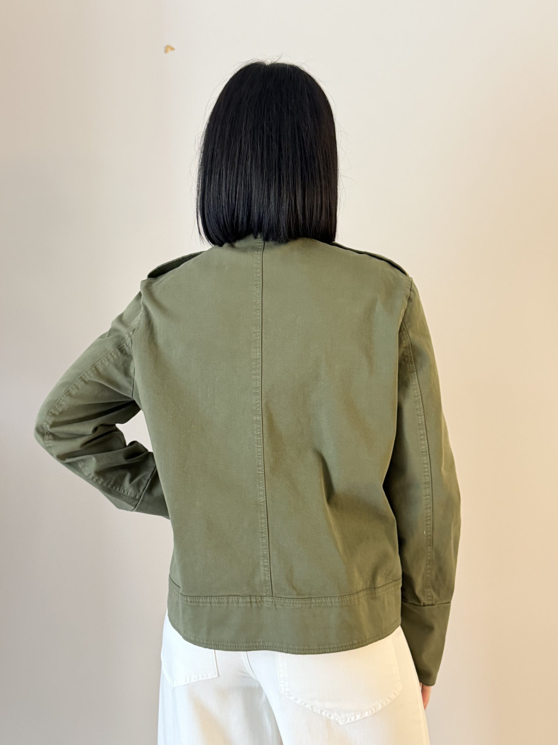 Modello: Giacca stile militare con collo alla coreana.