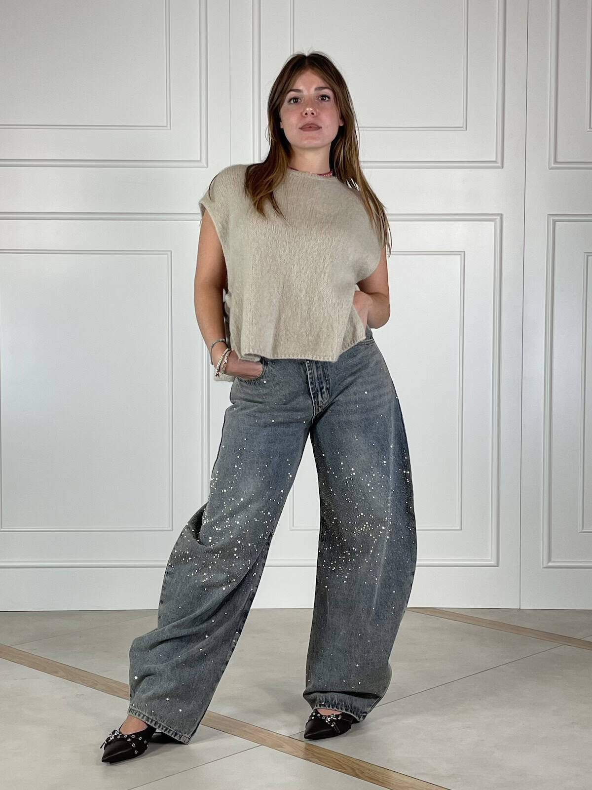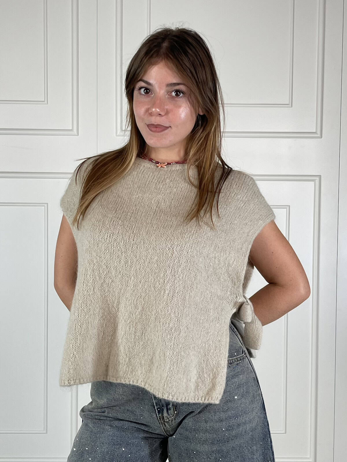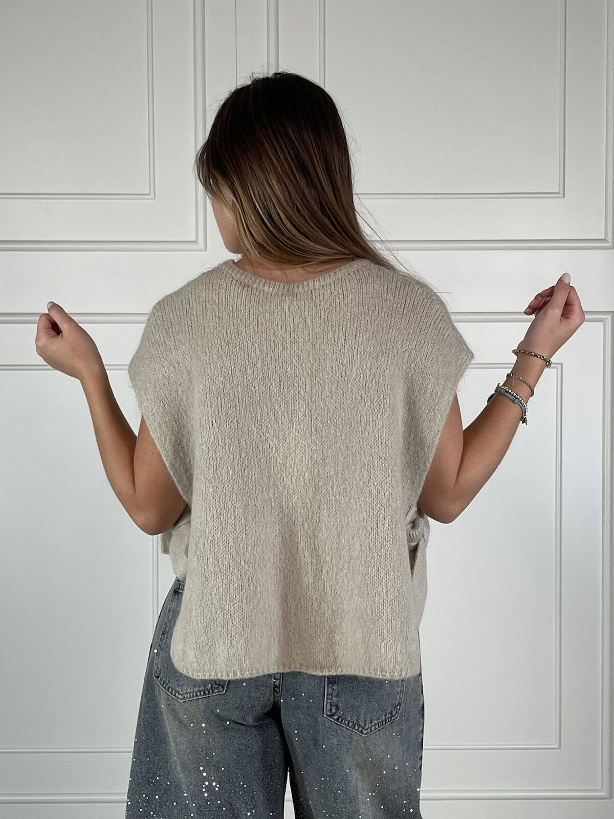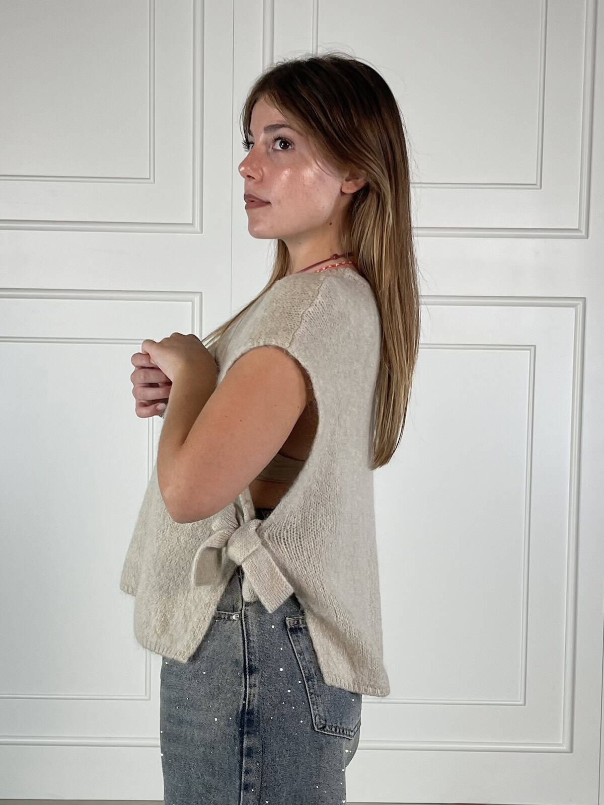 FitByDele gilet in maglia morbida misto viscosa con apertura laterale e fiocchi.
