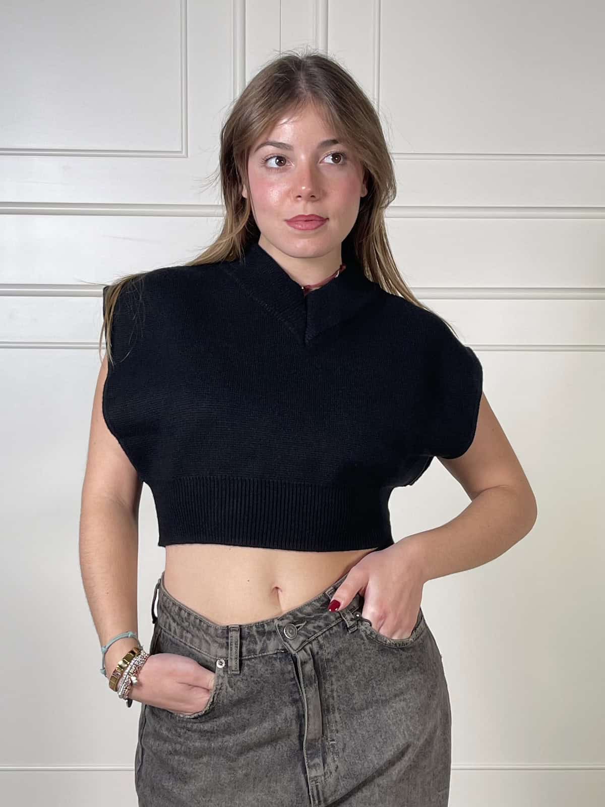 Gilet crop in maglia scollo V Vicolo – 77237F