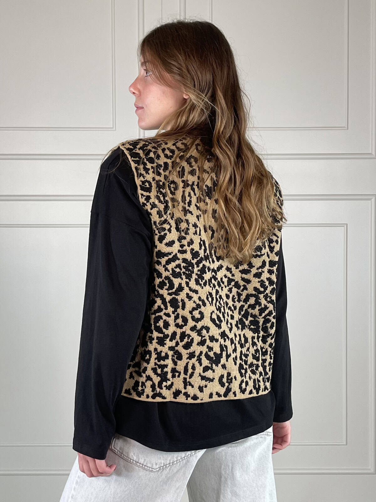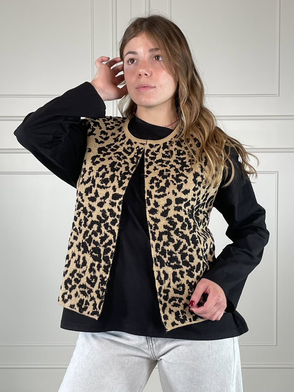 Tensione in gilet maculato e scollo tondo