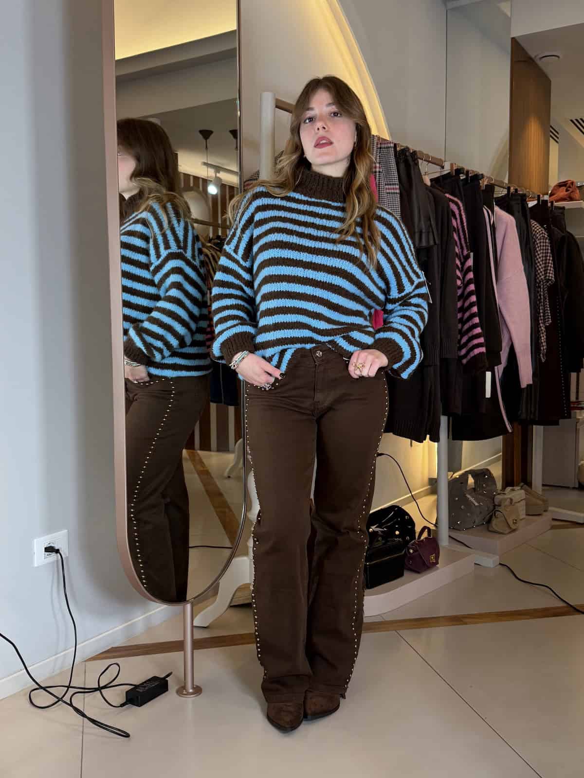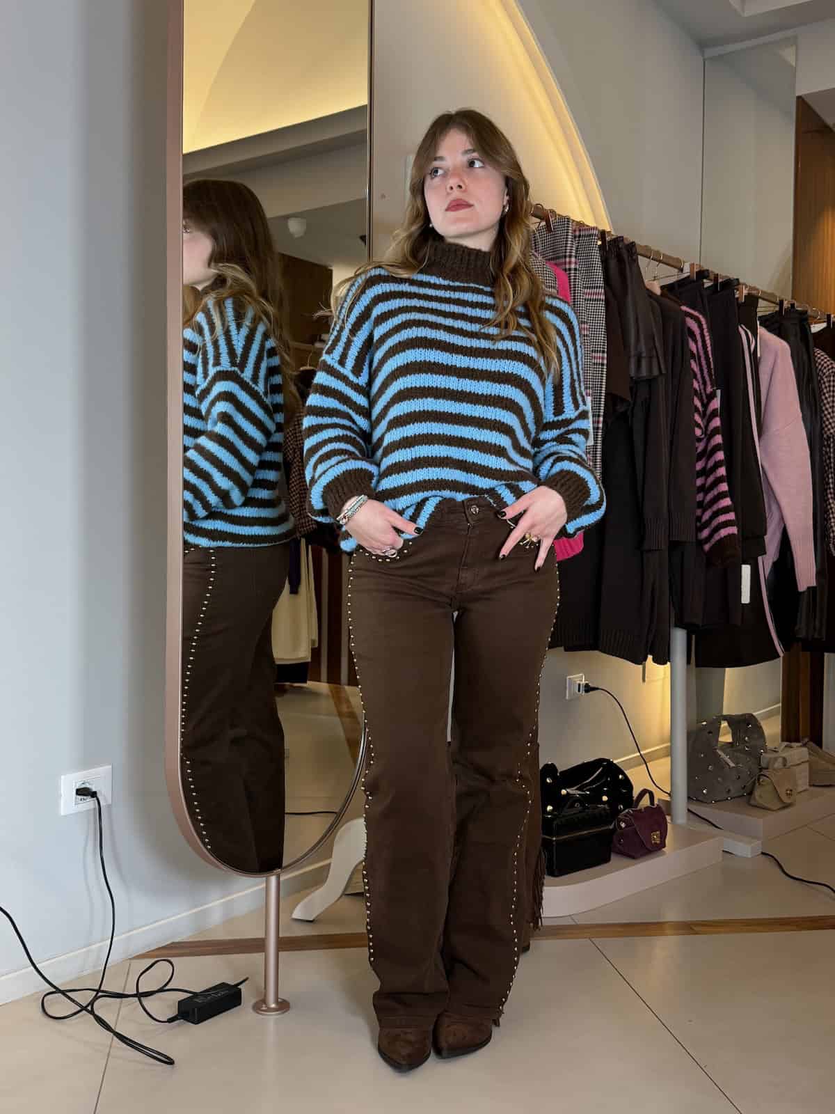 Borchie anche lungo l’intera lunghezza della gamba