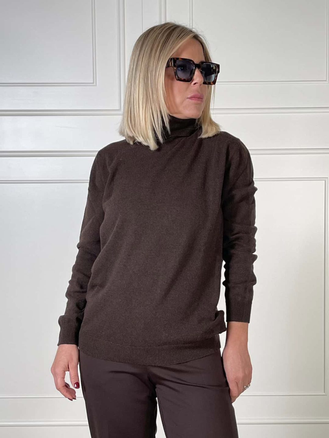 Linea regolare con collo alto avvolgente, maniche lunghe e fondo rifinito a costine. Il taglio minimal e il fit naturale la rendono un capo indispensabile del guardaroba quotidiano.