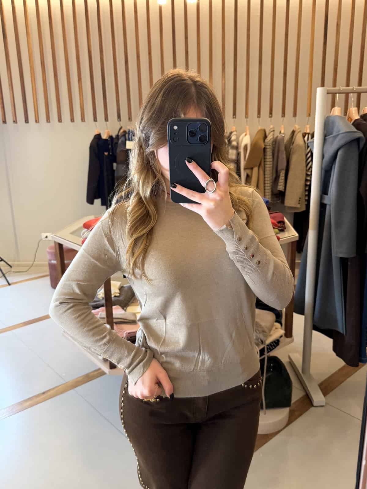 FitByDele maglia leggera a manica lunga con linea pulita e girocollo classico. La finezza del filato la rende morbida, setosa al tatto e perfetta come sottogiacca o per look essenziali e raffinati.