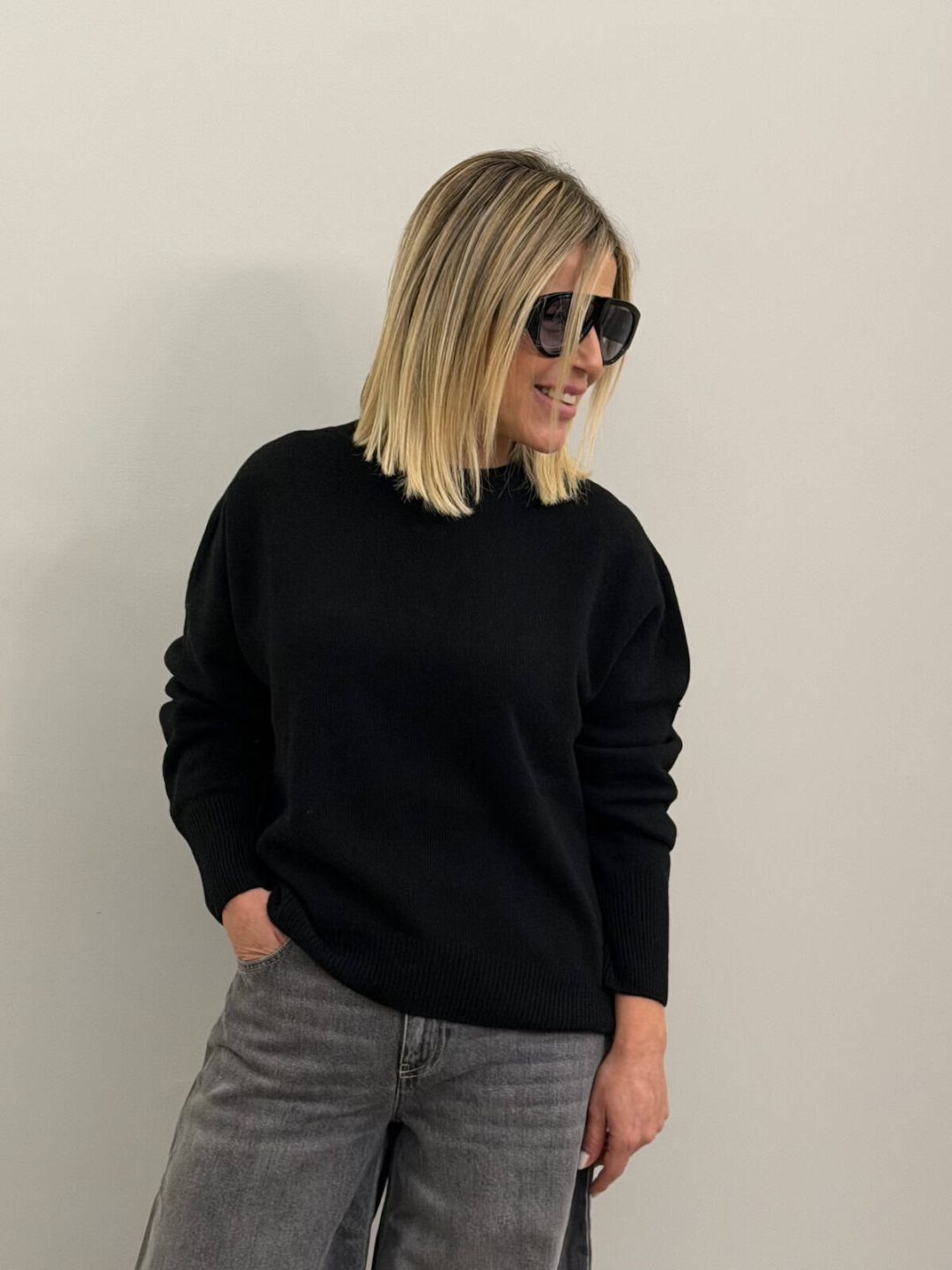 Texture fine e uniforme con mano soffice e piacevole sulla pelle. Design minimal per uno stile raffinato e contemporaneo, facile da abbinare a gonne, jeans o pantaloni sartoriali.