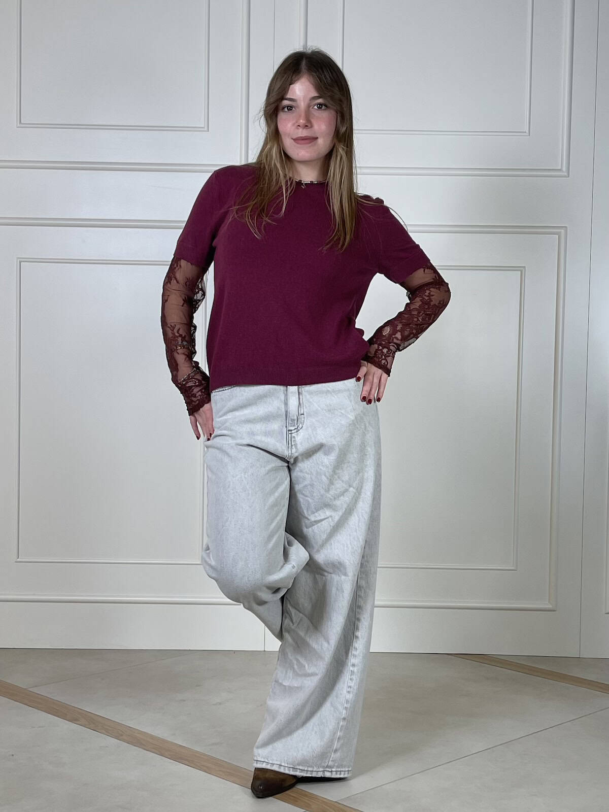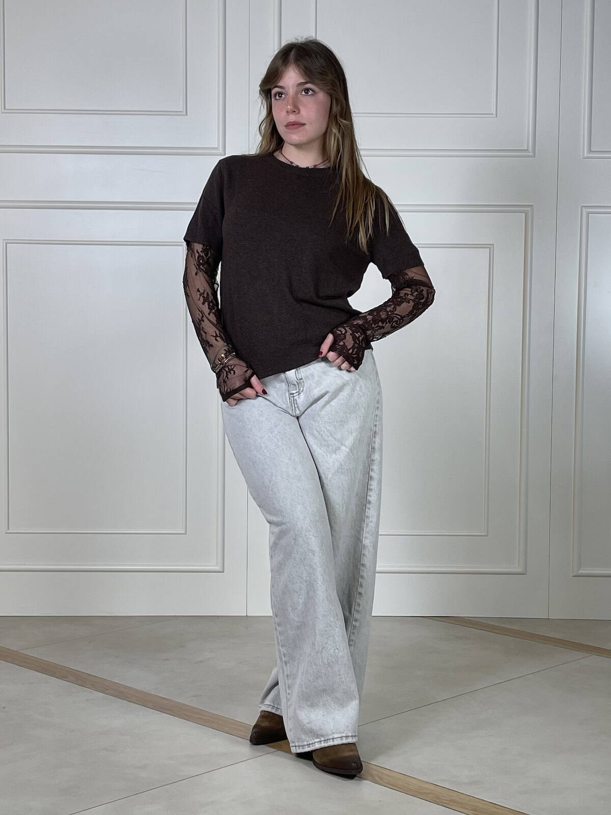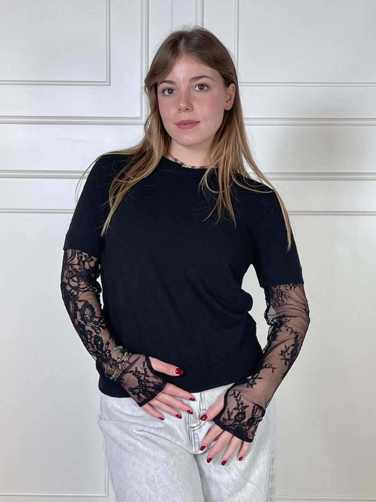Tag: 2025, 43 week FW26 20-10-25, Abbigliamento, Autunno/Inverno, Donna, Maglia over manica pizzo, Maglieria, Vicolo