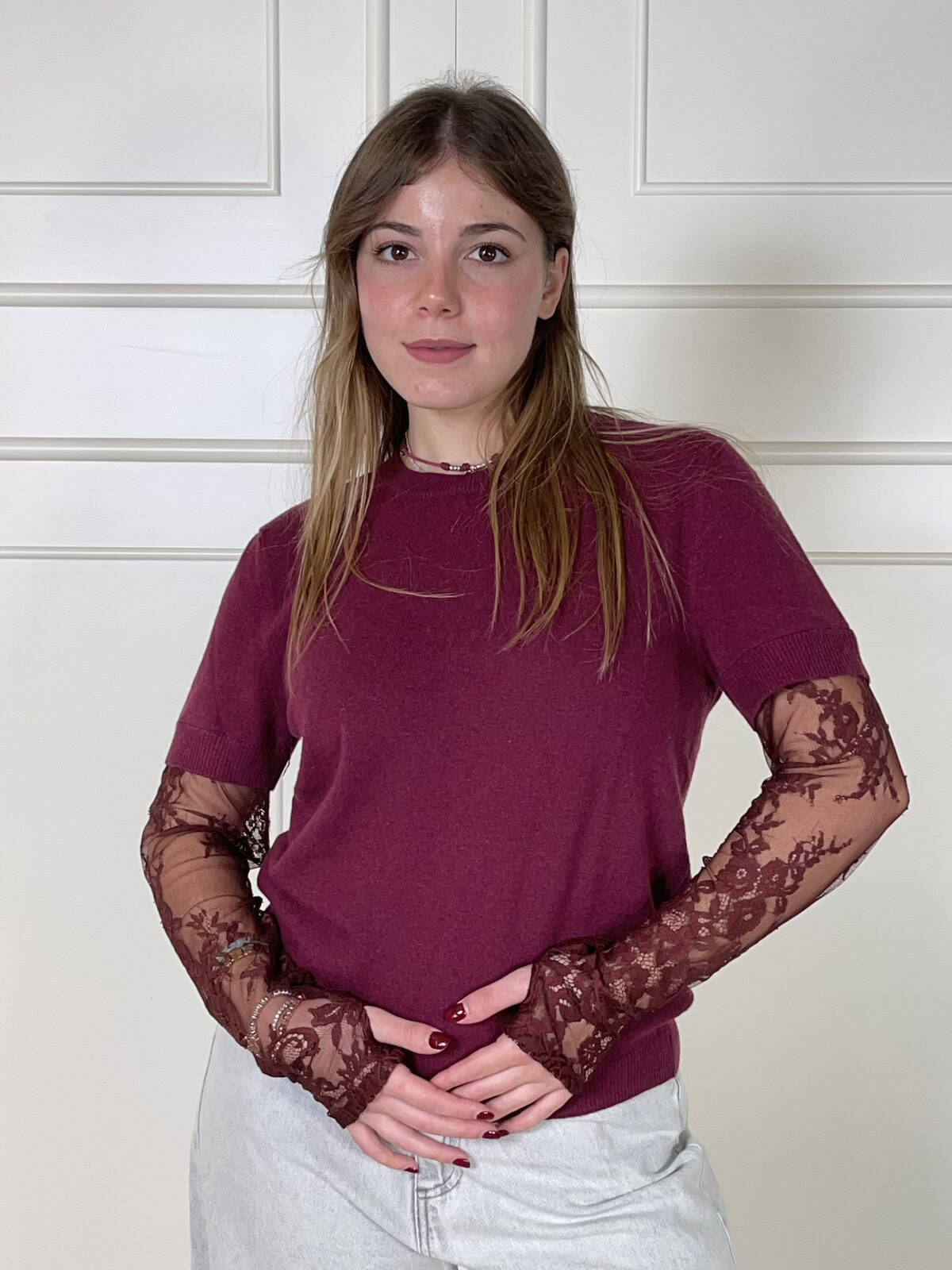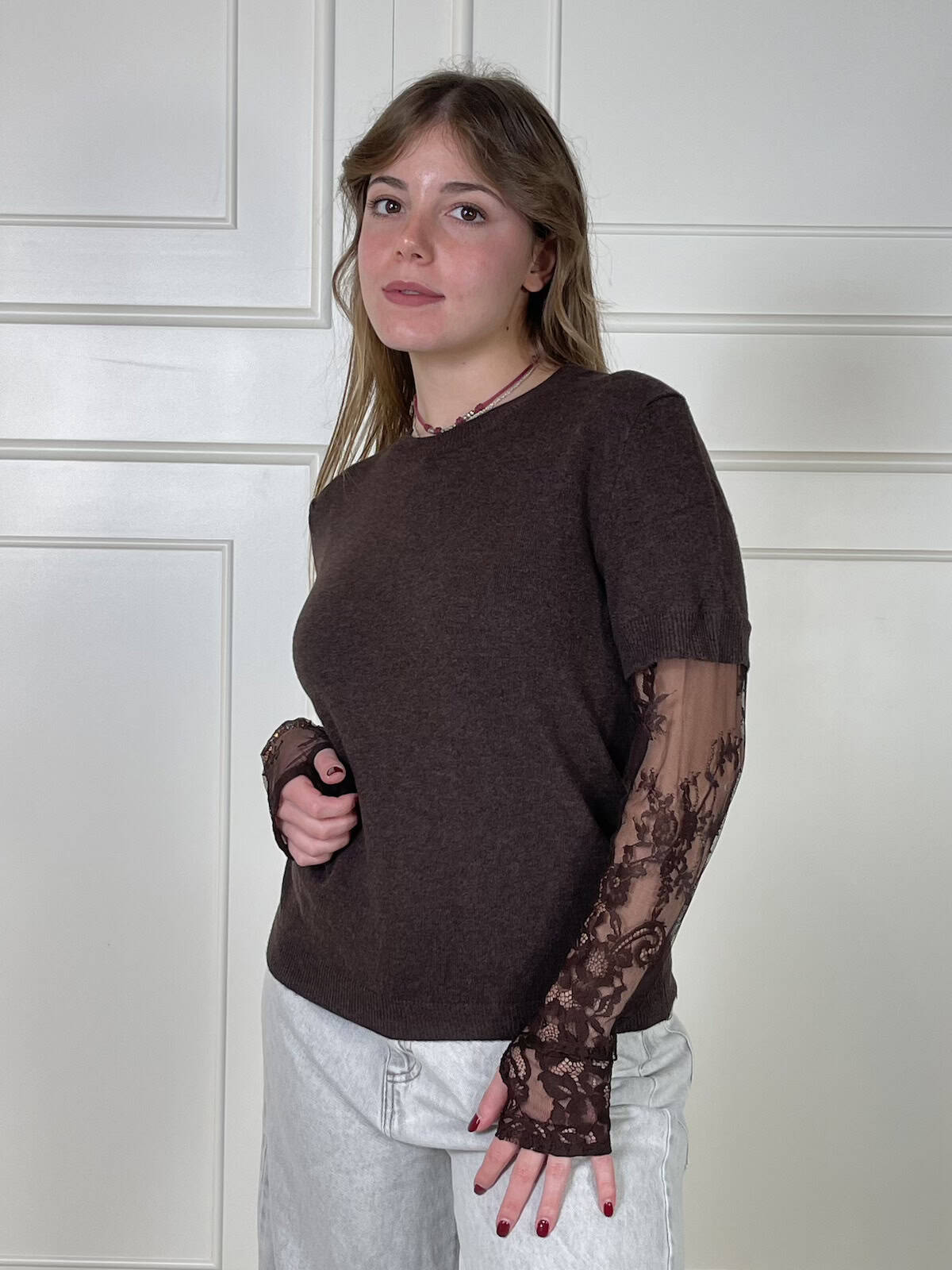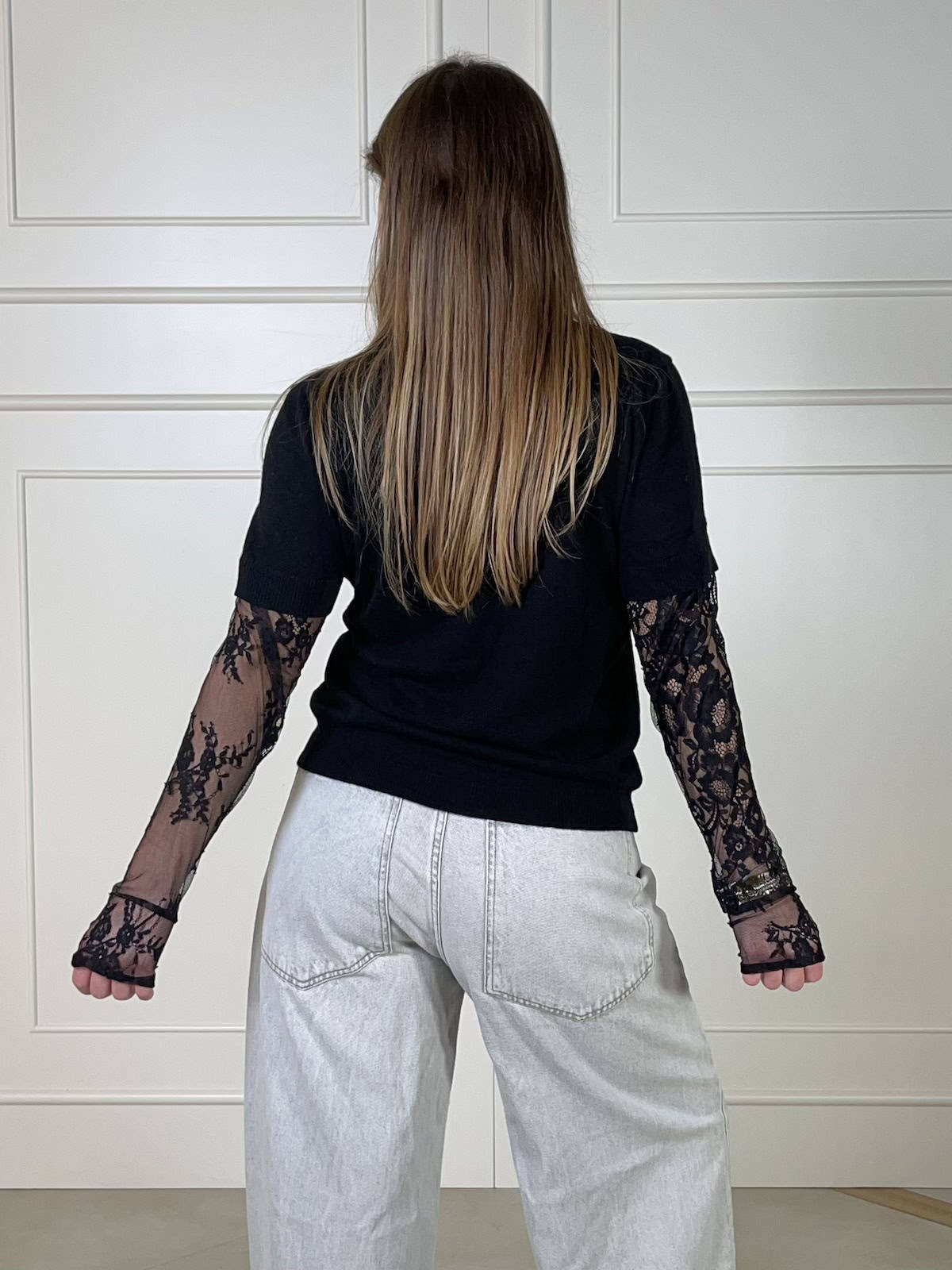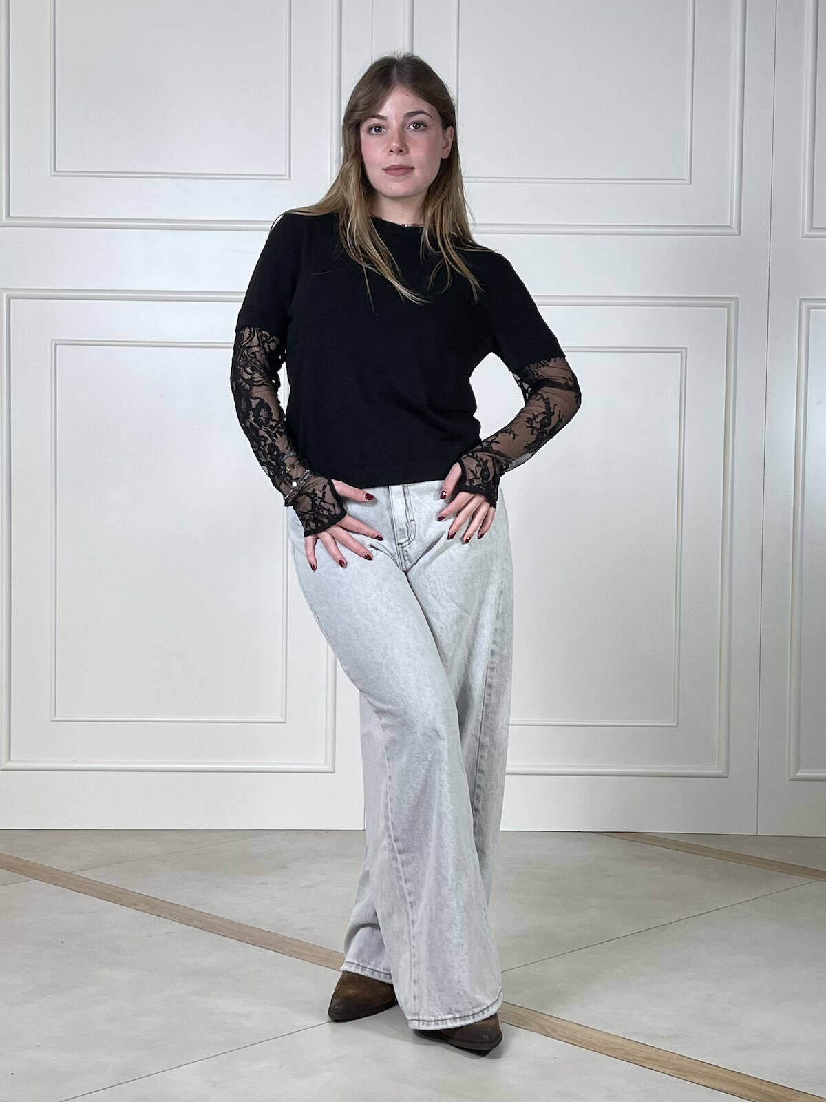 Tag: 2025, 43 week FW26 20-10-25, Abbigliamento, Autunno/Inverno, Donna, Maglia over manica pizzo, Maglieria, Vicolo