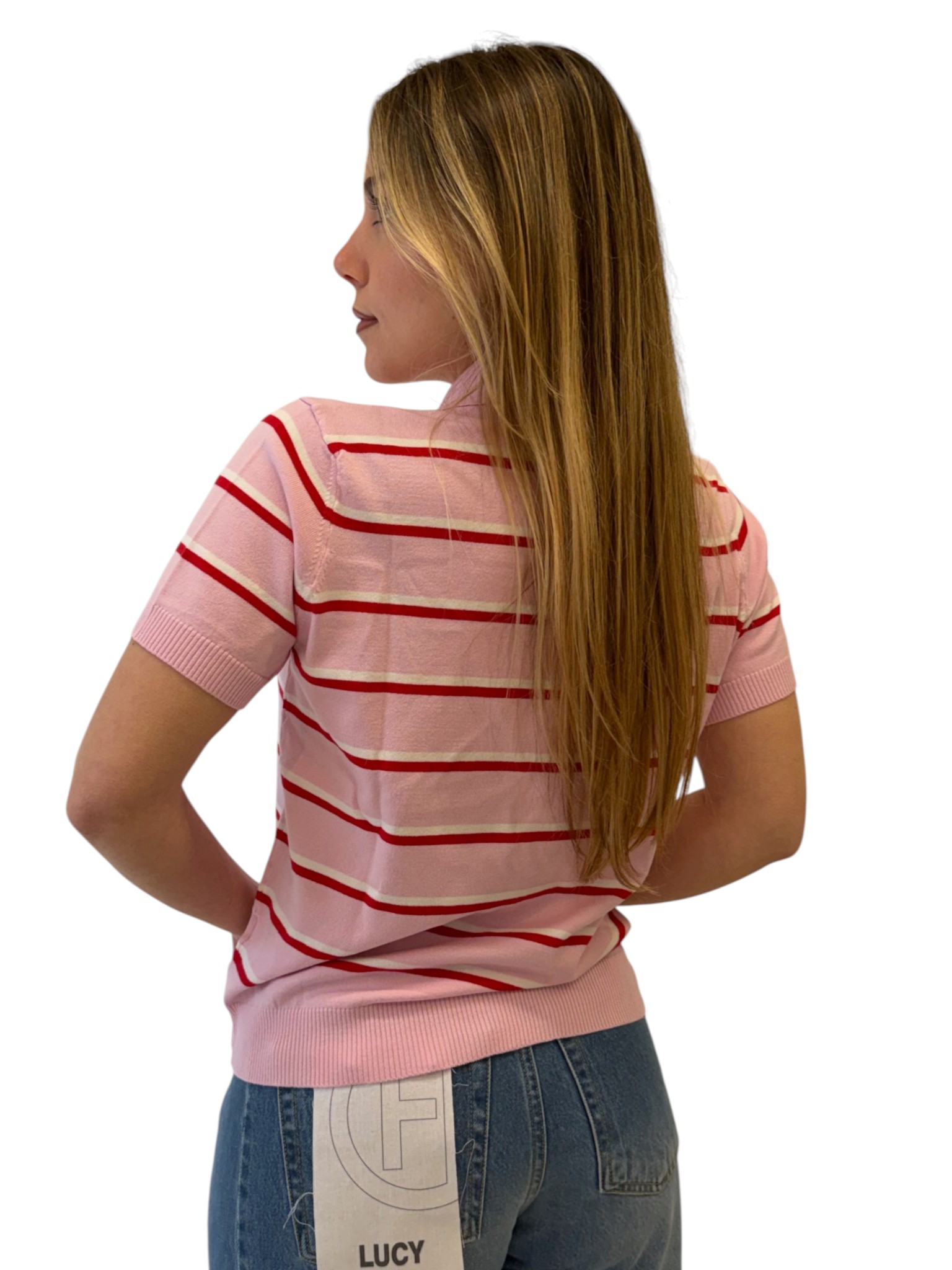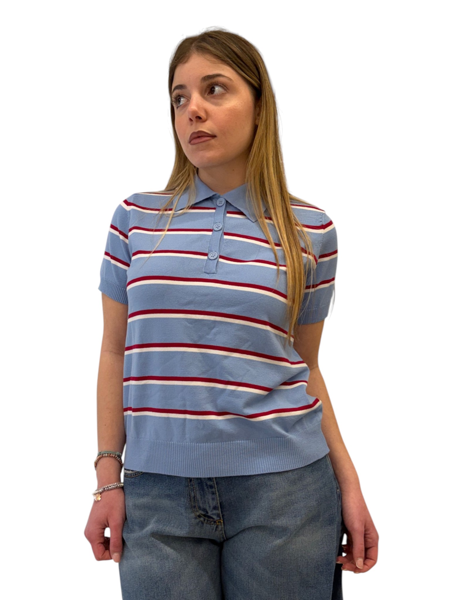 Motel Maglia dal design casual e femminile, caratterizzata da un motivo a righe che dona un tocco dinamico e versatile. Il modello con colletto e bottoni unisce comfort e stile, perfetto per look quotidiani curati.