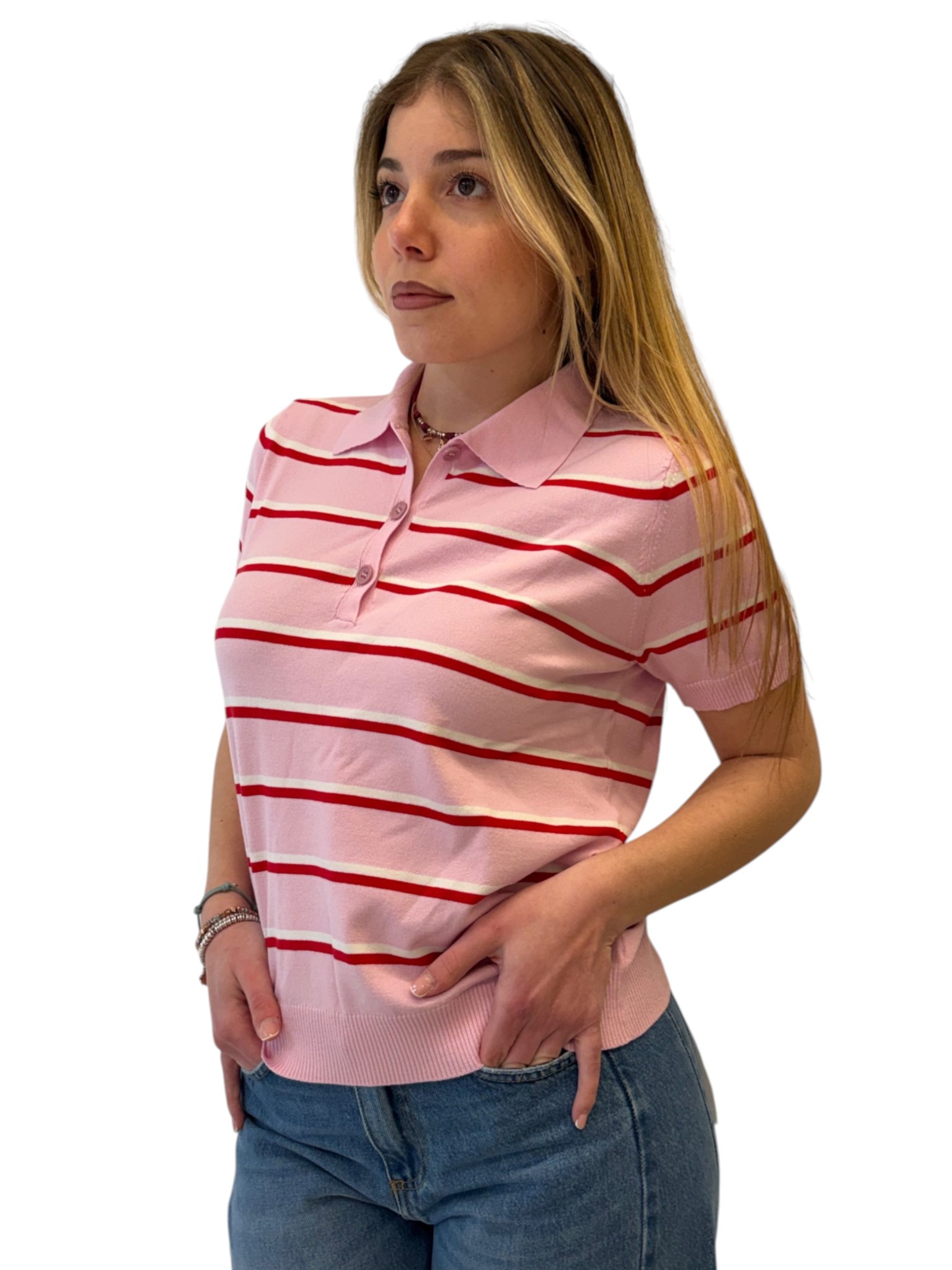 Polo manica corta con colletto e chiusura a bottoni.