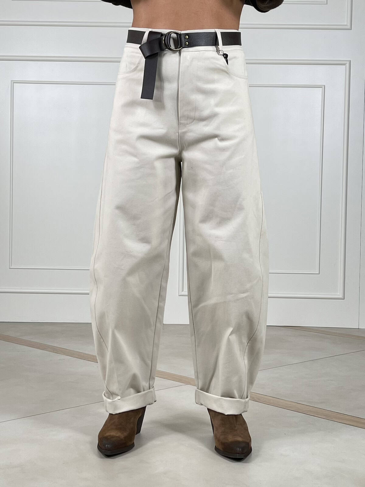 Linea carrot, comoda sui fianchi e leggermente affusolata. Perfetta per look casual e urban-chic.” Haveone