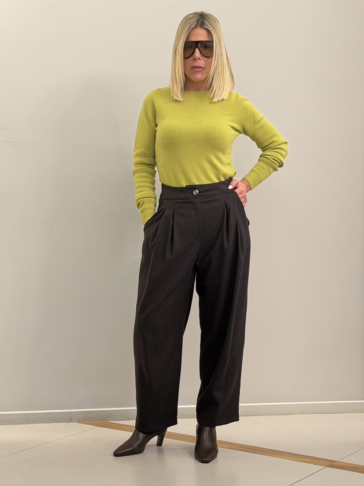 Pantalone palazzo doppia pince Tensione In - AN6540BISAI25FL in Colore moro