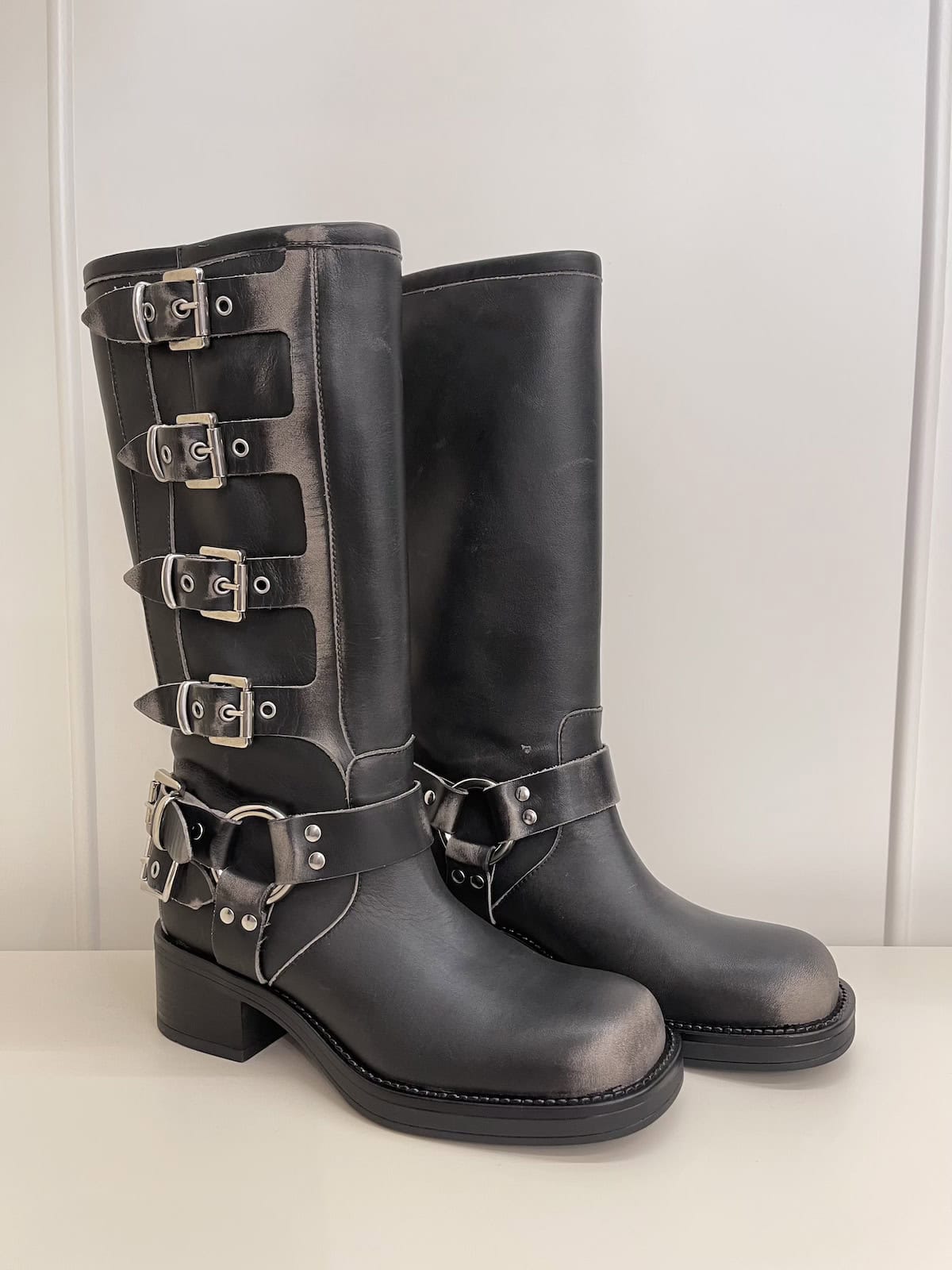 Stivali biker vintage maxi fibbie Ovyé – AT4200ASP