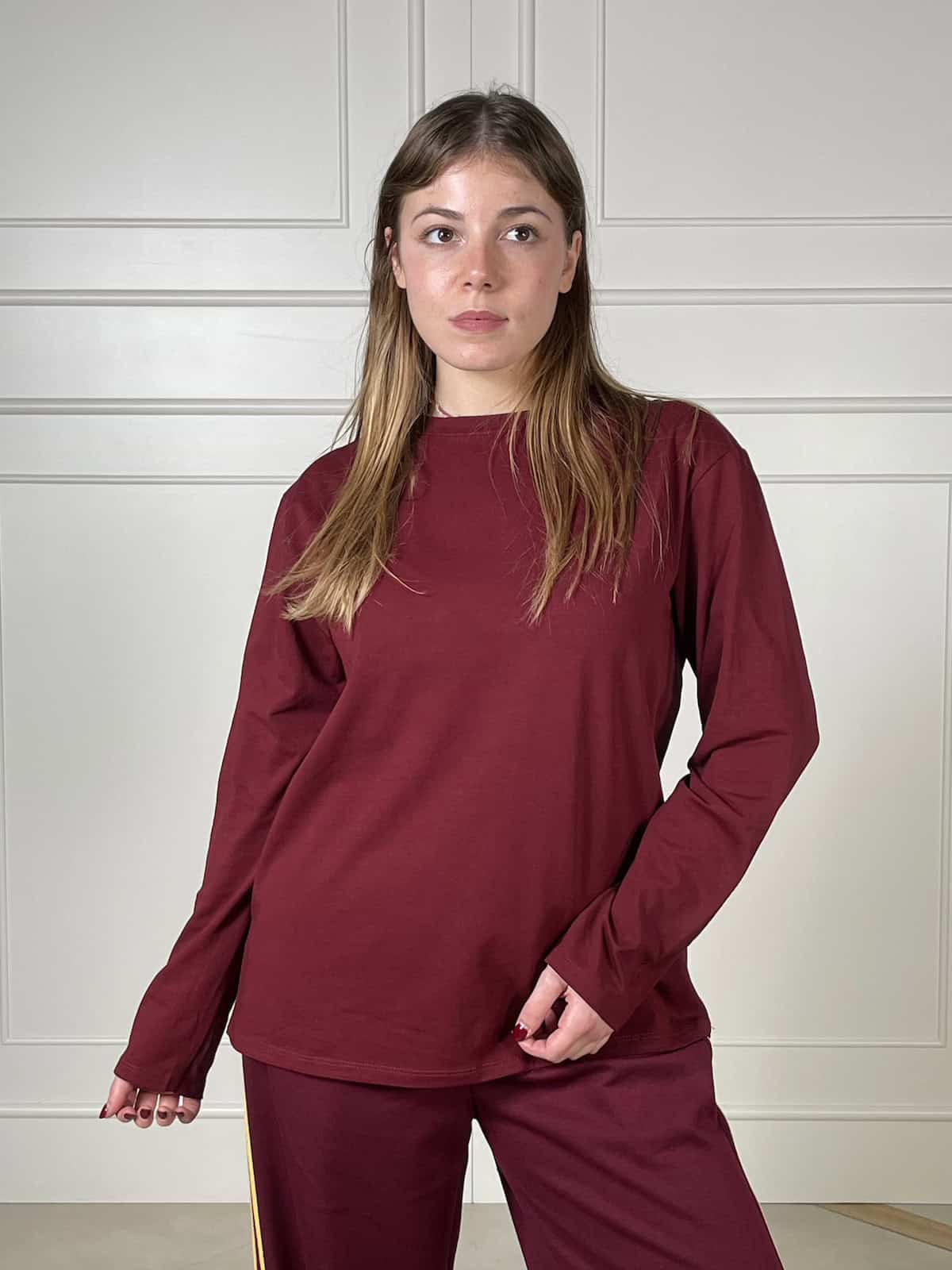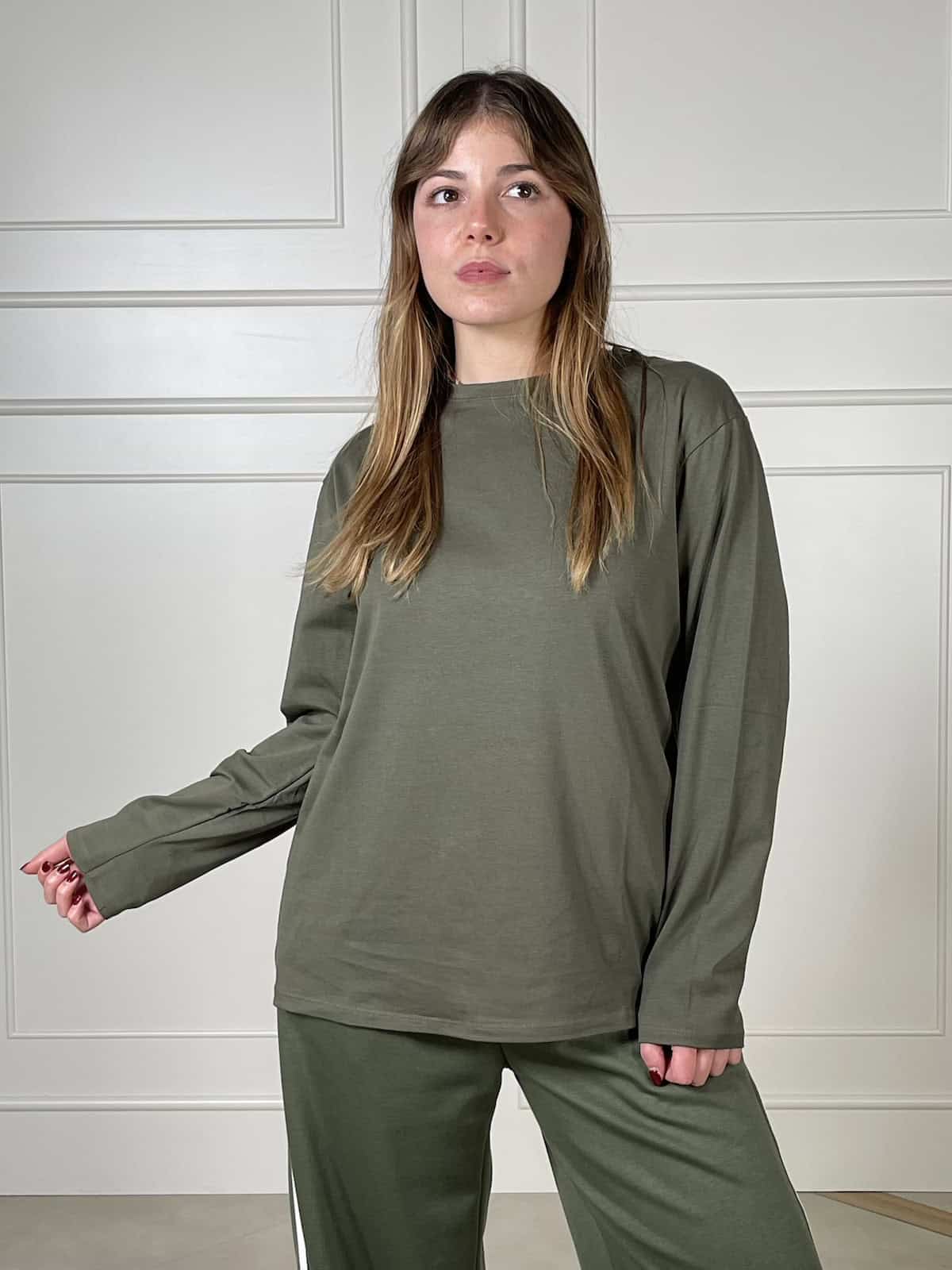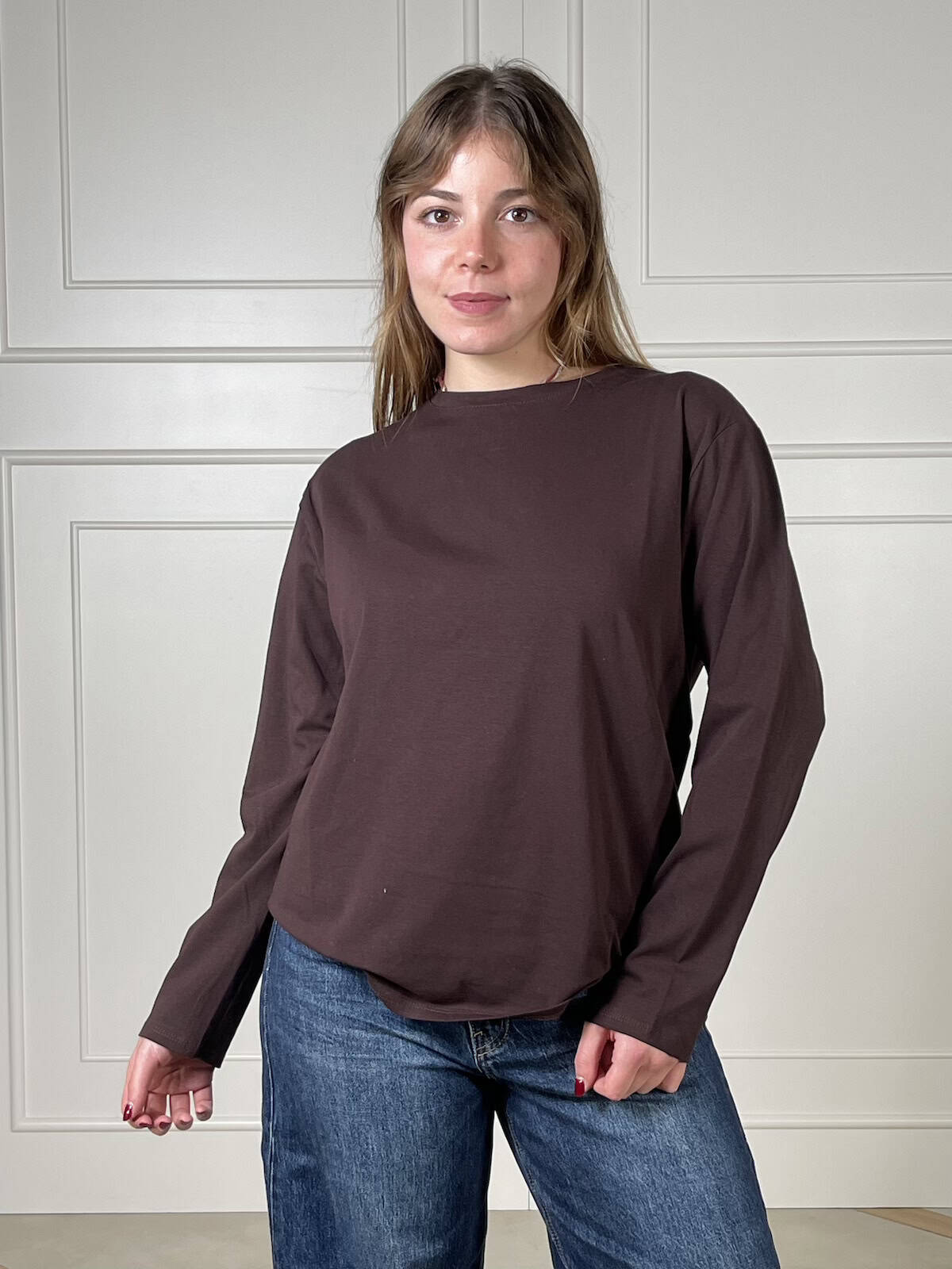 Dettagli – Girocollo, taglio dritto, finiture pulite, cuciture tono su tono.