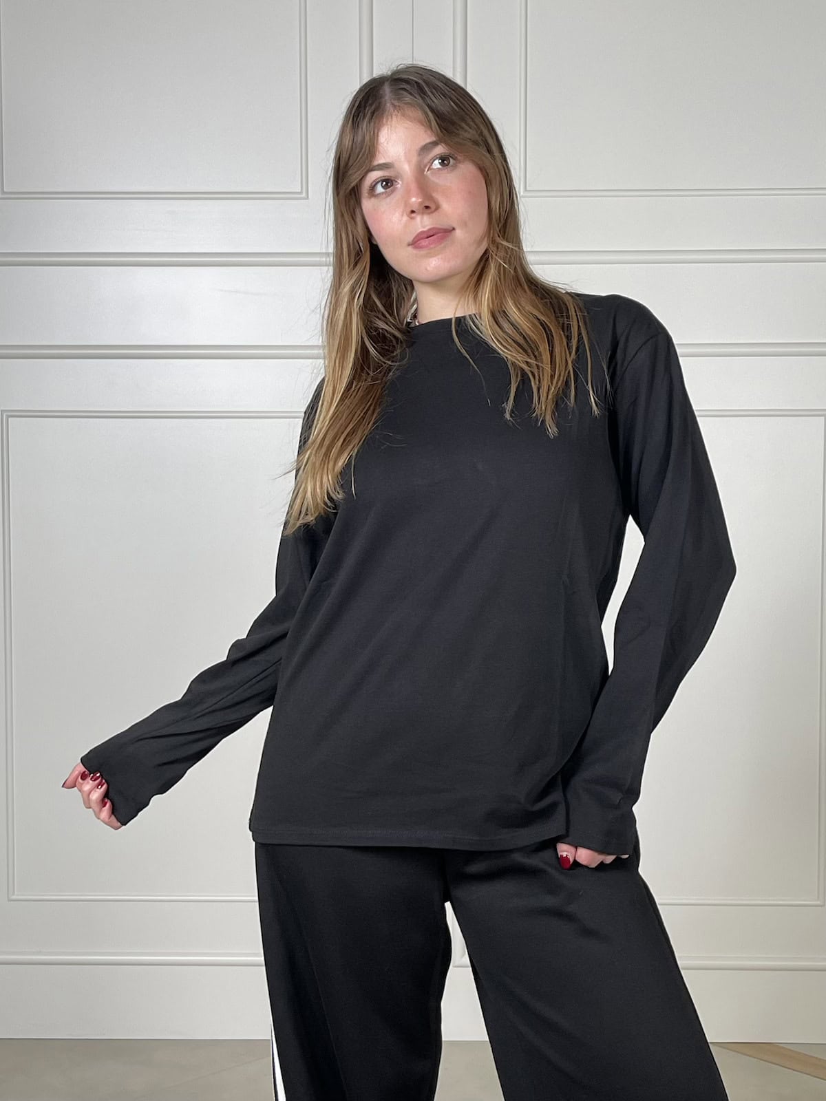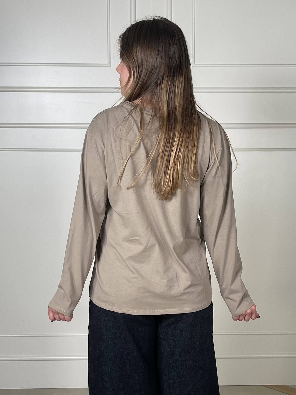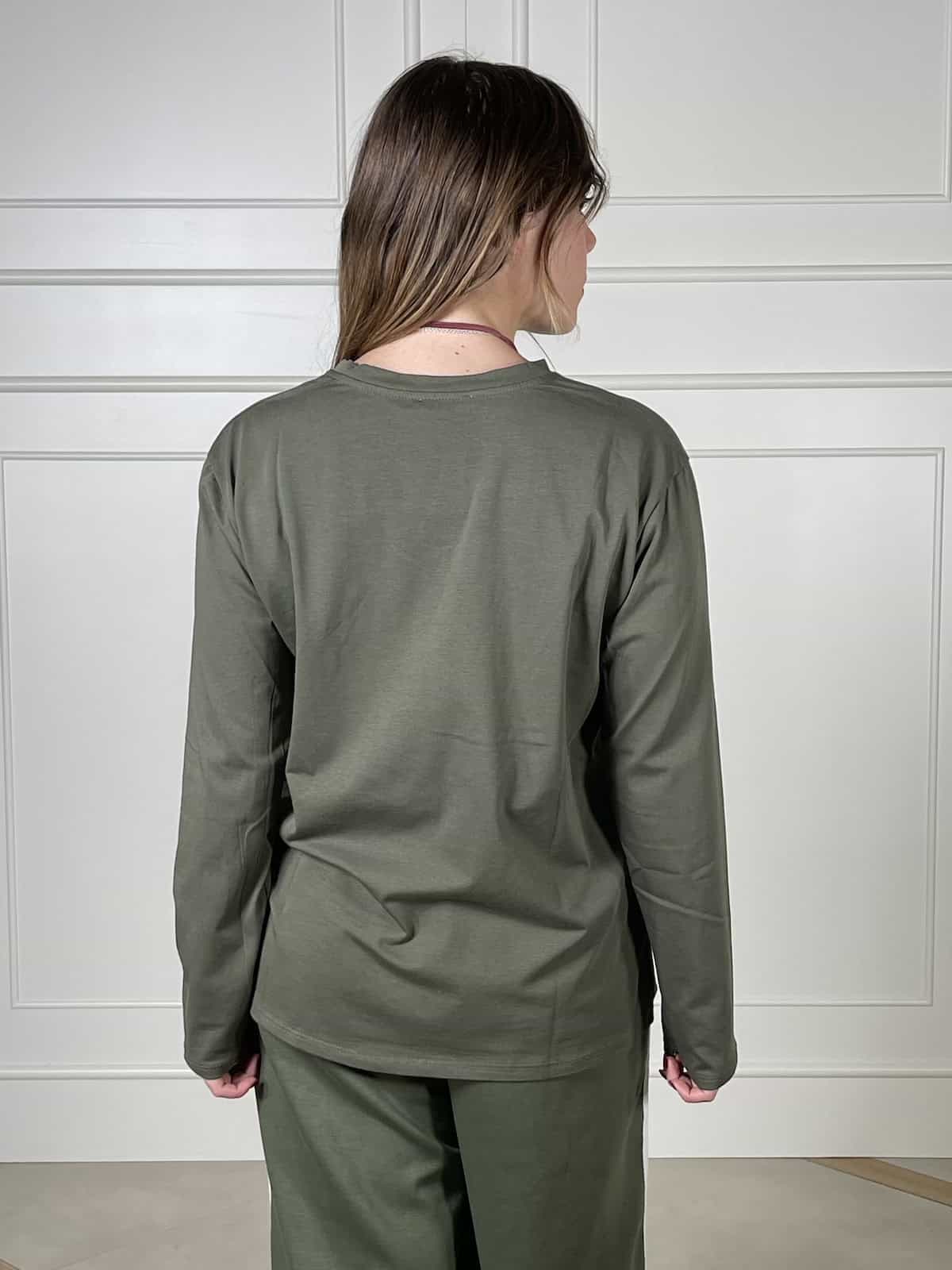Dettagli – Girocollo, taglio dritto, finiture pulite, cuciture tono su tono.