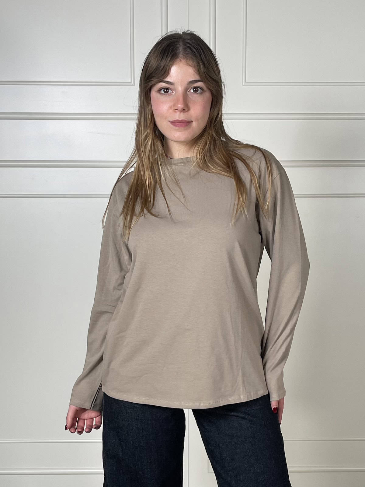 FitByDele T-shirt a maniche lunghe dal design minimal e pulito, perfetta come base per look casual o sotto giacche e maglioni. Il tessuto leggermente elasticizzato assicura comfort e libertà di movimento, mantenendo una linea essenziale.