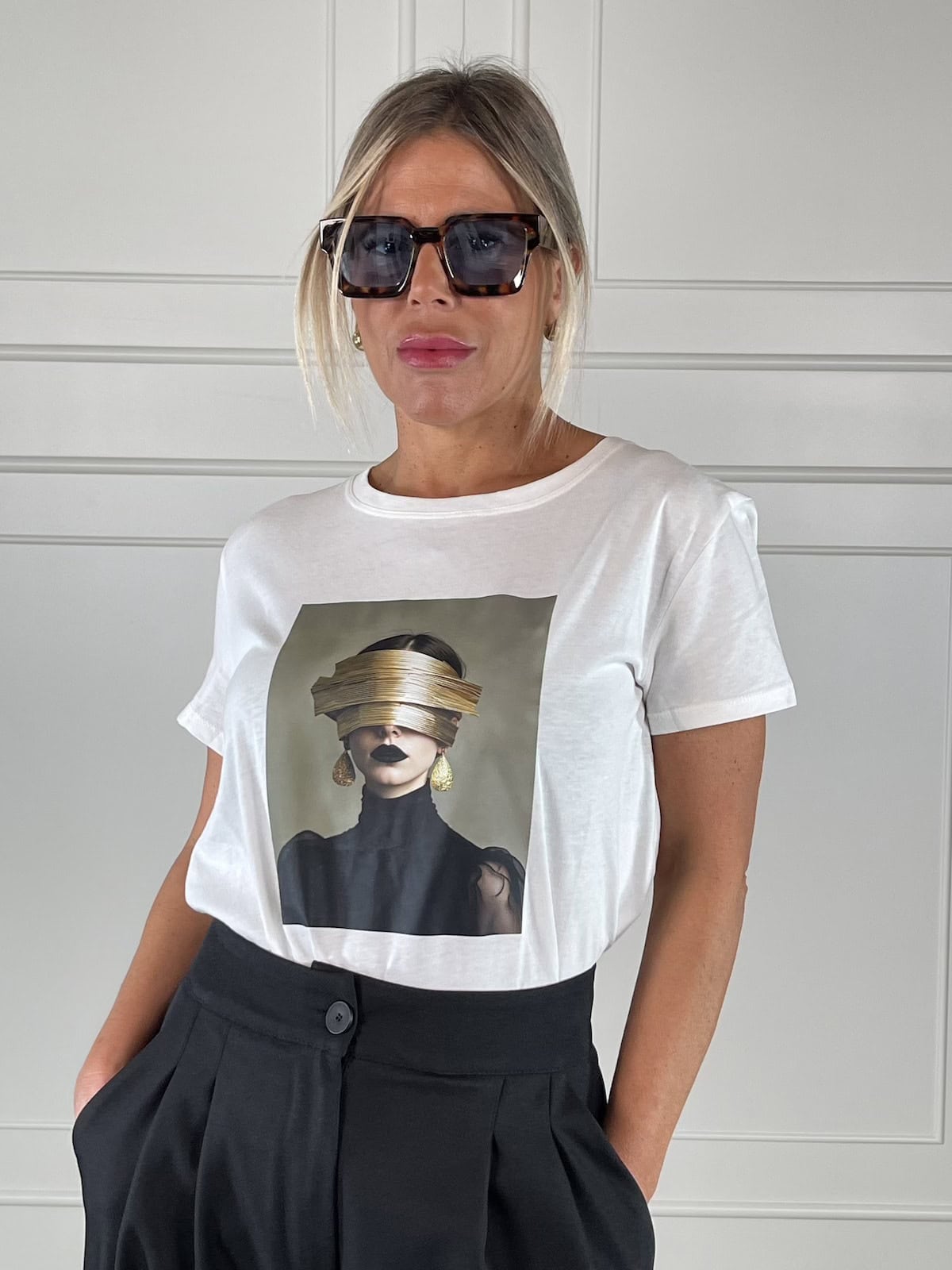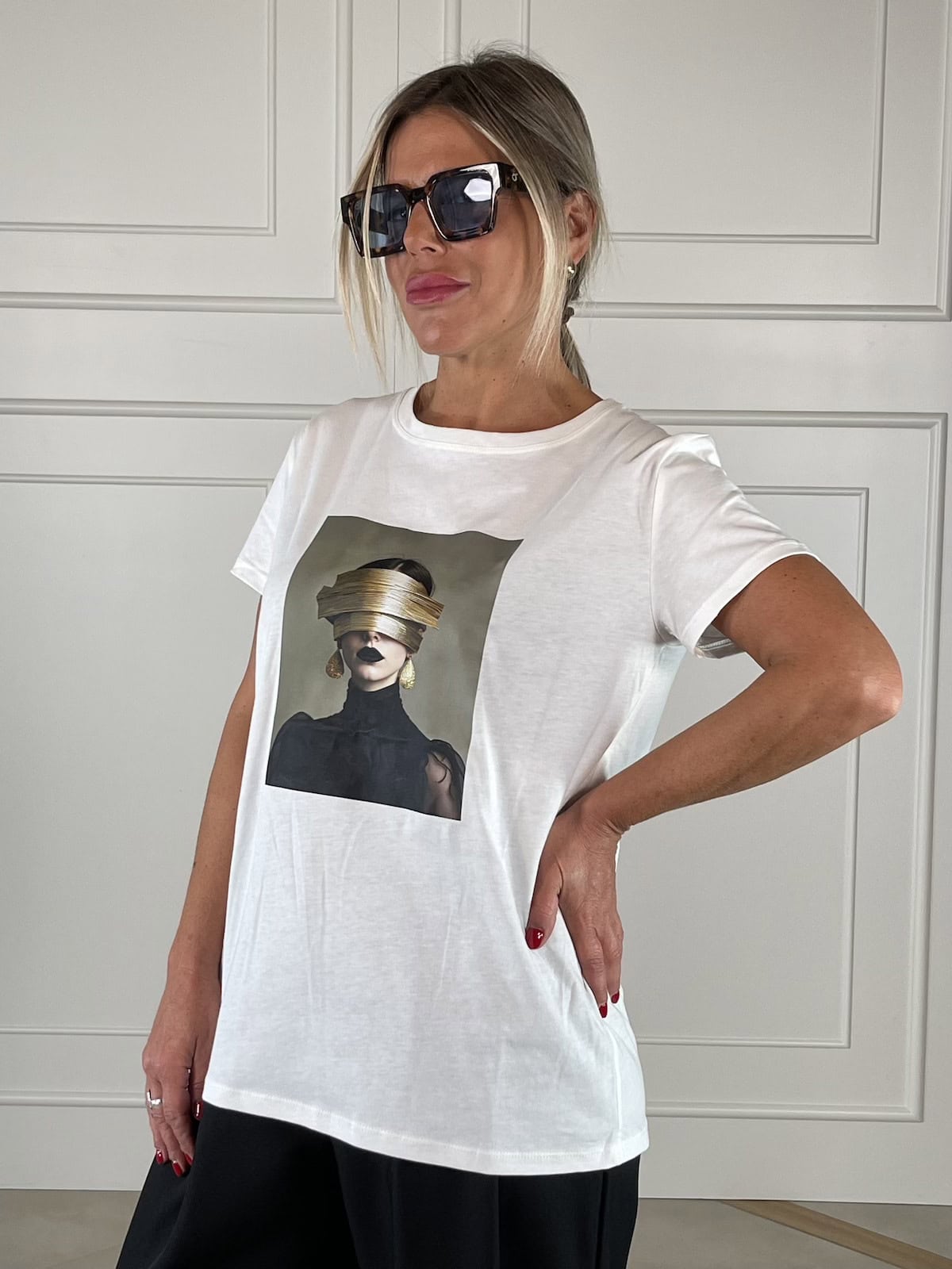 T-shirt stampata con nappine Haveone - TMAP027 in Colore Bianco/moro