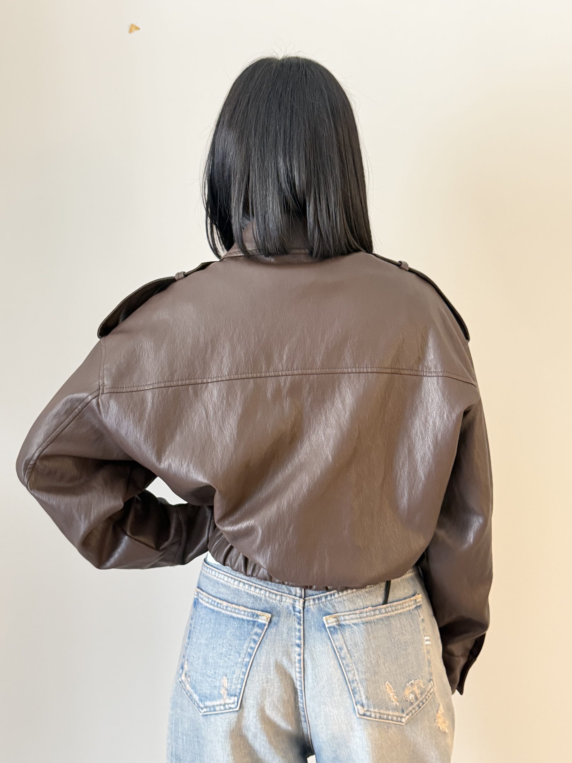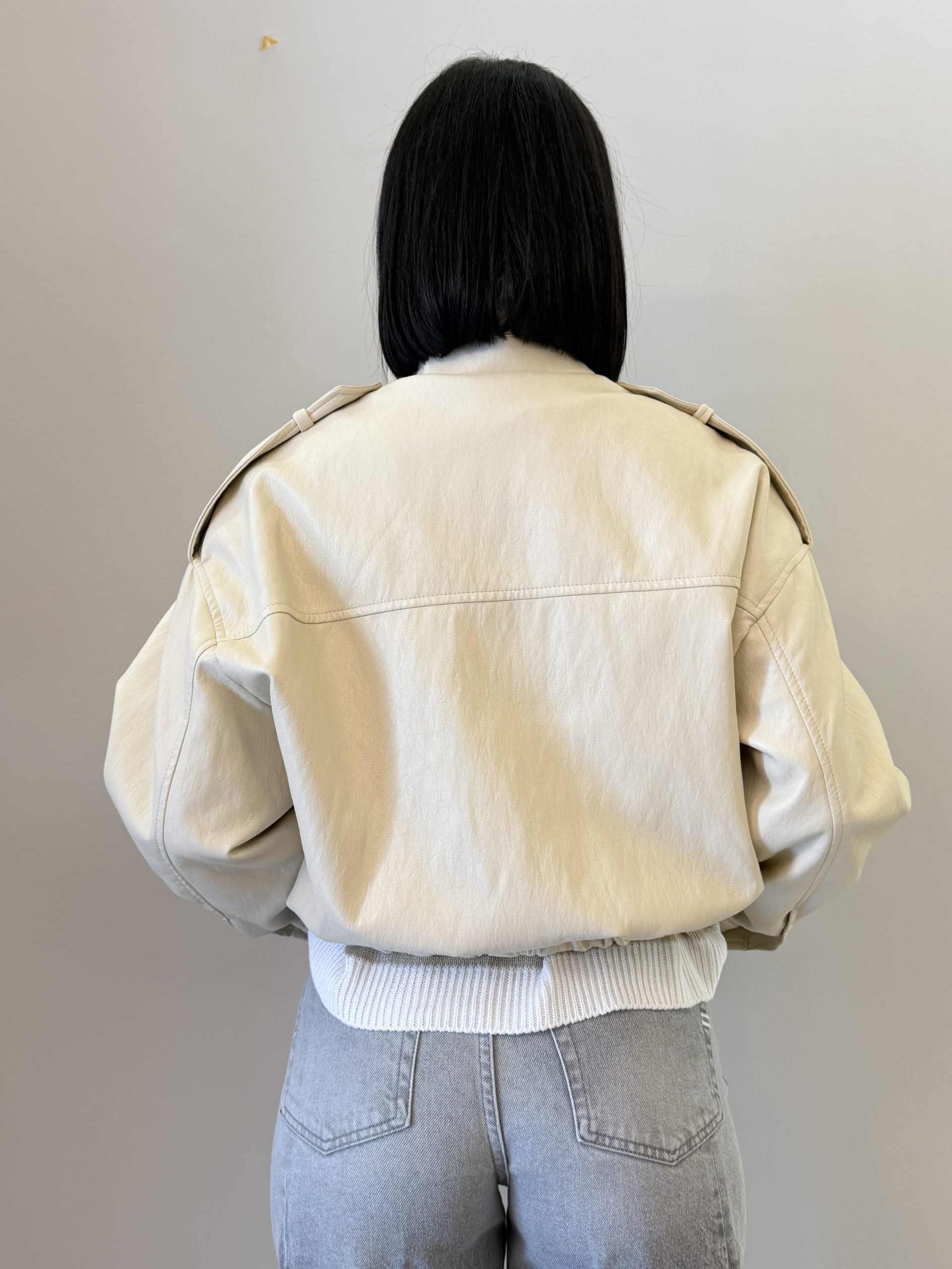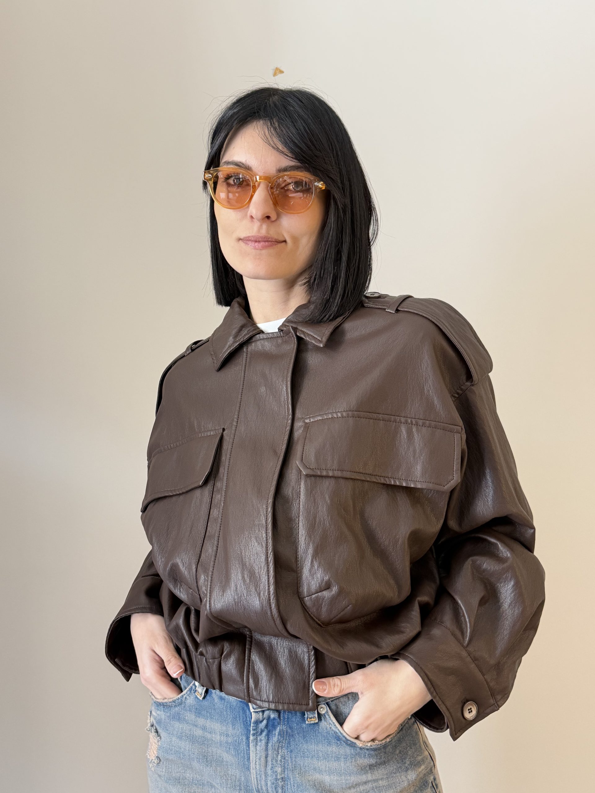 Vicolo Bomber dal design contemporaneo ispirato allo stile utility, caratterizzato da una struttura decisa e da dettagli funzionali che conferiscono al capo un carattere moderno. La finitura effetto pelle dona un aspetto sofisticato rendendolo ideale per completare look casual e urbani.