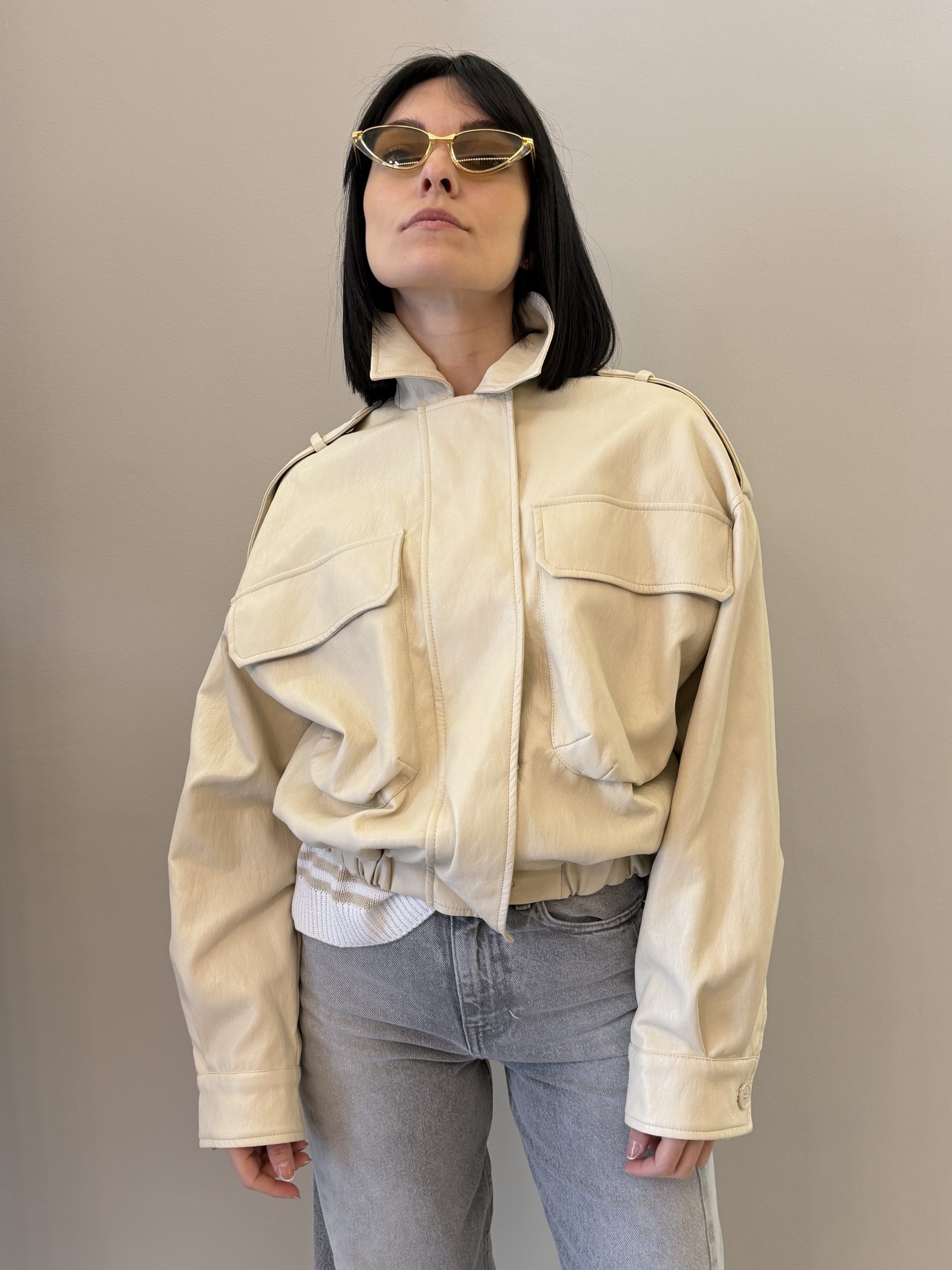 Bomber con chiusura frontale e tasche applicate.