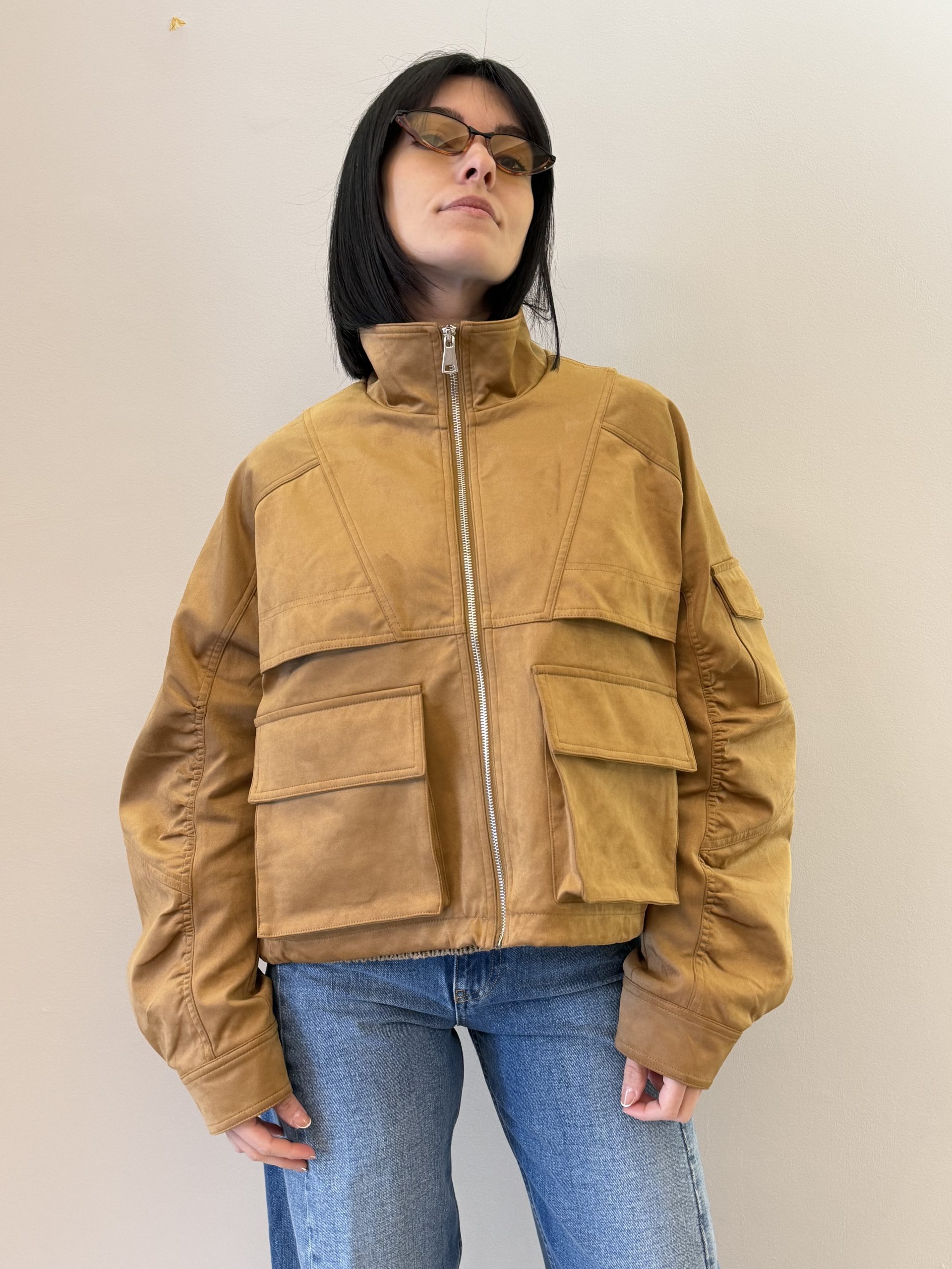 Bomber con chiusura frontale con zip.
