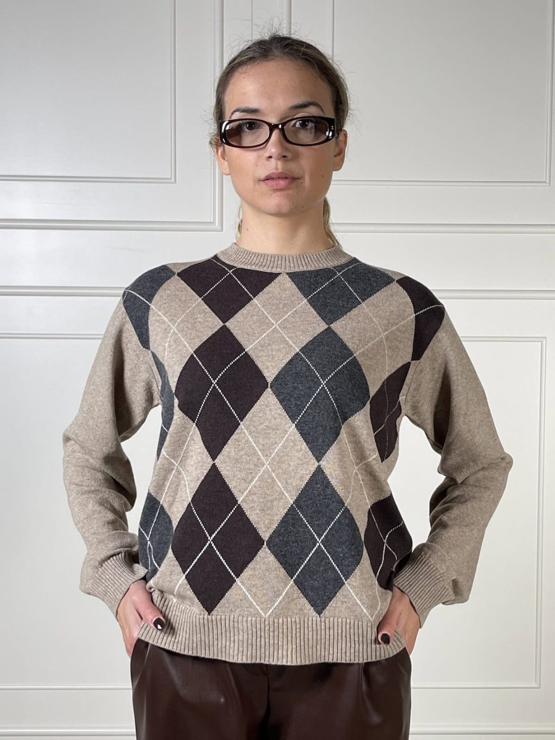 Tensione In Maglia dal fascino retrò con lavorazione a rombi, un classico rivisitato in chiave contemporanea per look casual e raffinati.